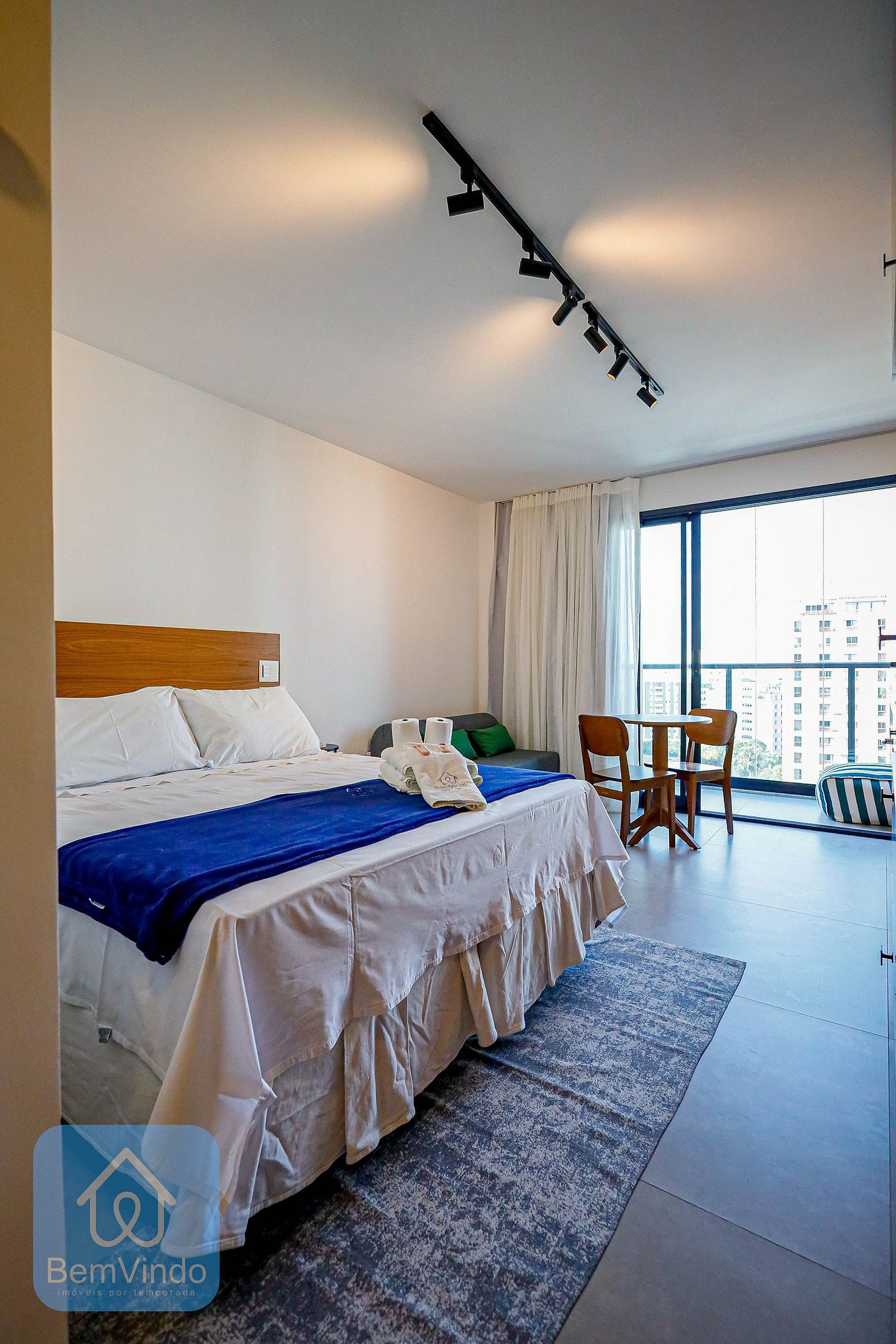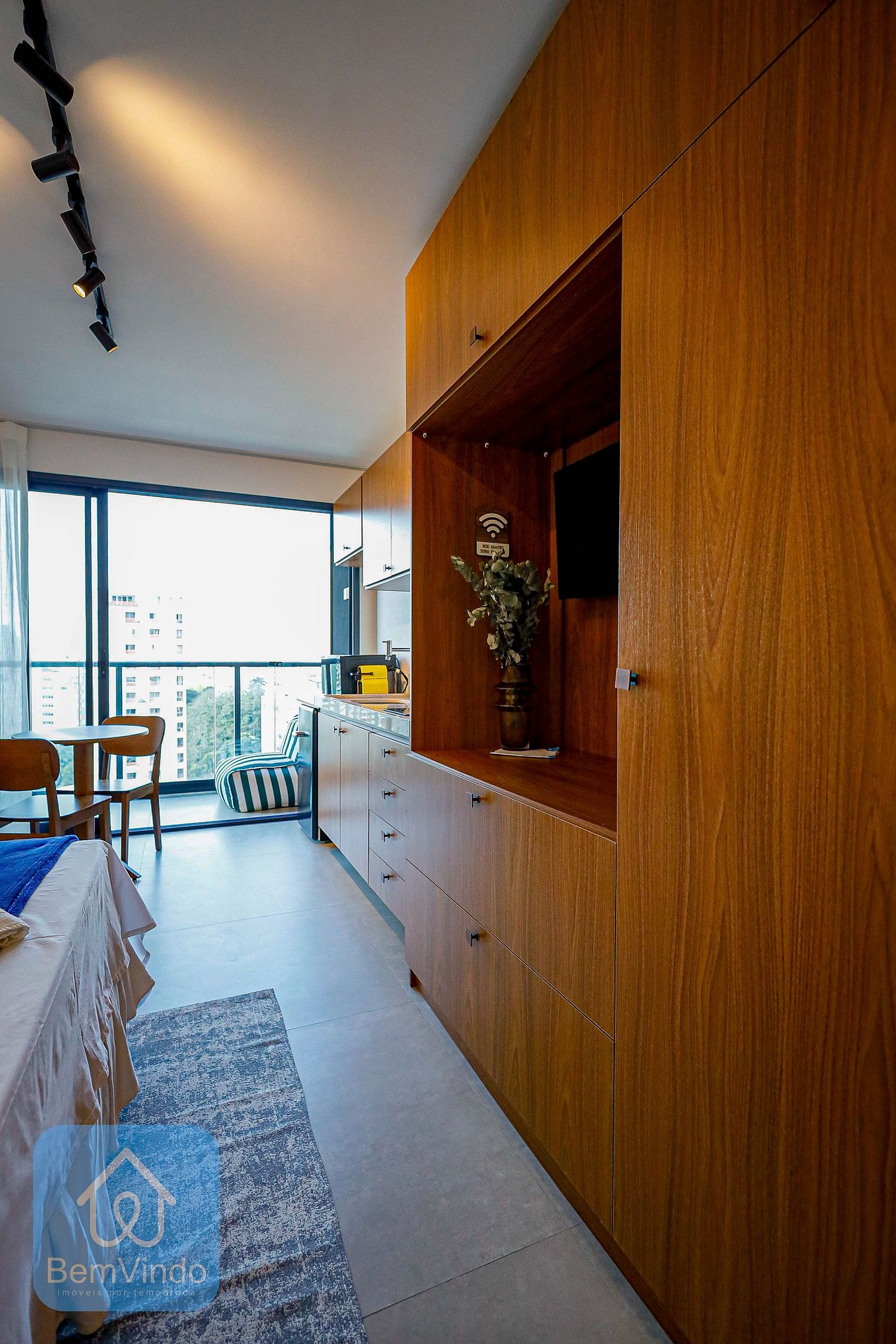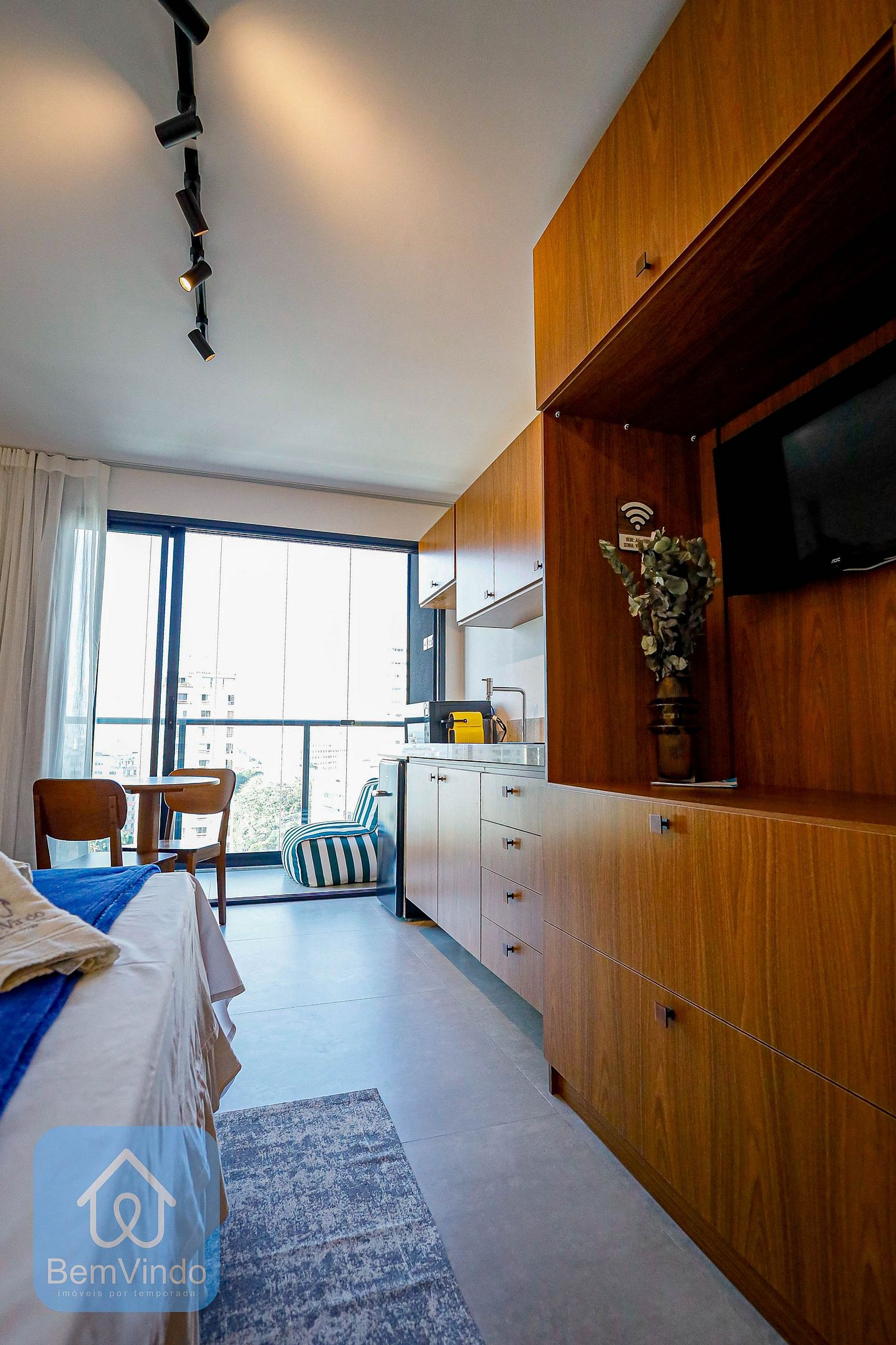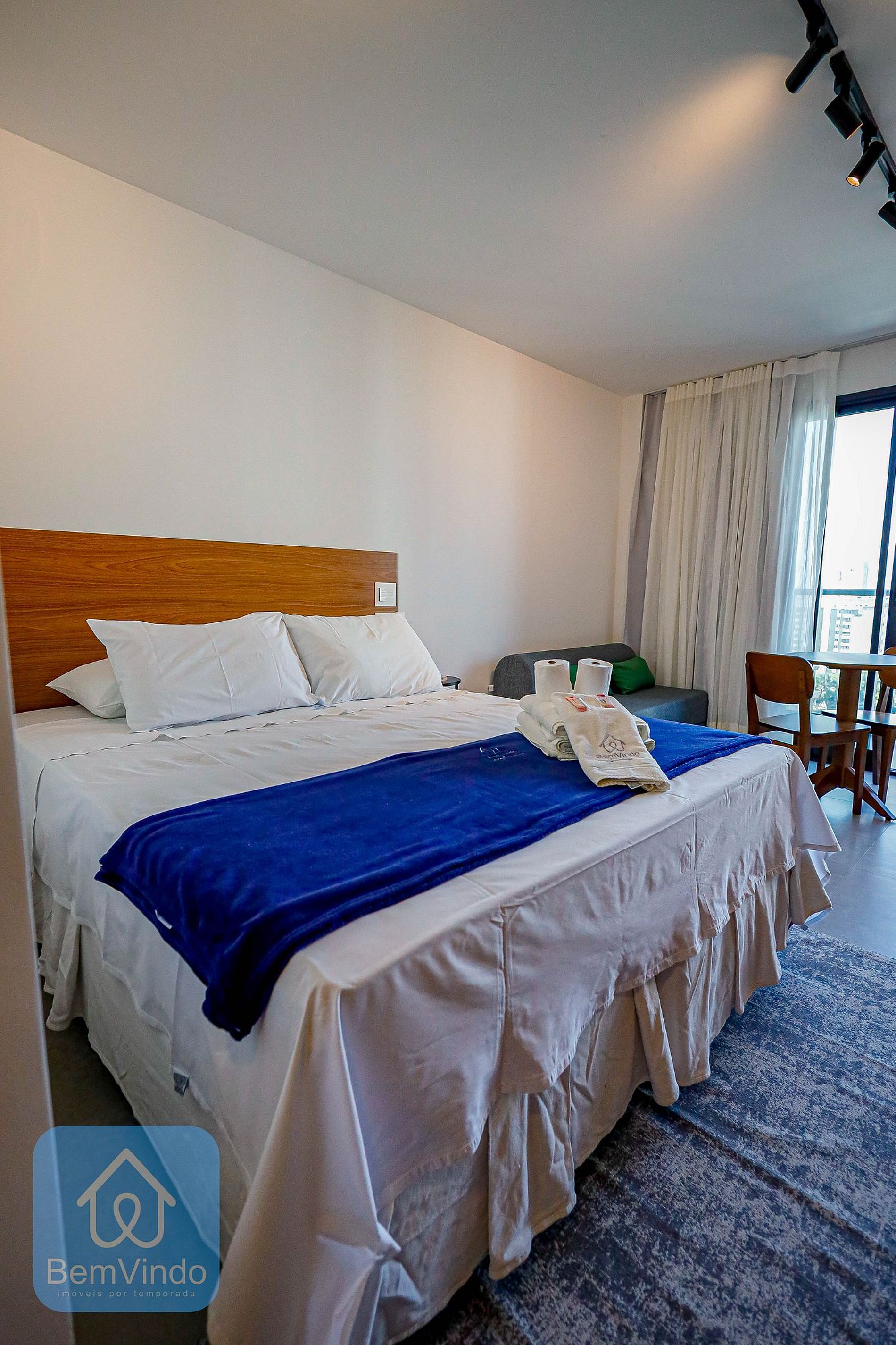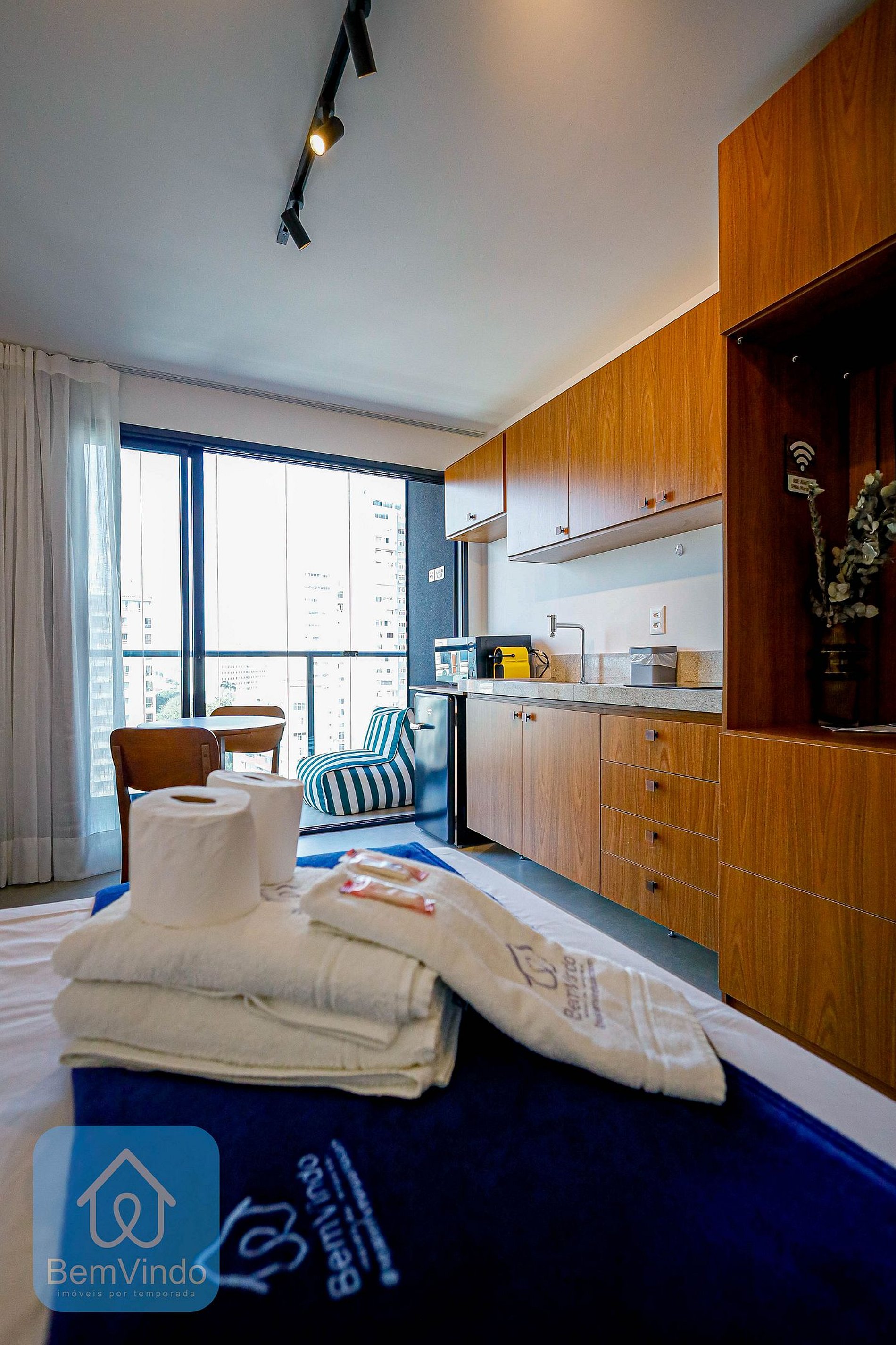 A cozinha completa possui todos os utensílios e eletrodomésticos necessários para preparar refeições deliciosas, incluindo fogão cooktop, micro-ondas e frigobar. O banheiro é amplo e confortável, garantindo ainda mais comodidade durante a estadia.