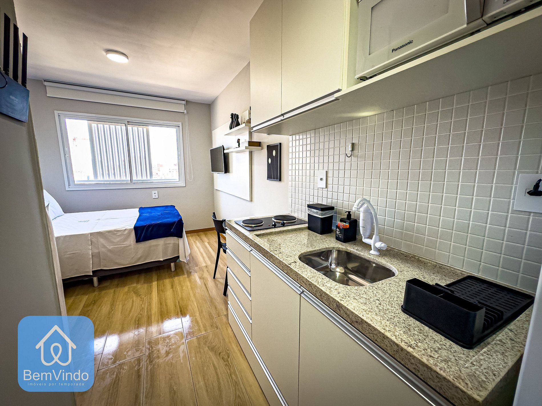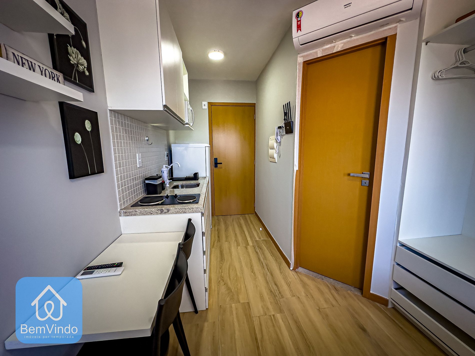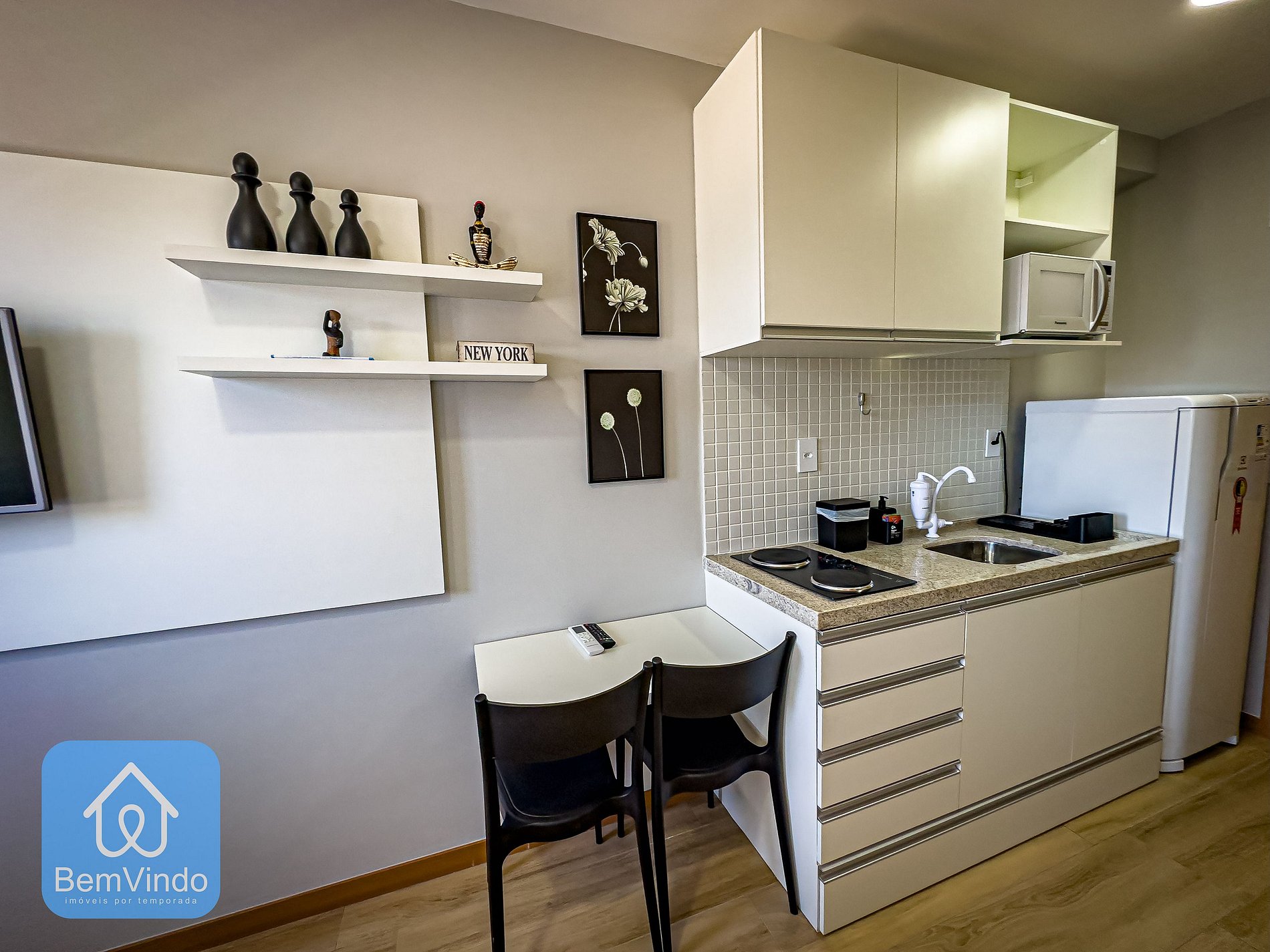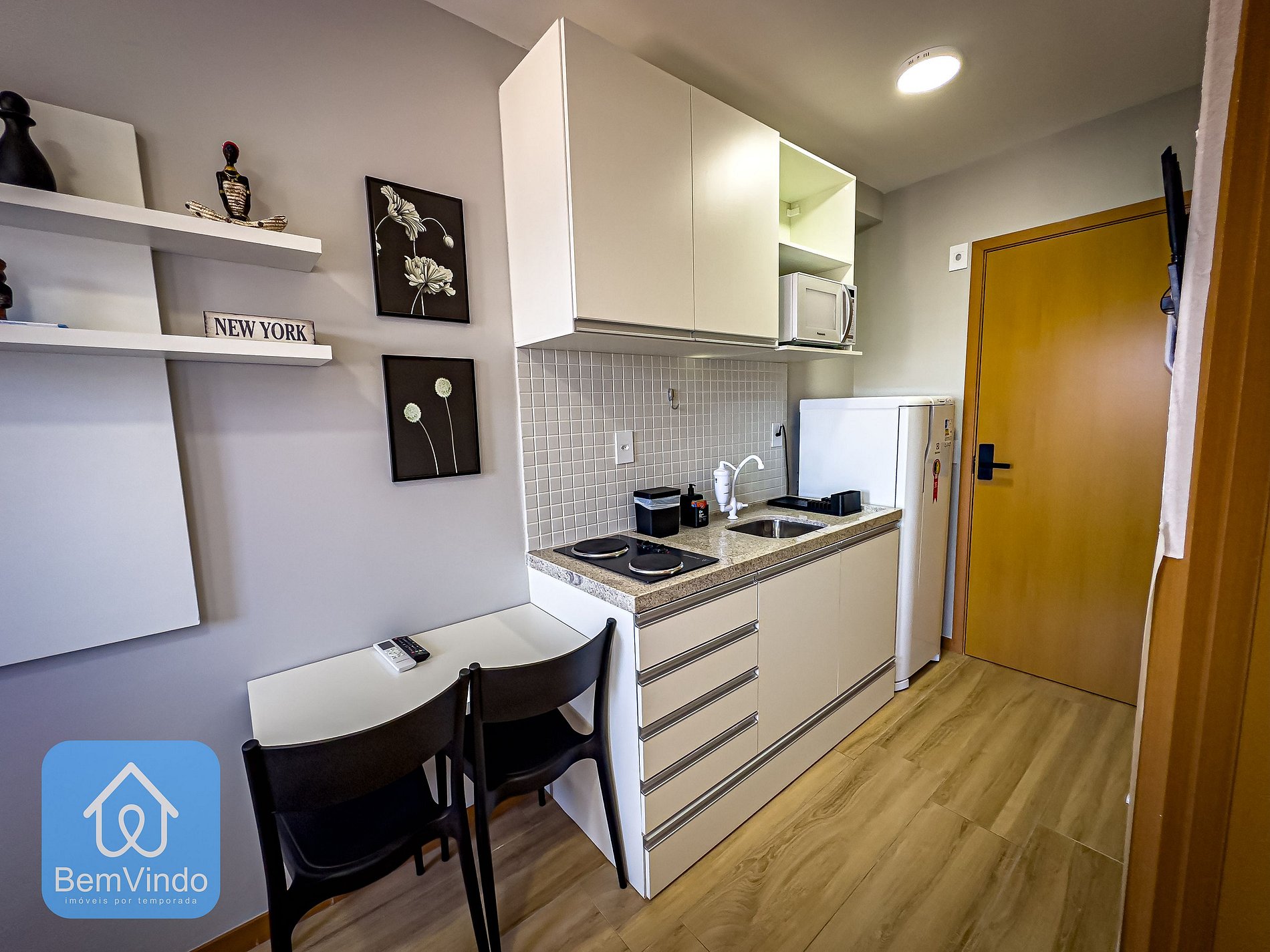 Nossa Cozinha é completa com cooktop, microondas, e todos os equipamentos que você pode precisar para preparar seu alimento. O edíficio ainda possui uma vaga de garagem rotativa por ordem de chegada (Essa informação é importante, pois em caso de lotação não podemos nos responsabilizar);