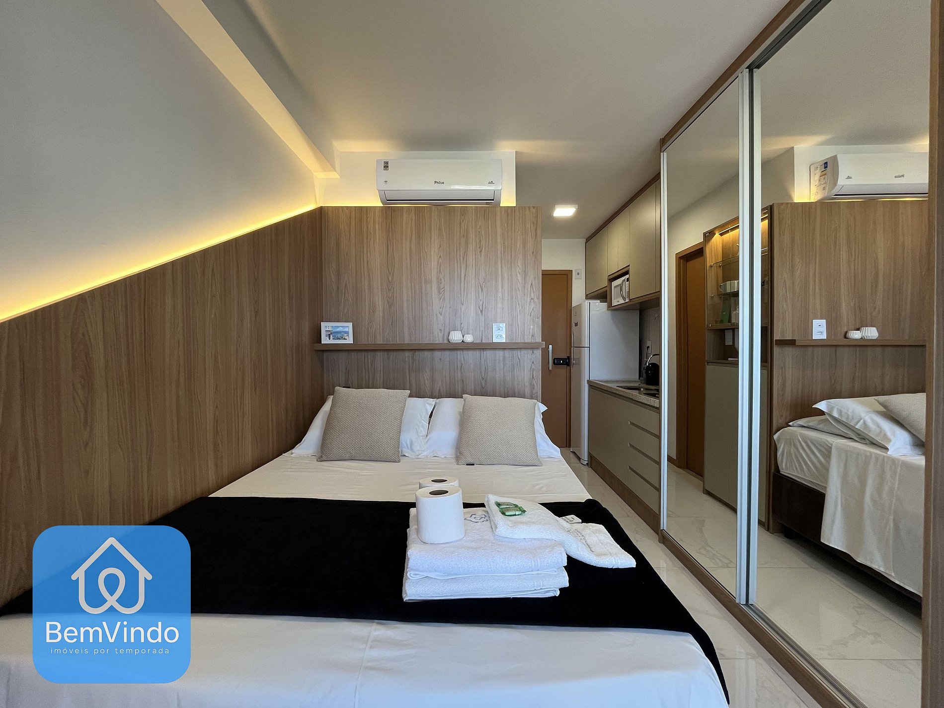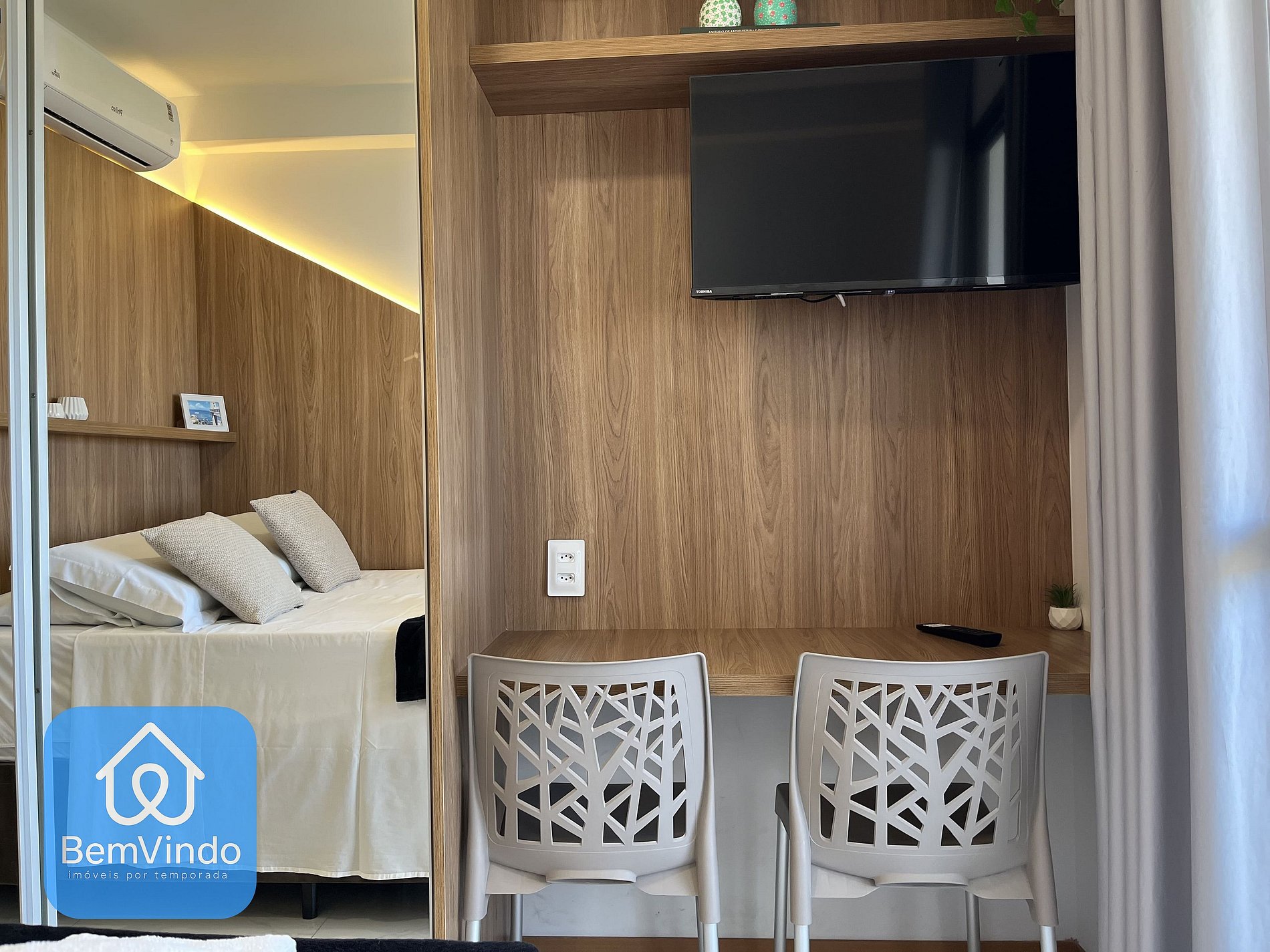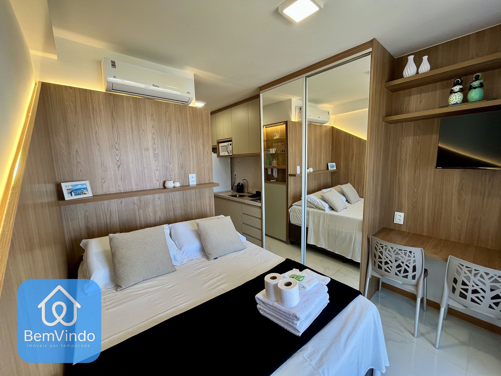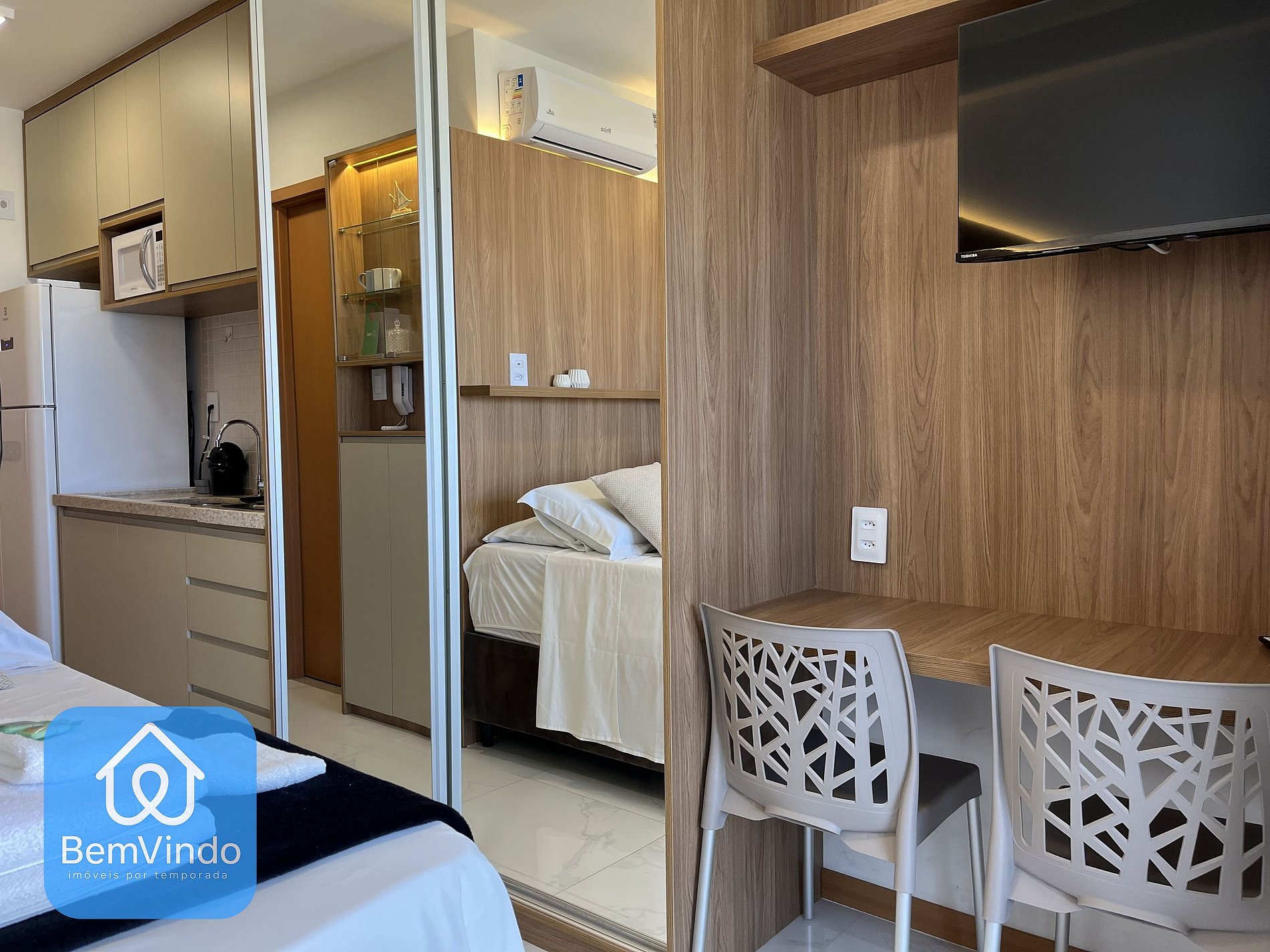 Nosso Estúdio no Smart Convenções, foi cuidadosamente decorado e totalmente equipado para oferecer um ambiente acolhedor e funcional. O quarto é climatizado, com ar-condicionado, dispõe de uma cama de casal nova e extremamente confortável e Smart TV, criando um ambiente acolhedor para relaxar garantindo uma excelente noite de descanso após um dia explorando a cidade.