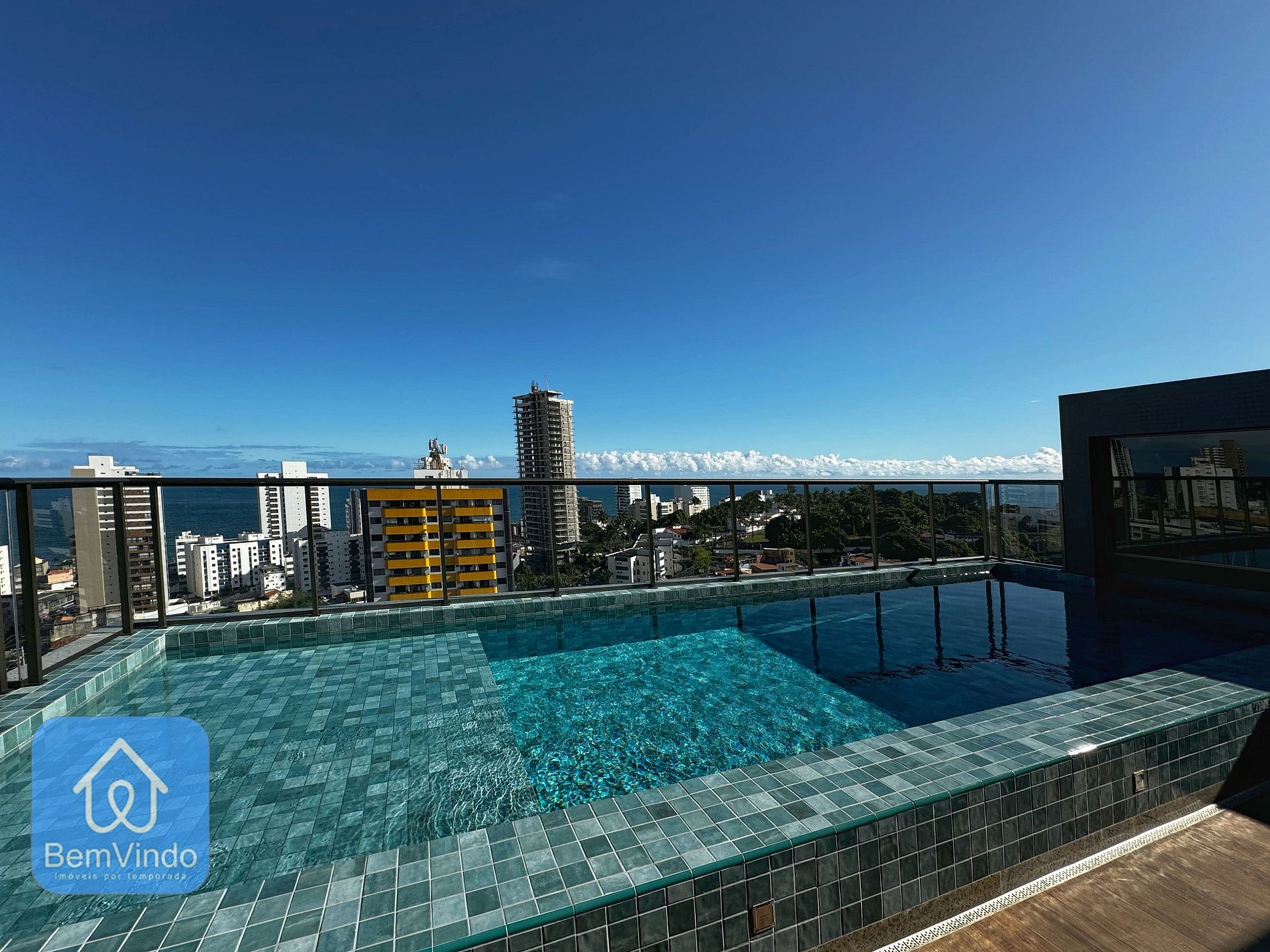 O rooftop é o ponto alto do empreendimento, com uma piscina de borda infinita e uma vista panorâmica espetacular da Barra e do mar. É o lugar perfeito para relaxar e apreciar a paisagem. O espaço ainda conta com uma área gourmet para refeições ao ar livre, uma sauna para momentos de descanso e uma academia moderna e bem equipada para os que não abrem mão dos exercícios durante a estadia.