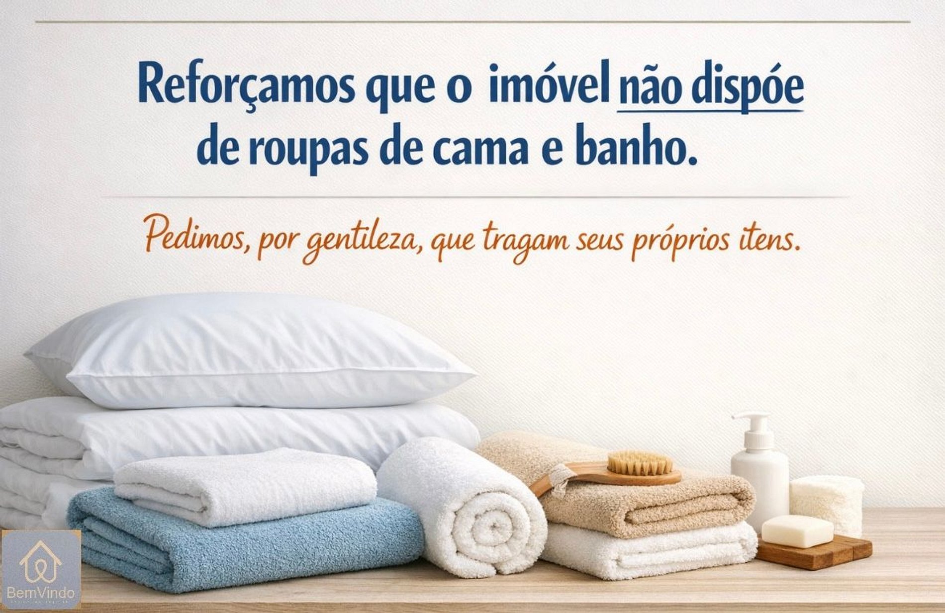 ESSE IMÓVEL NÃO TEM FORNECIMENTO DE ROUPA DE CAMA E BANHO, SERÁ NECESSÁRIO QUE O INQUILINO LEVE PARA USO PESSOAL.