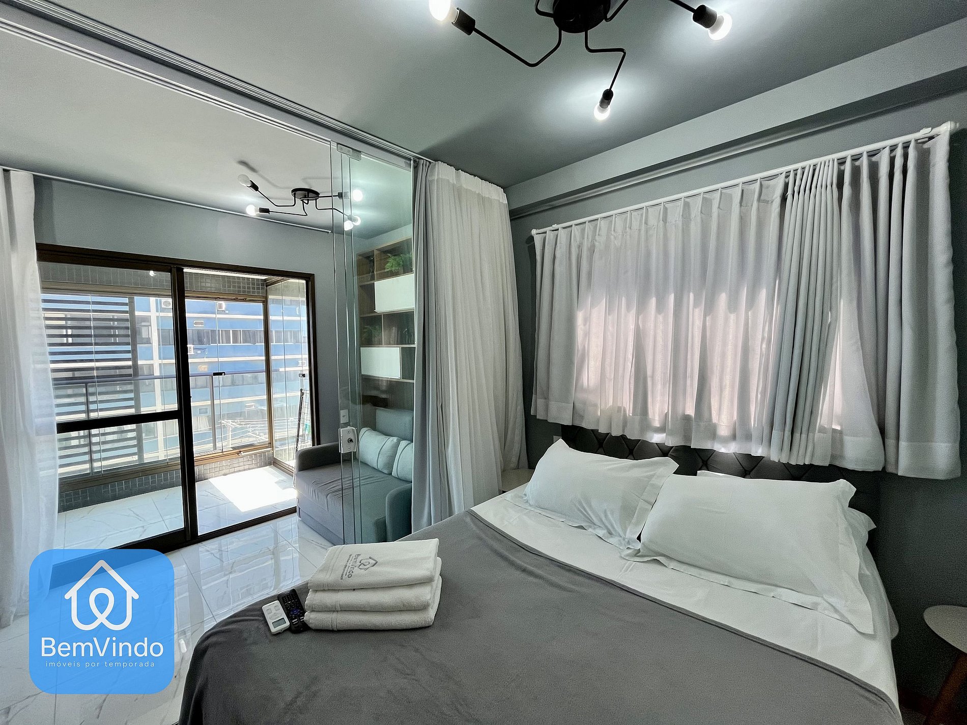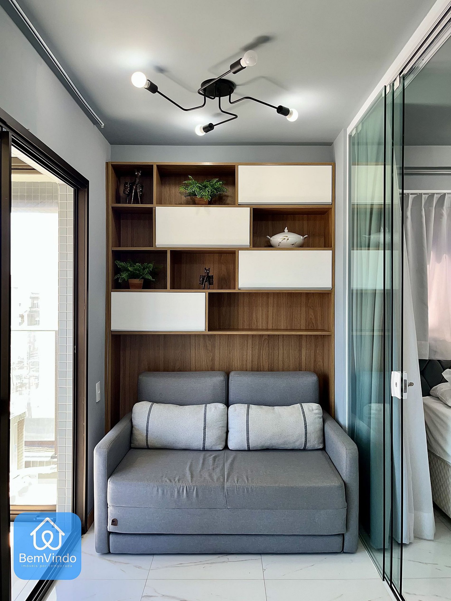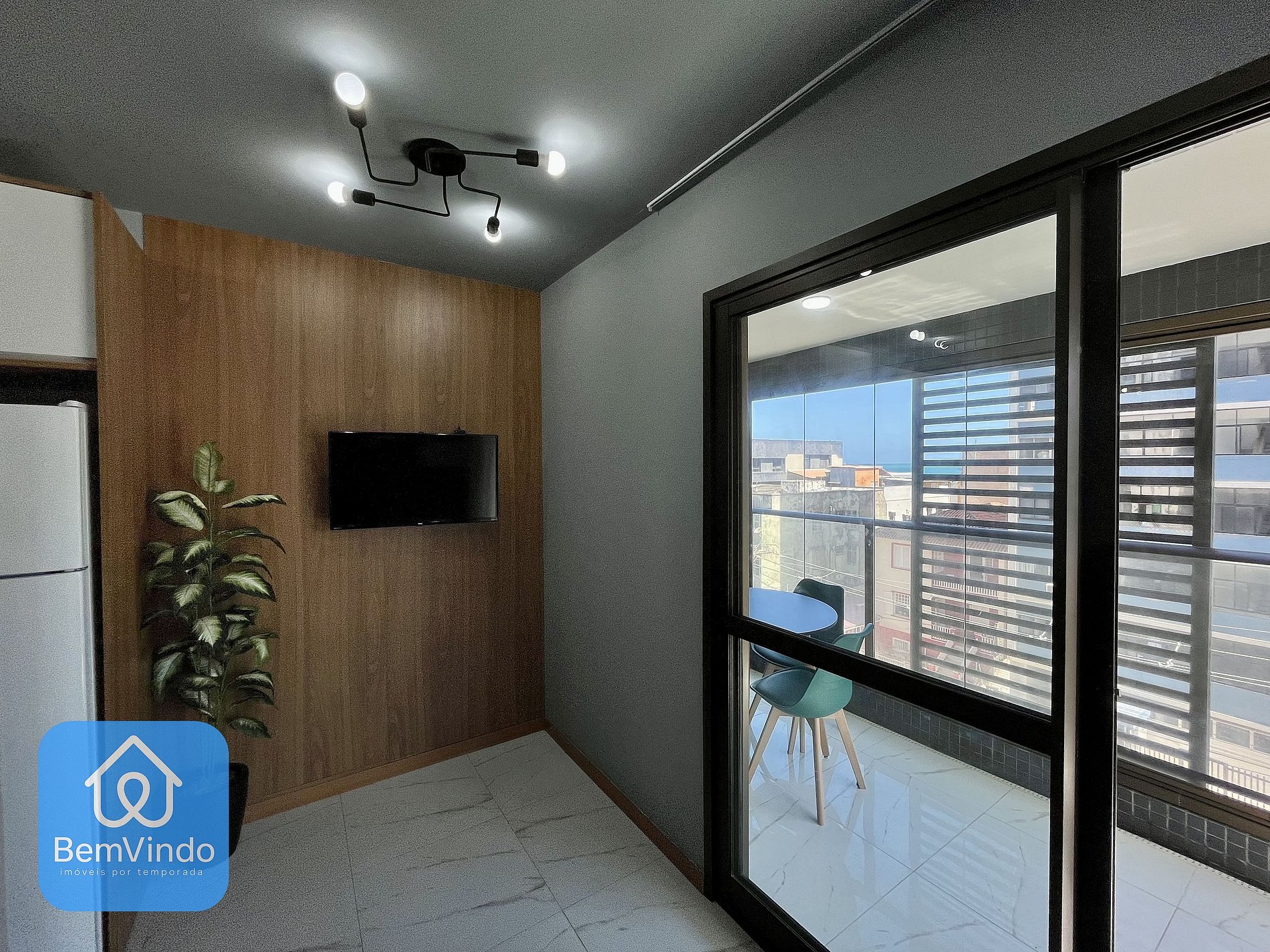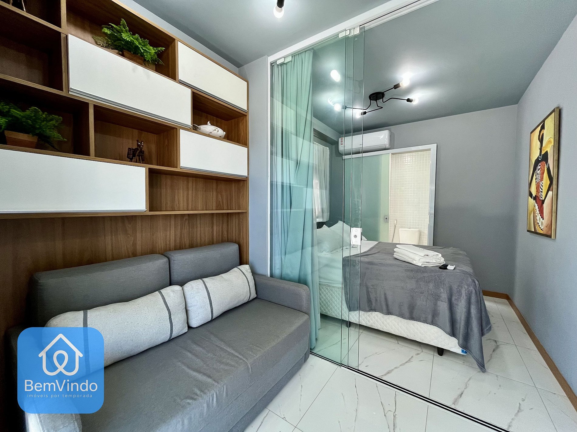 A sala é decorada com móveis planejados para oferecer o maior conforto possível para você, além de um sofá para relaxar, possuímos Smart Tv na sala para melhor conforto, o apartamento conta com um cama nova e confortável e um ar condicionado potente para resfriar o calor Baiano.