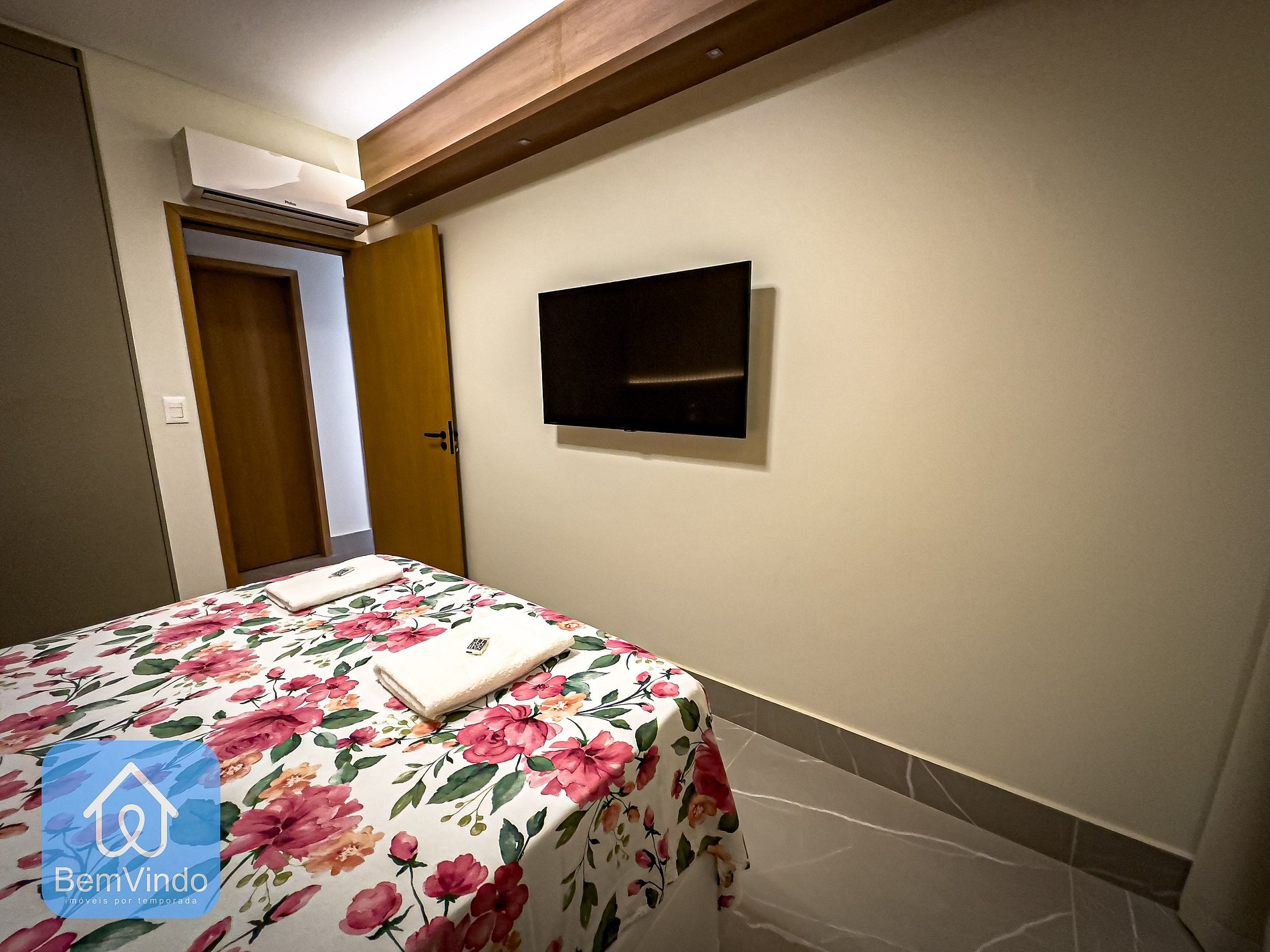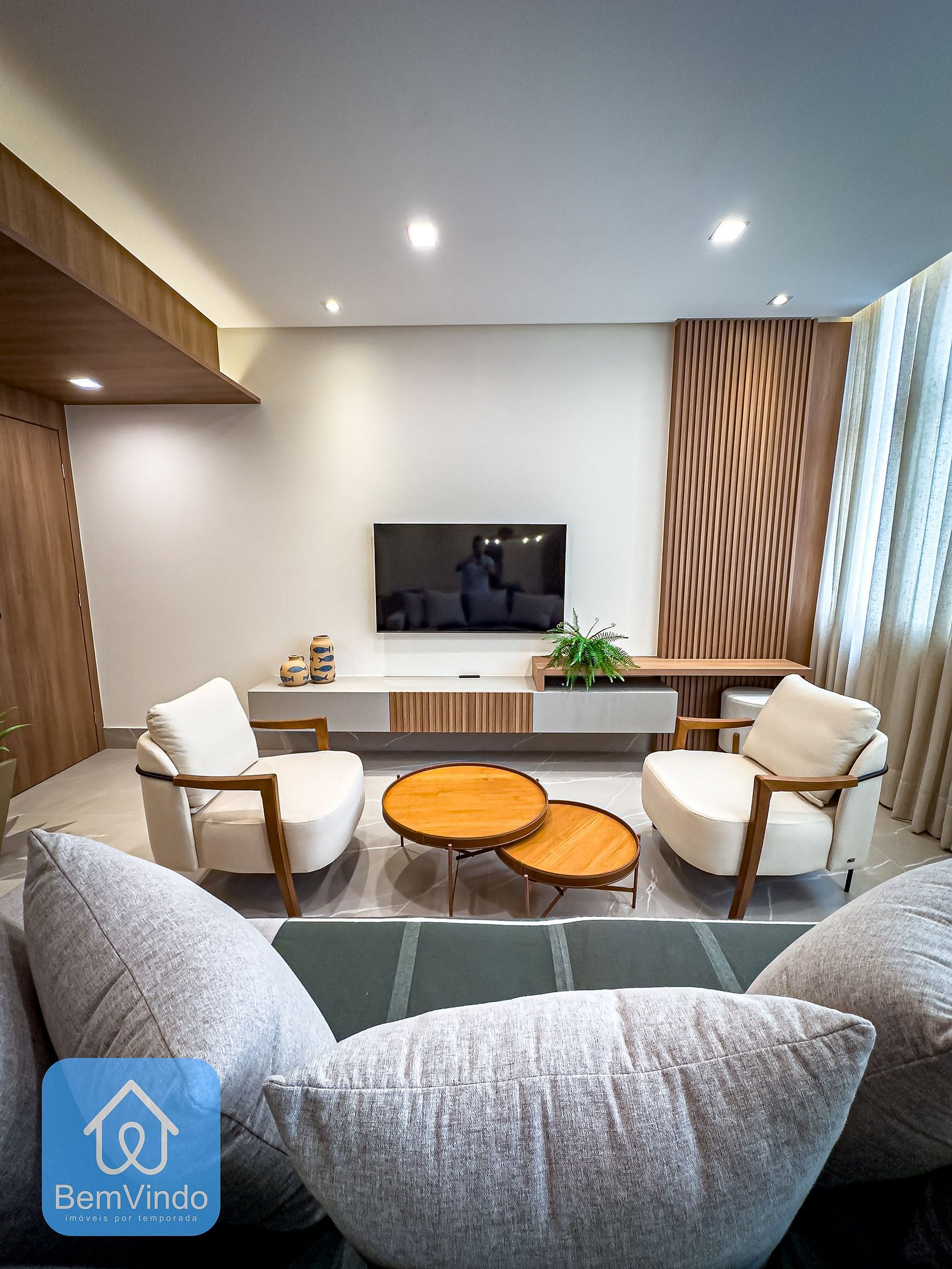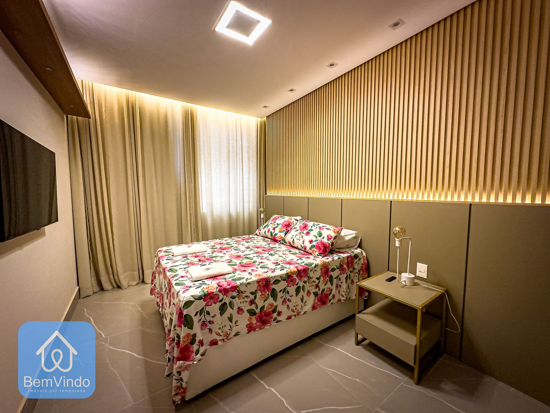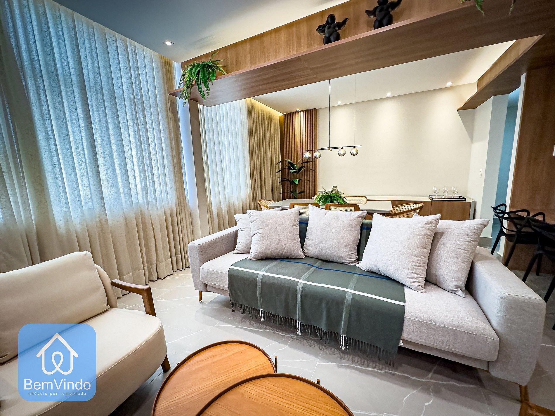 Ao adentrar nosso apartamento, você será recebido por uma atmosfera de elegância e sofisticação. Nossos dois quartos são cuidadosamente decorados, com uma cama de casal confortável em um e um sofá-cama de alta qualidade no outro. A sala espaçosa é um convite ao relaxamento, com um sofá de alto padrão e uma mesa de jantar para seis pessoas, perfeita para desfrutar de refeições em grande estilo.