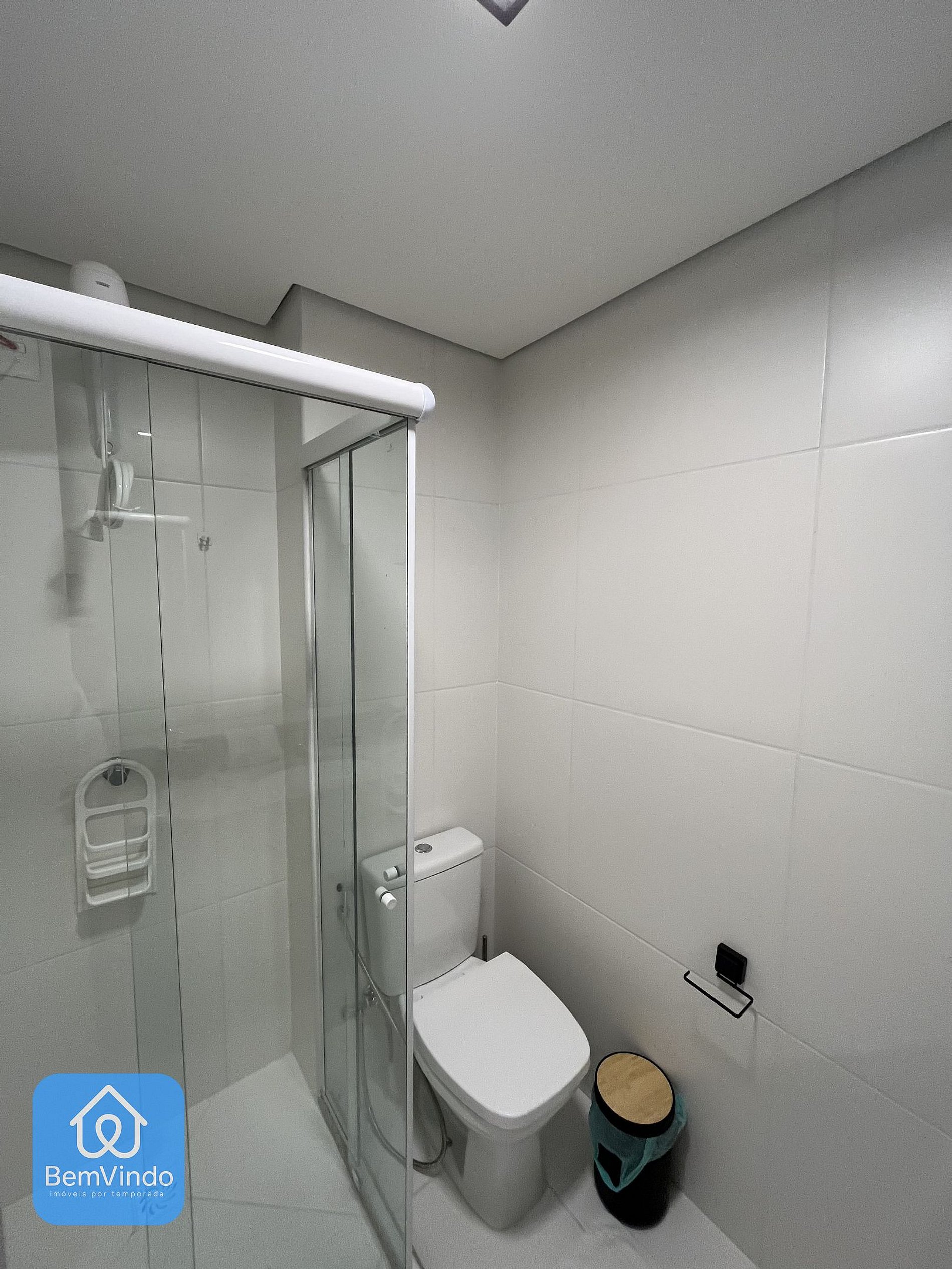 O banheiro é confortável, garantindo ainda mais comodidade durante a estadia.