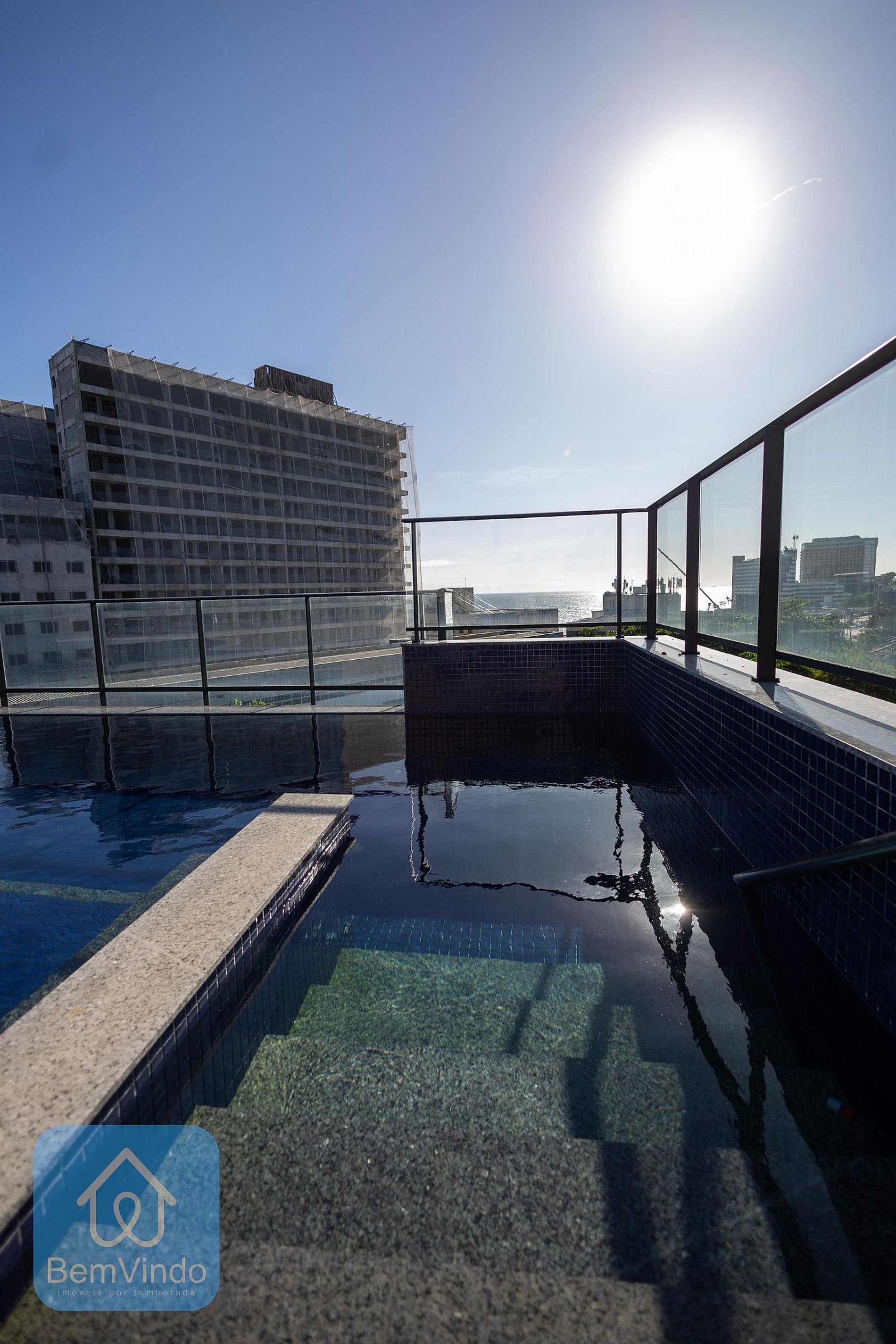 O rooftop é o ponto alto do empreendimento, com uma piscina de borda infinita e uma vista panorâmica espetacular do Ondina e do mar. É o lugar perfeito para relaxar e apreciar a paisagem.