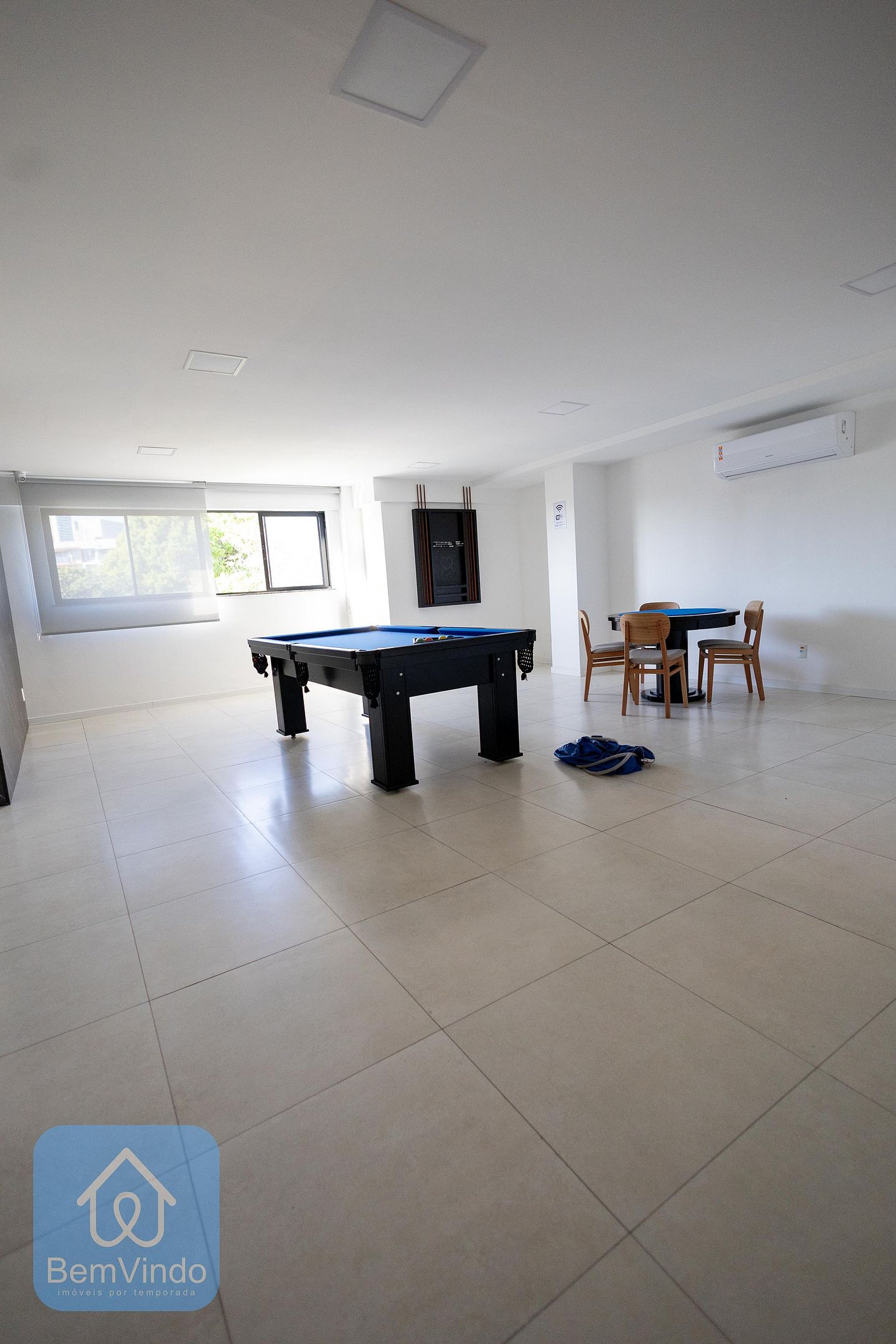 O salão de jogos oferece um espaço acolhedor com cadeiras e uma mesa de sinuca, criando um ambiente descontraído e ideal para socialização.