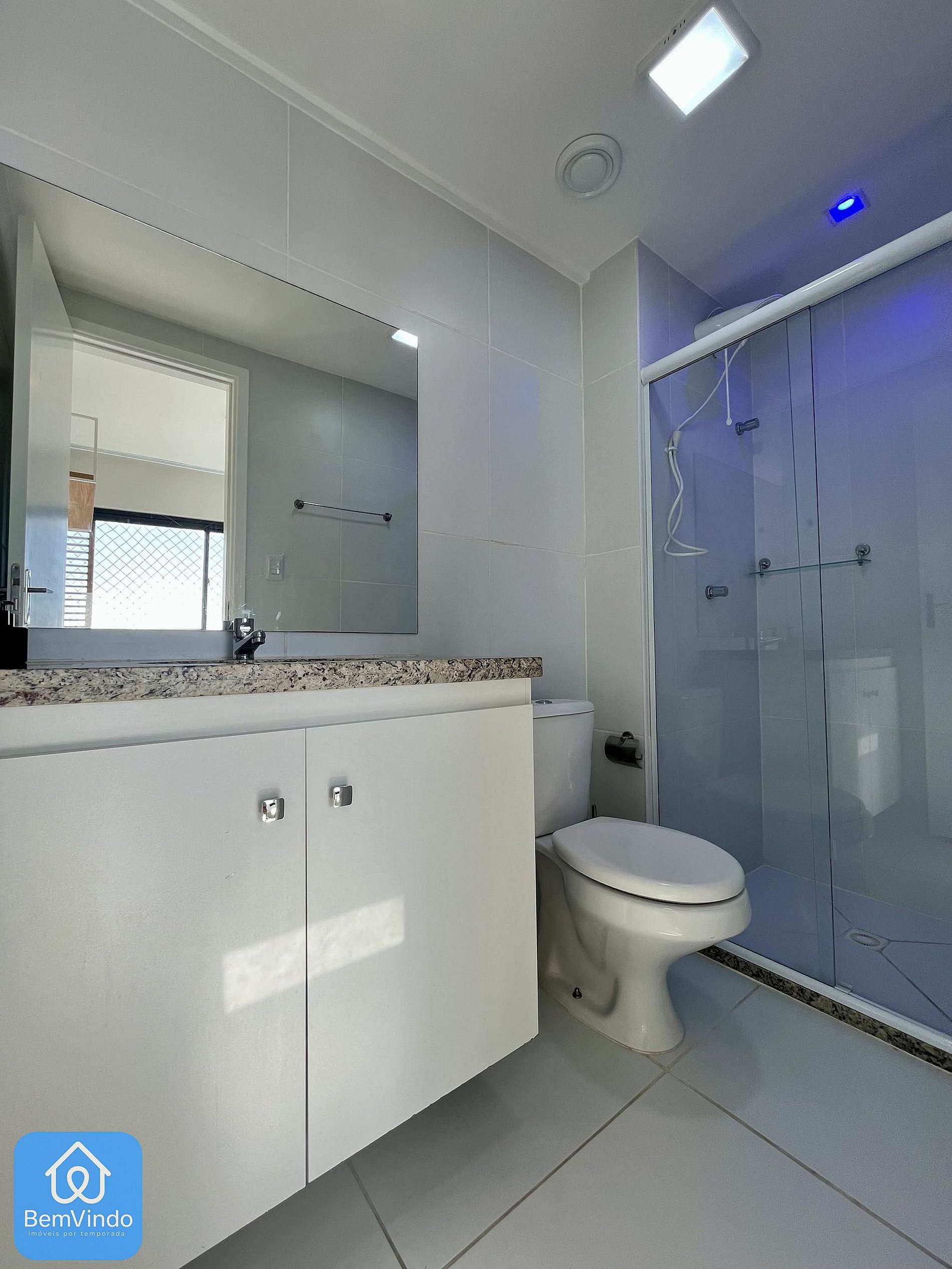 Nosso apartamento no Blue Barra, com uma vista para rua tranquila, foi cuidadosamente decorado e totalmente equipado para oferecer um ambiente acolhedor e funcional. A suíte climatizada, com ar-condicionado, dispõe de uma cama de casal nova e extremamente confortável, garantindo uma excelente noite de descanso após um dia explorando a cidade. Também possui uma Smart Tv. O banheiro da suíte é outro destaque, com chuveiro e espelho amplo, unindo praticidade e sofisticação.