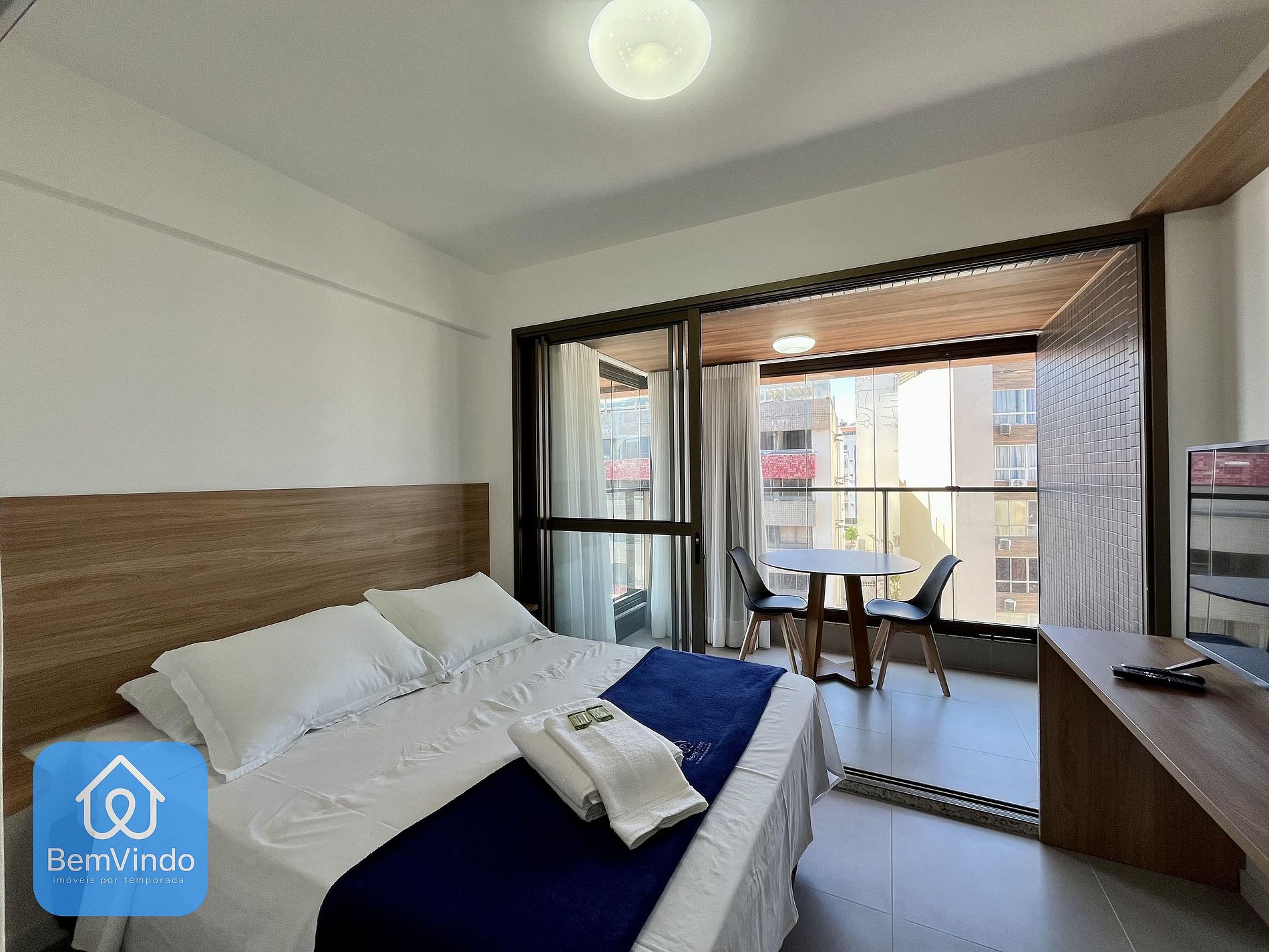 O espaço conta com uma cama de casal super confortável, Smart TV, ar condicionado, mesa de jantar para momentos de lazer e refeições aconchegantes.