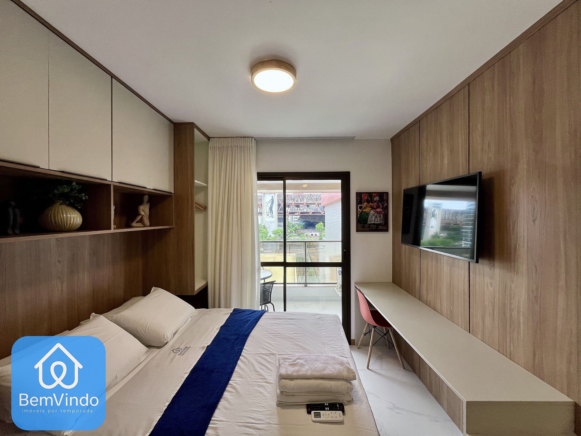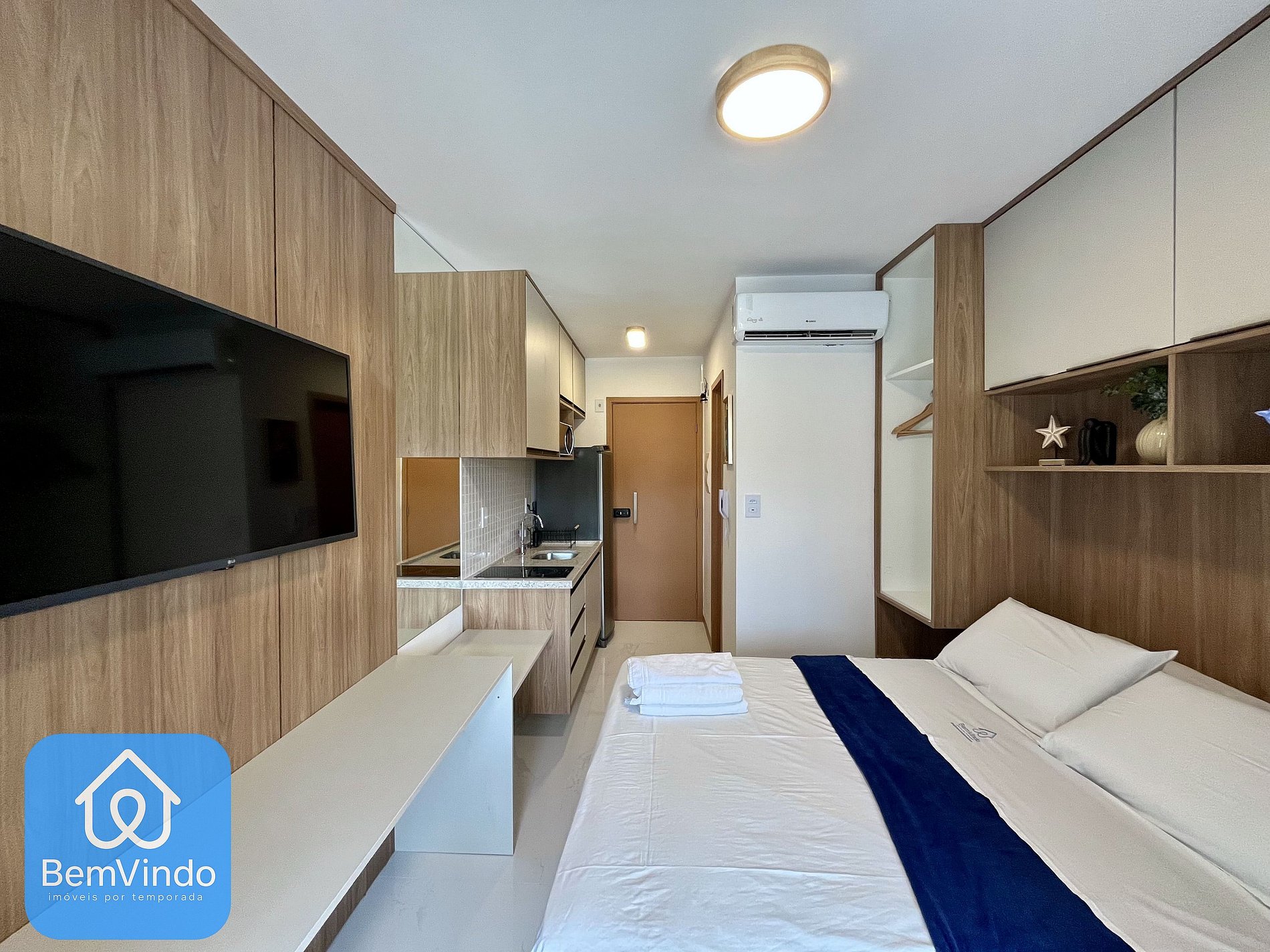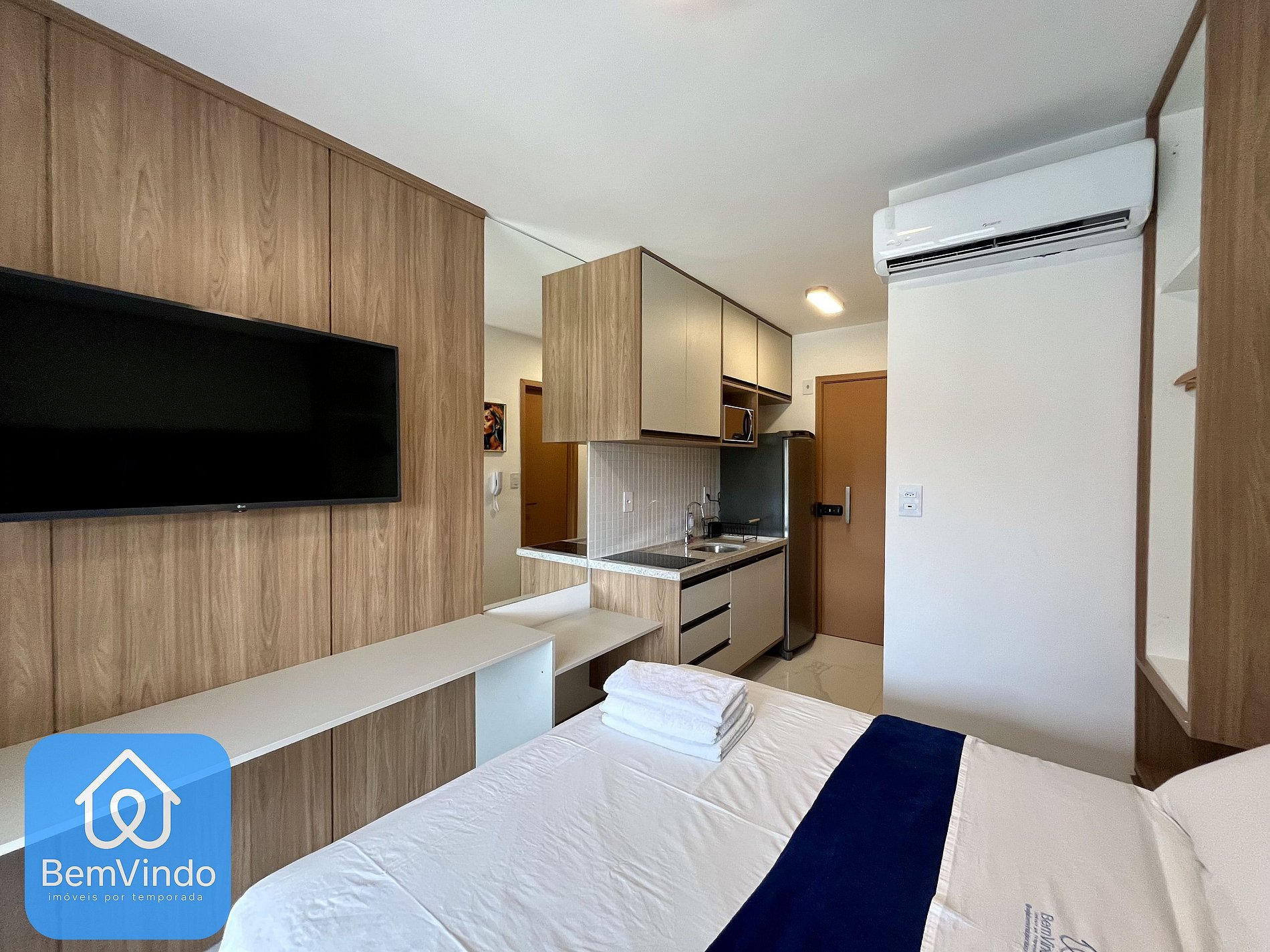 Nosso Estúdio no Smart Convenções, foi cuidadosamente decorado e totalmente equipado para oferecer um ambiente acolhedor e funcional. O quarto é climatizado, com ar-condicionado, dispõe de uma cama de casal nova e extremamente confortável e Smart TV, criando um ambiente acolhedor para relaxar garantindo uma excelente noite de descanso após um dia explorando a cidade.