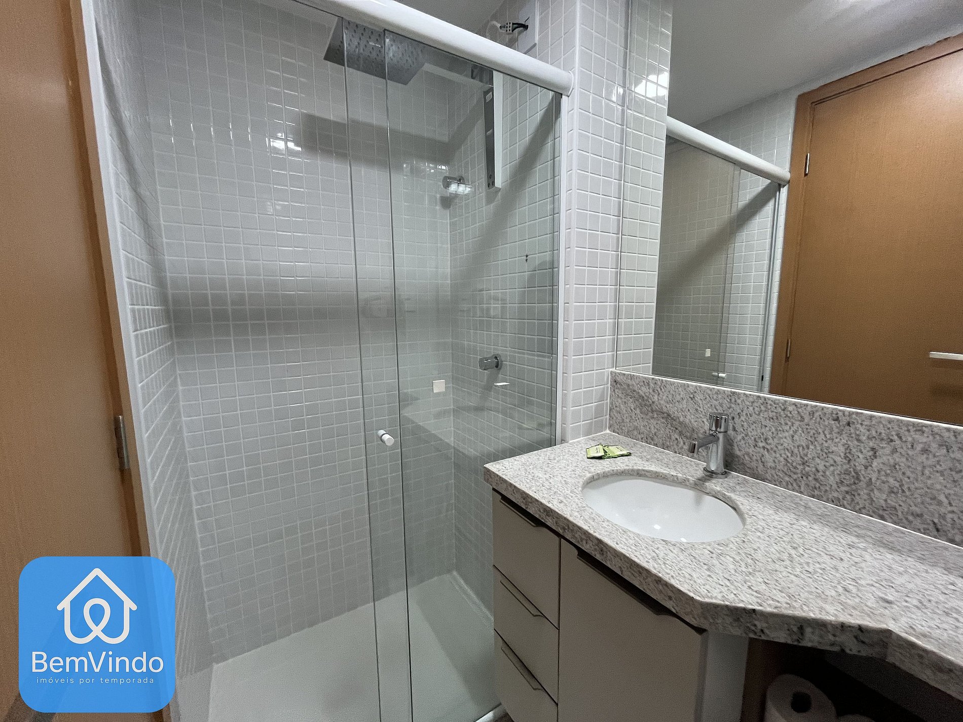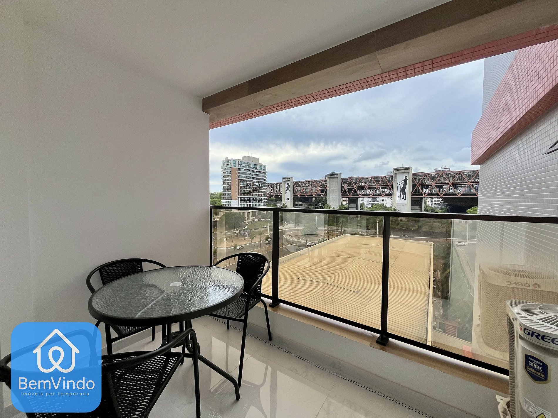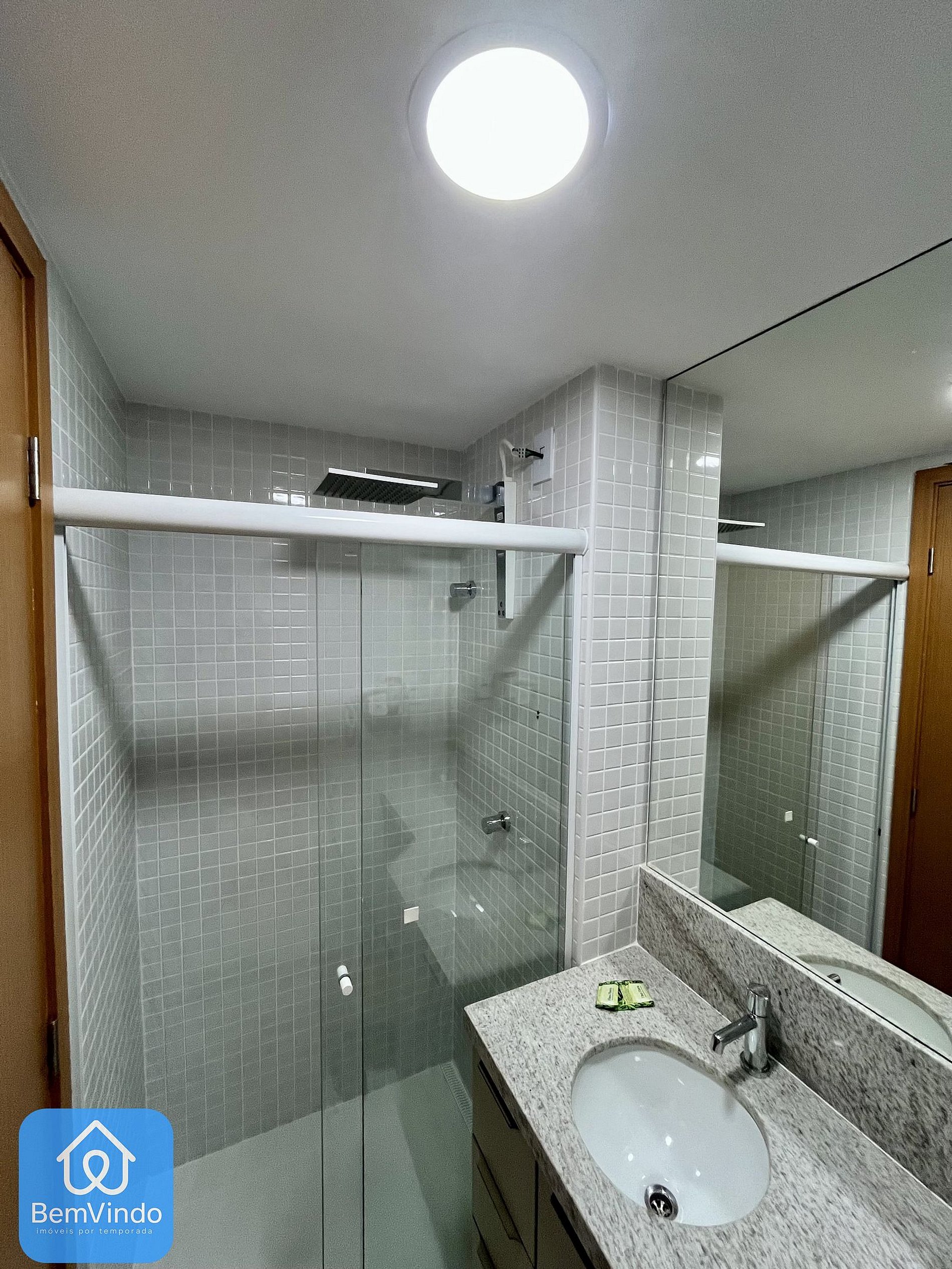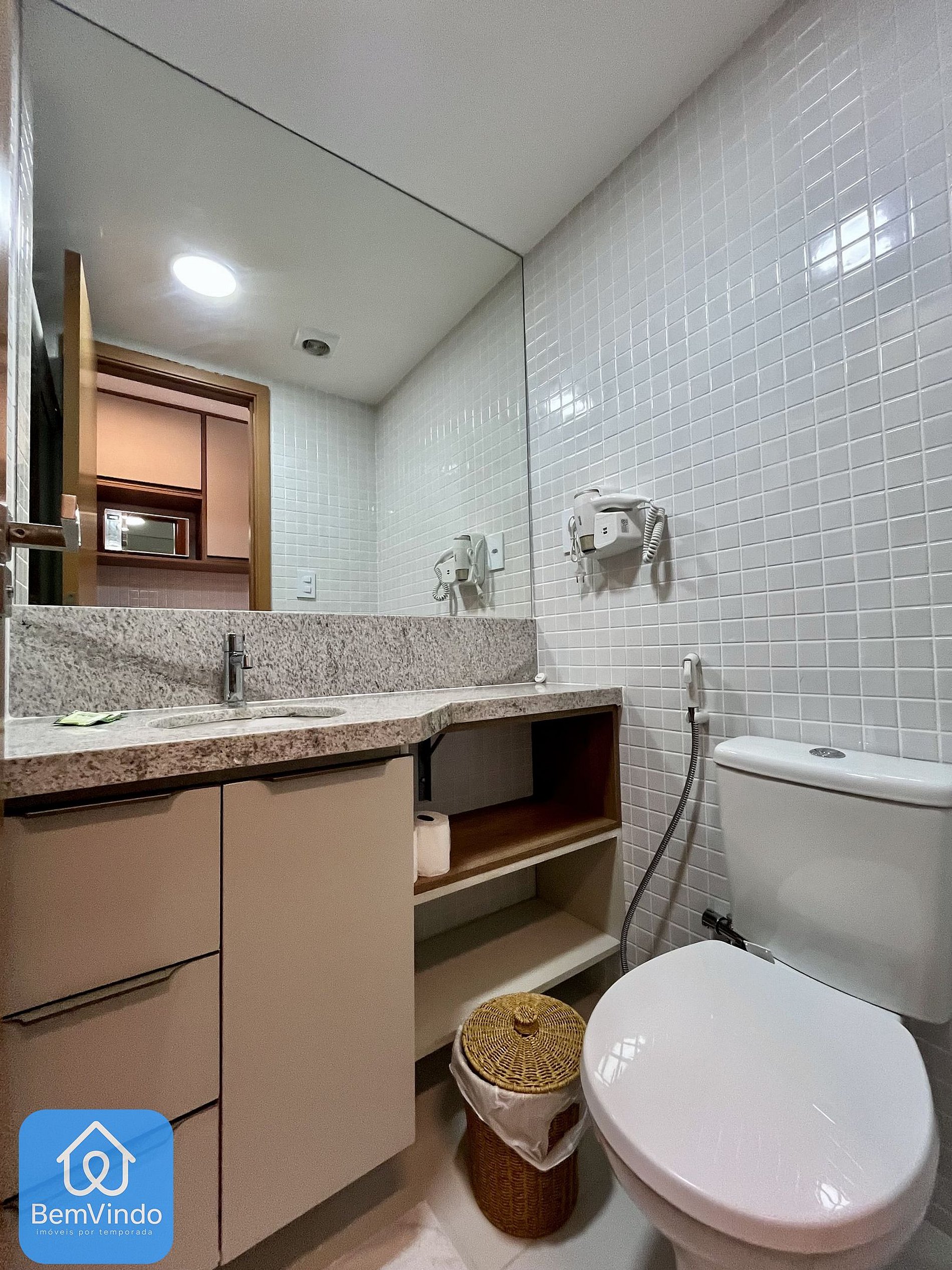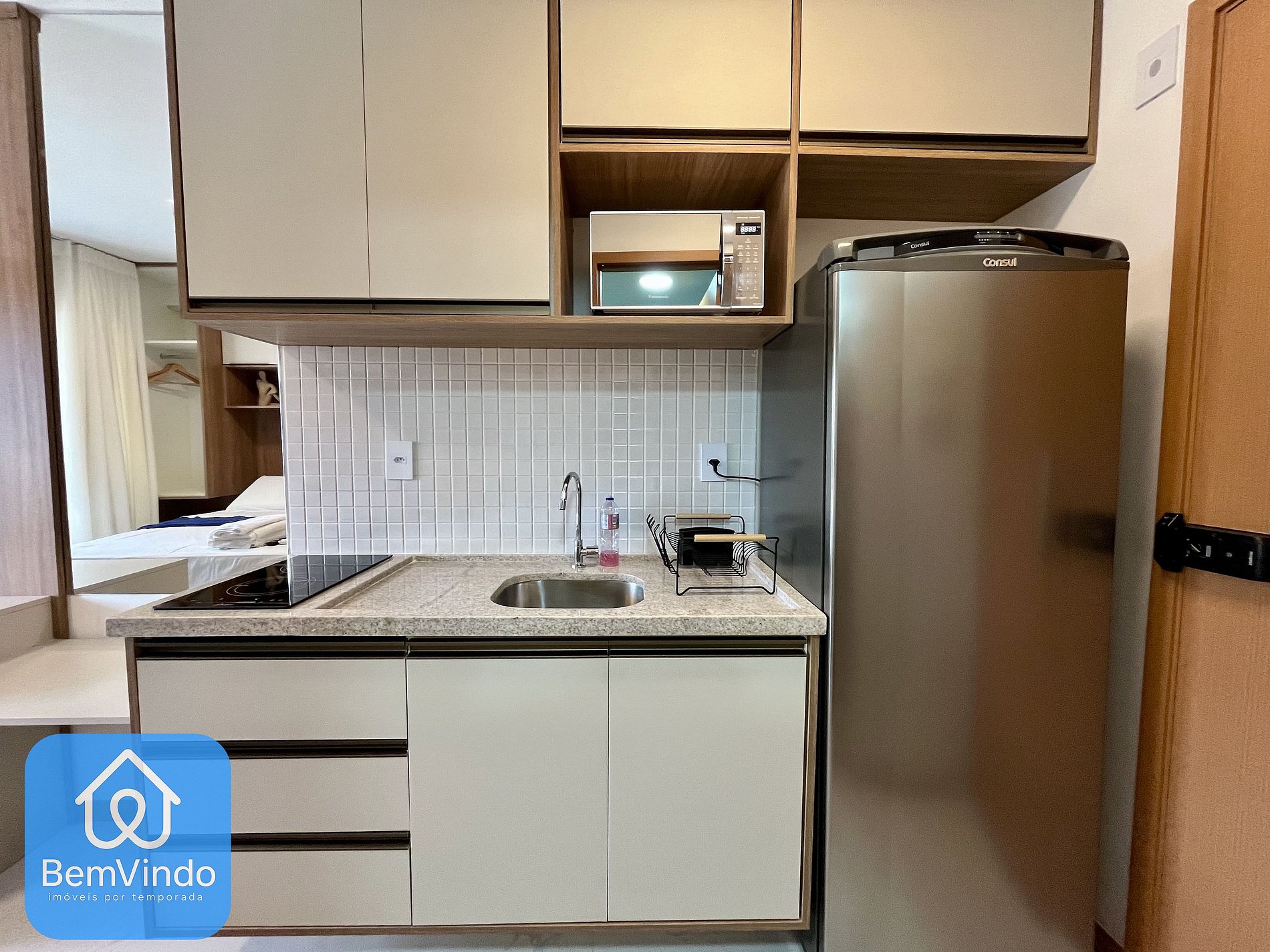 O banheiro é outro destaque, com chuveiro e espelho amplo, unindo praticidade e sofisticação. Possui também uma vista para rua, possuindo também mesas e cadeiras. A cozinha, prática e completa, está equipada com cooktop elétrico, micro-ondas, geladeira e todos os utensílios necessários para preparar suas refeições com conforto e praticidade.