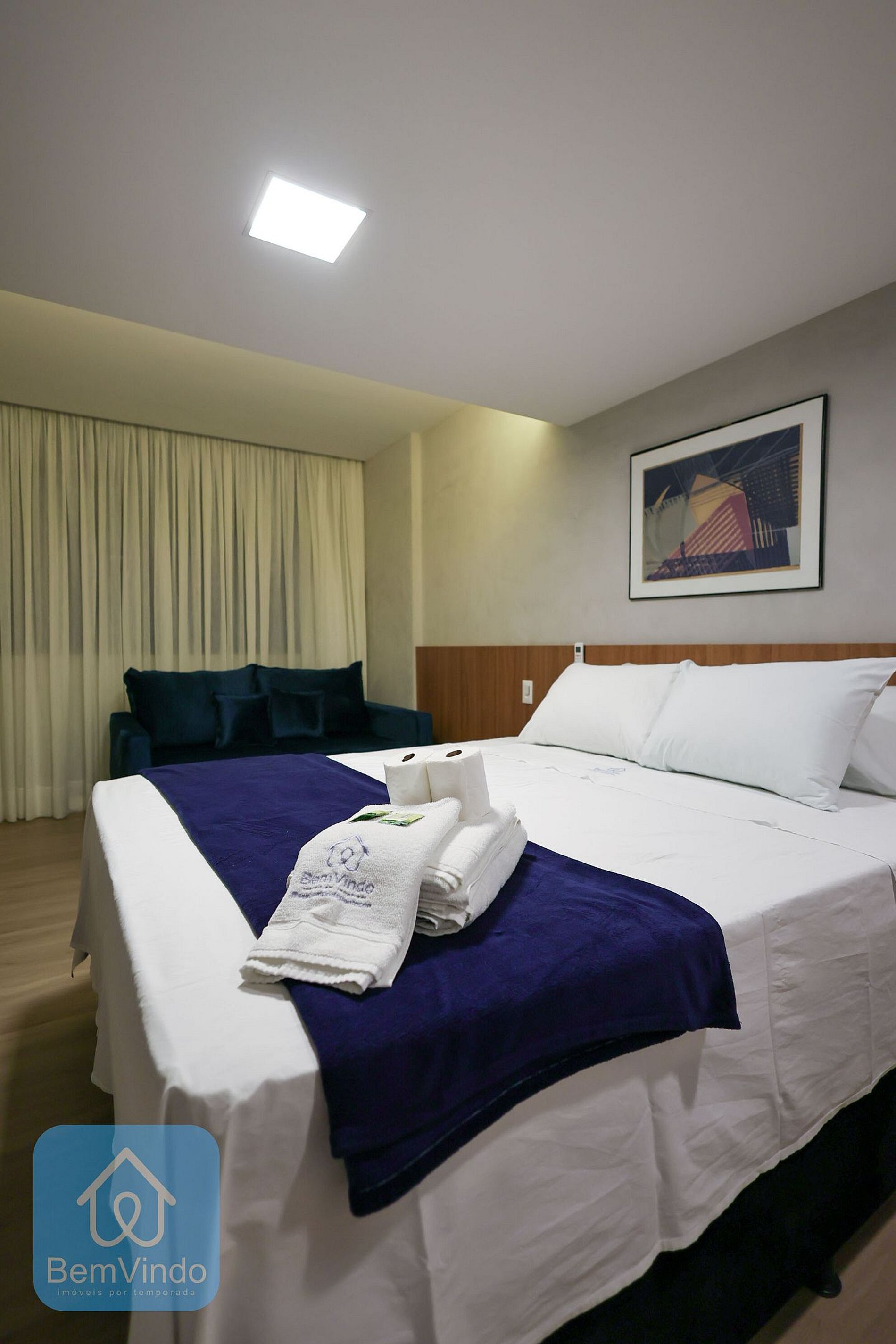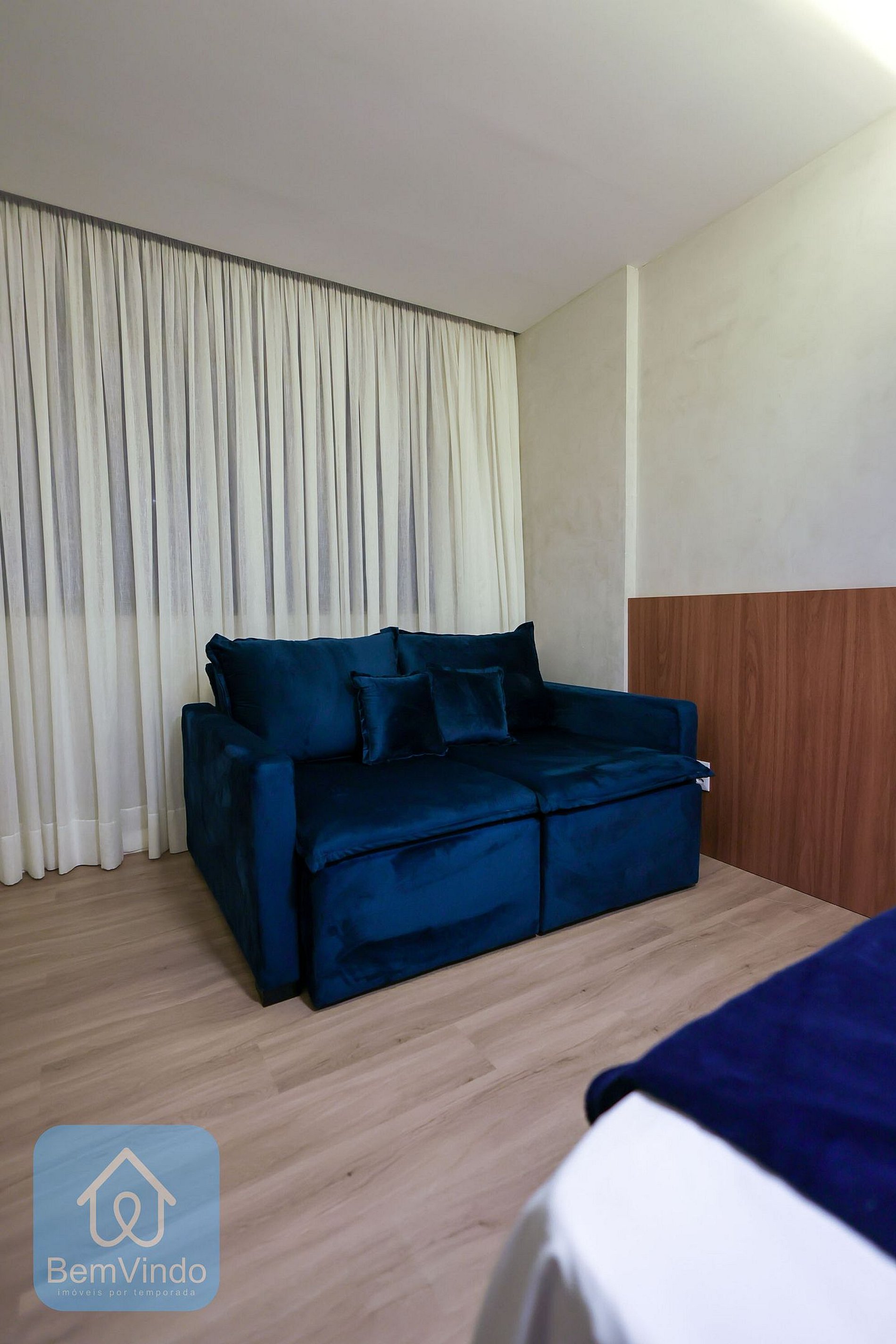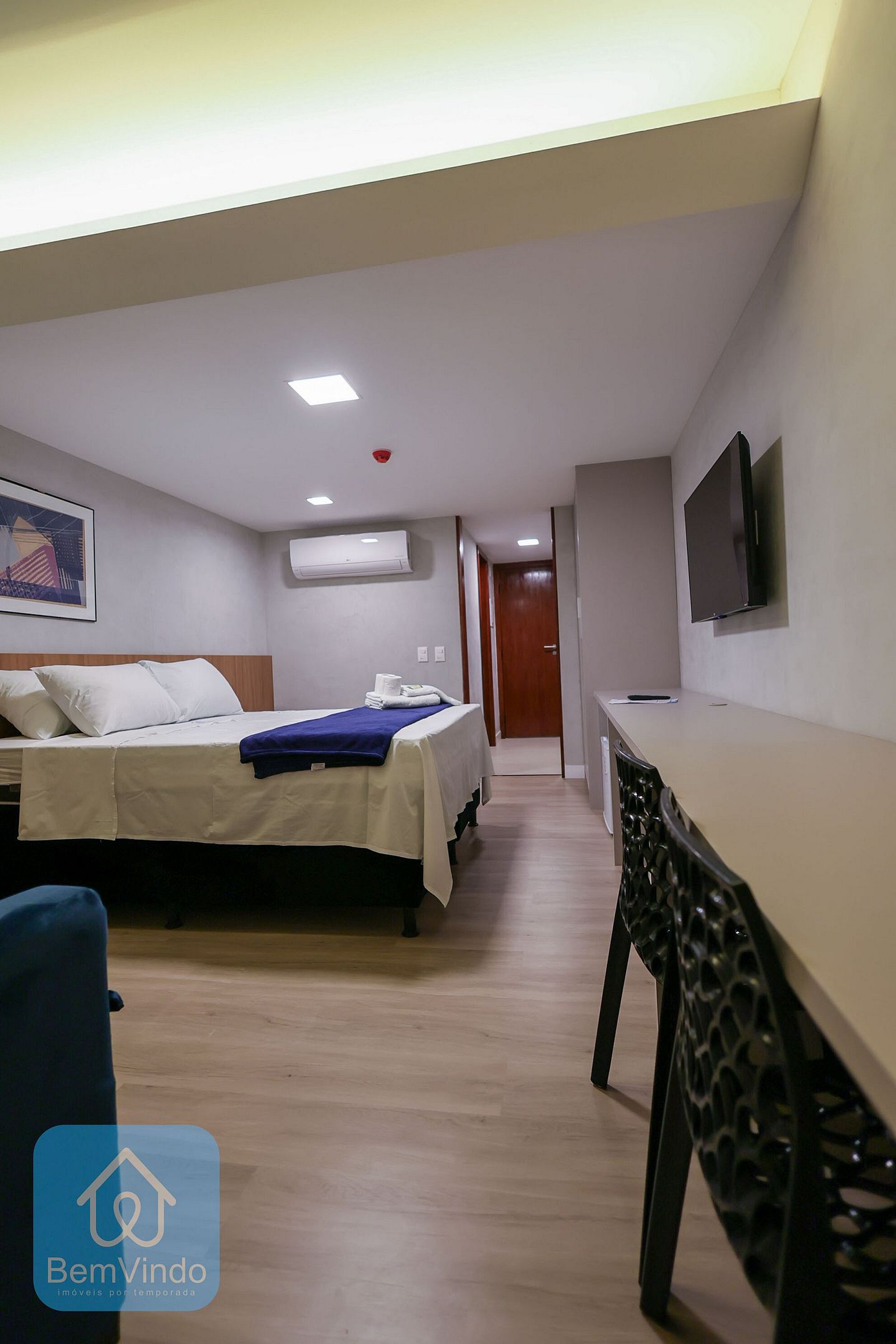 A sala é decorada com móveis planejados para oferecer o maior conforto possível, além de um sofá para relaxar o apartamento conta com uma cama nova e confortável e ar condicionado para resfriar o calor Baiano;