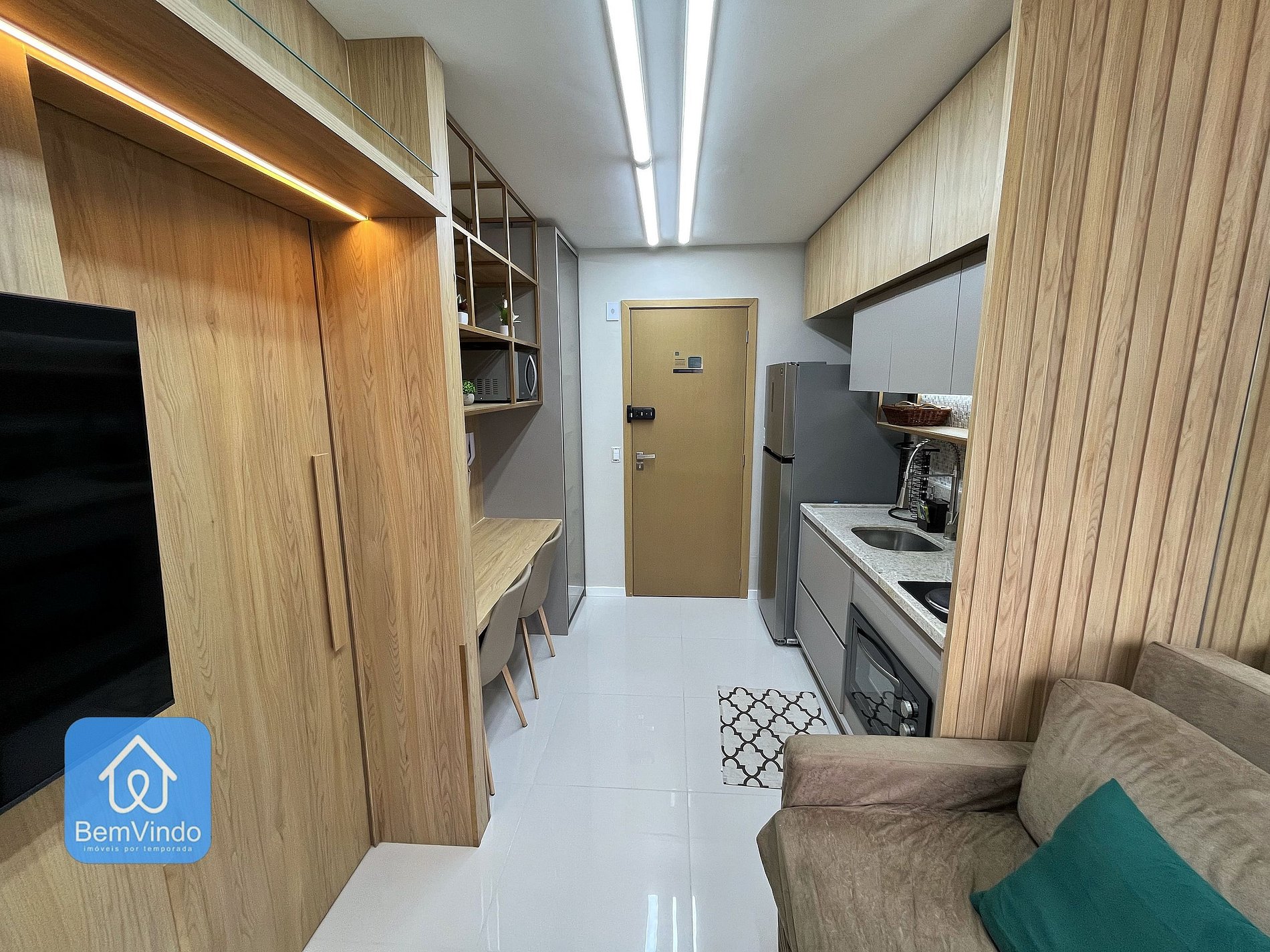 O estúdio ainda conta com Wi-Fi de alta velocidade, ideal para quem precisa se manter conectado, seja para trabalho ou lazer.
