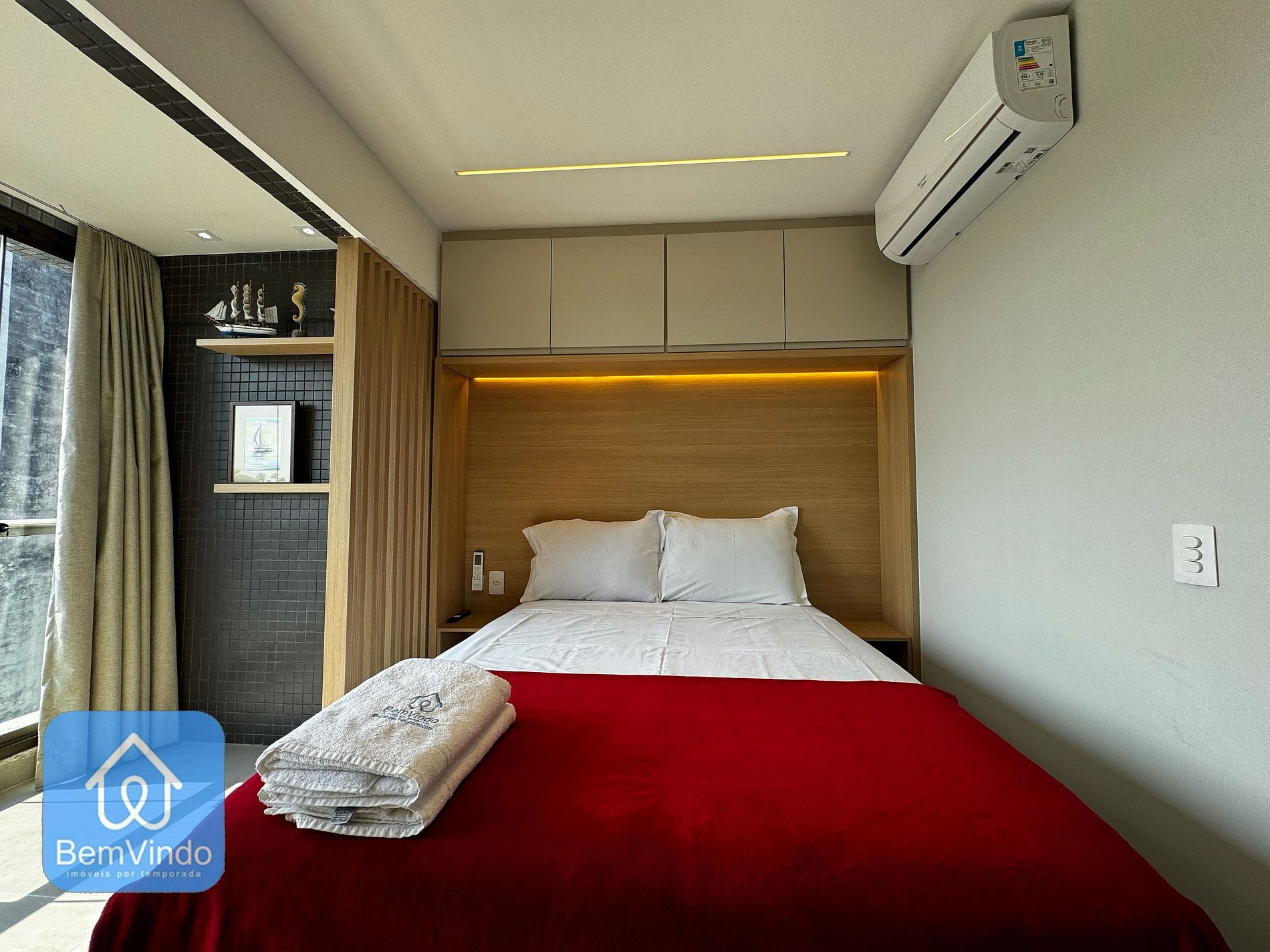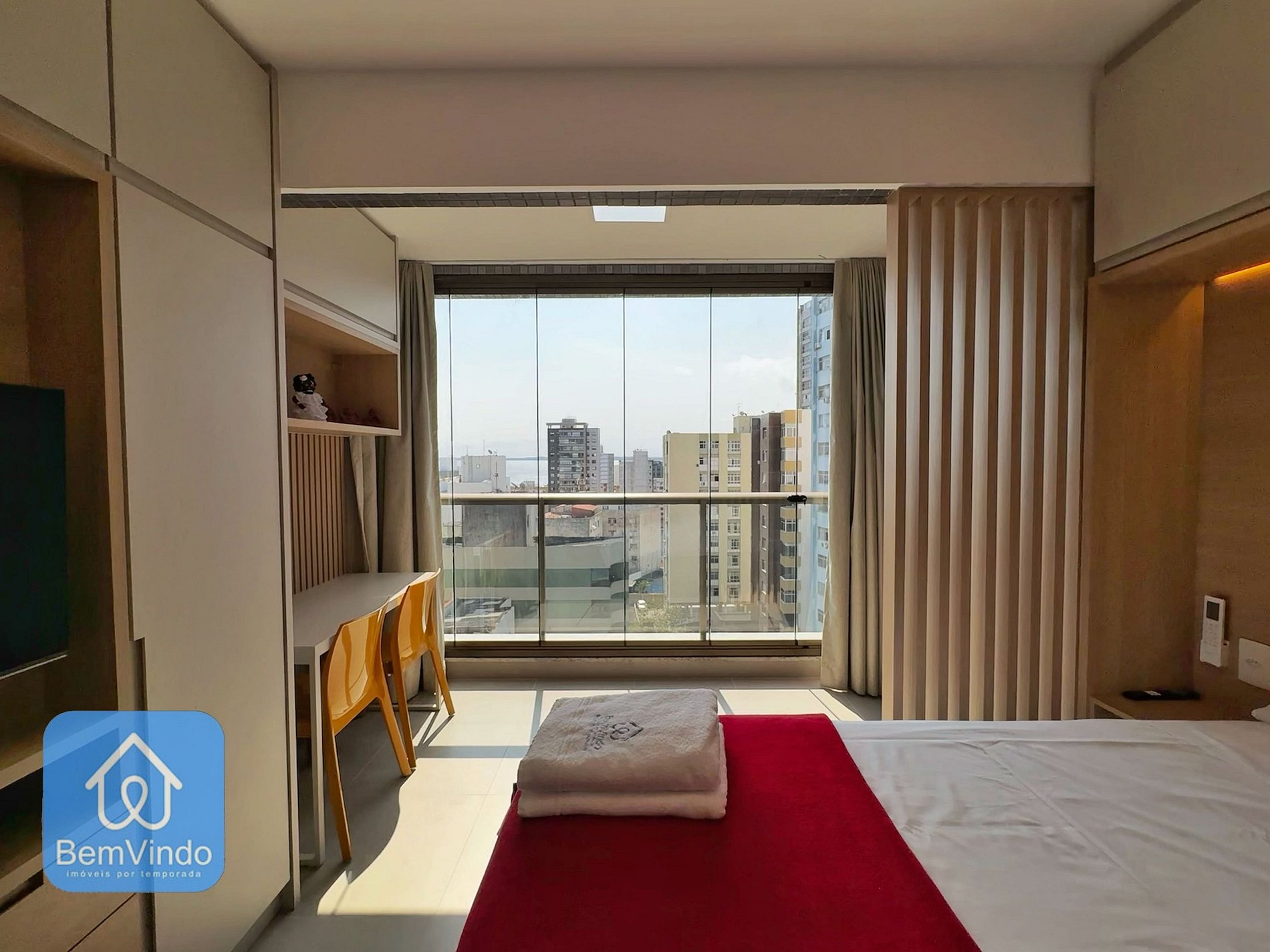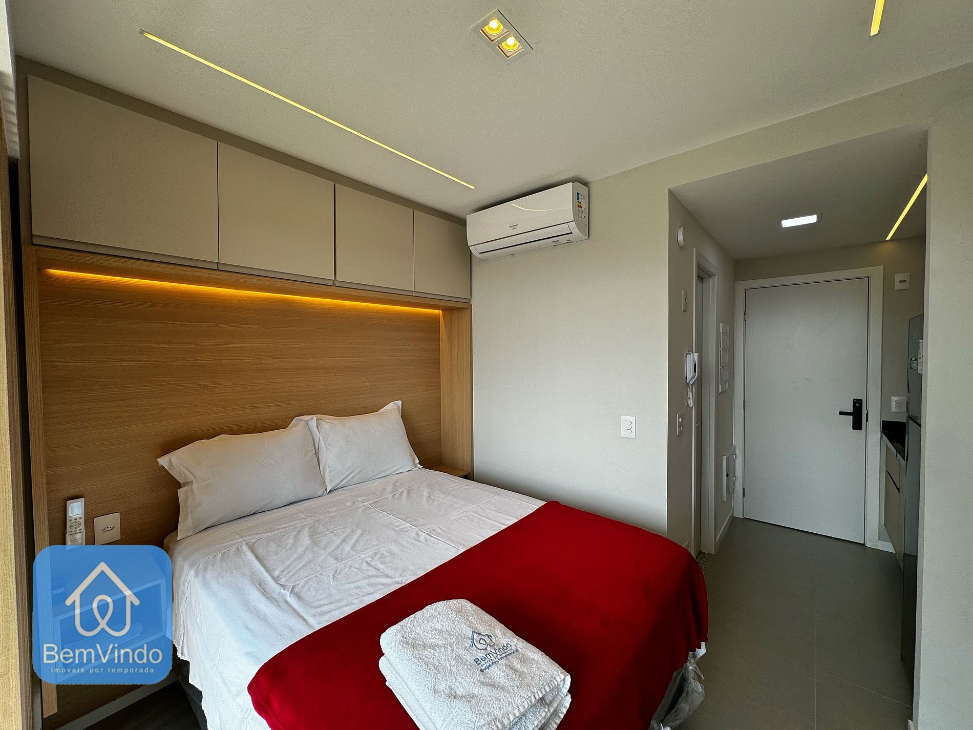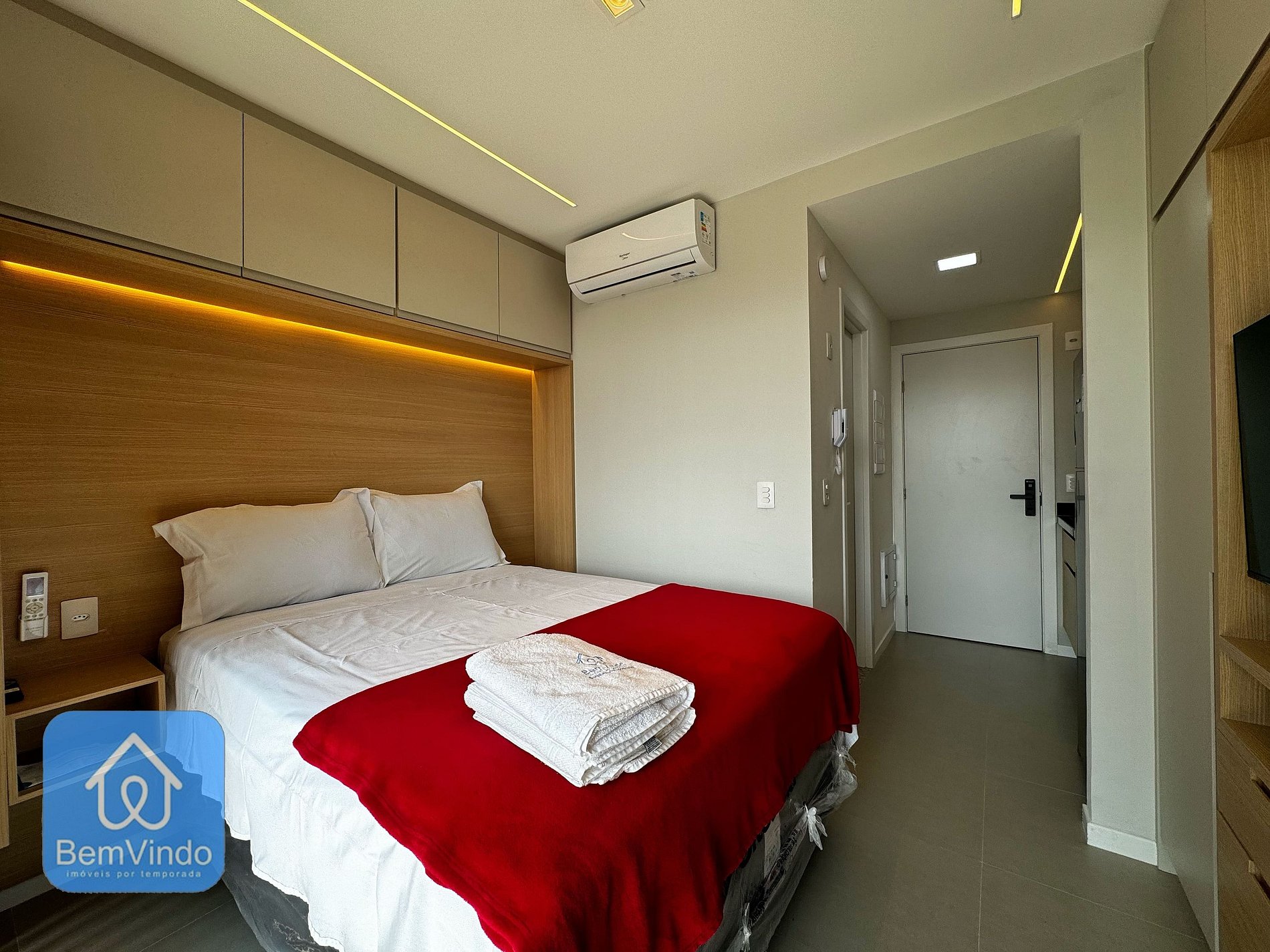 Nosso estúdio, cuidadosamente decorado e totalmente equipado, proporciona um ambiente acolhedor e funcional. O espaço foi ampliado, oferecendo um ambiente único e ainda mais espaçoso, com uma cama de casal nova e extremamente confortável, perfeita para uma boa noite de sono após um dia de exploração pela cidade. Para seus momentos de lazer, o estúdio dispõe de uma TV moderna, garantindo entretenimento durante sua estadia.