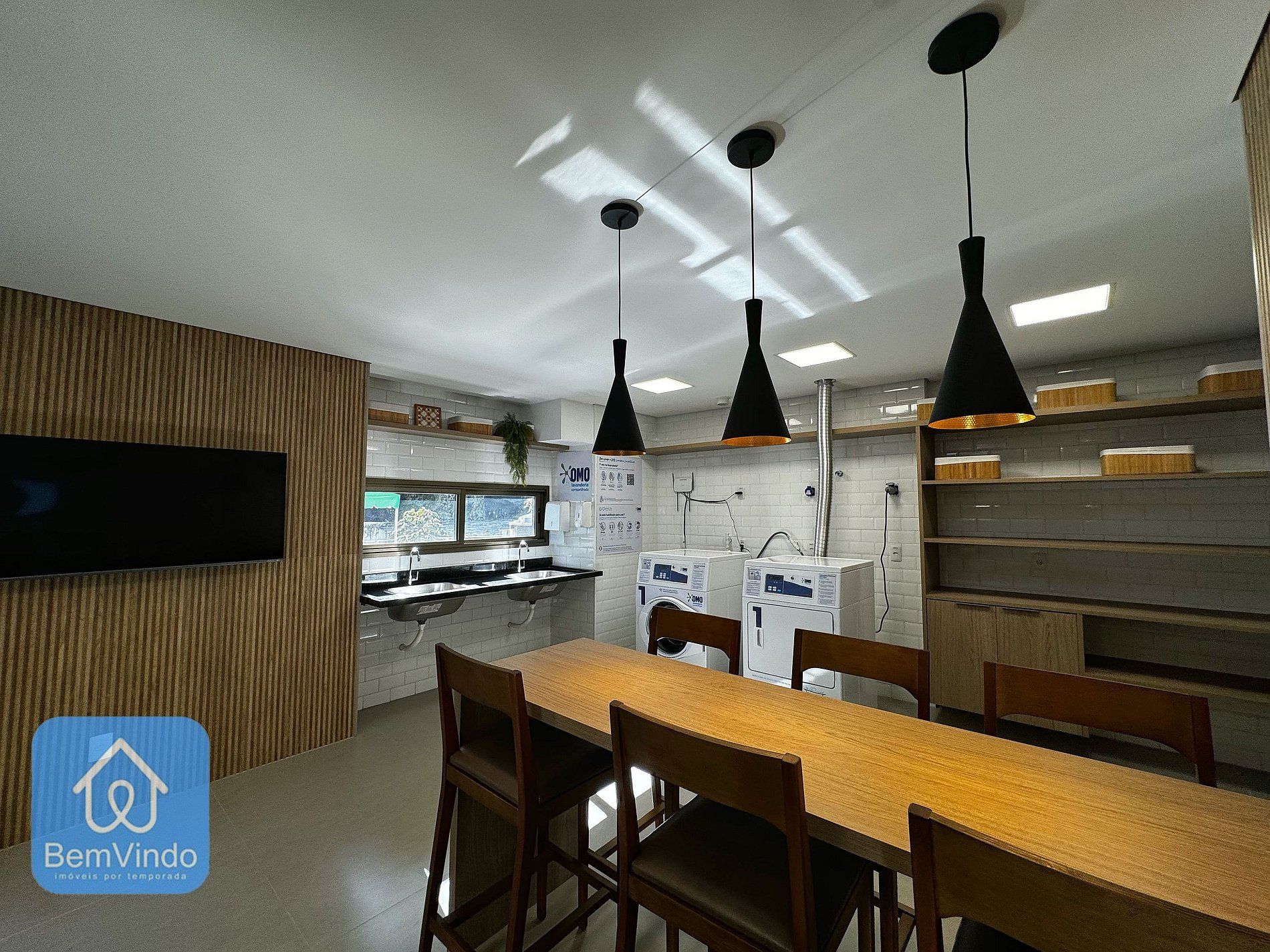 O Barra Conceito oferece uma experiência que vai muito além de uma simples hospedagem. O prédio dispõe de diversas comodidades para tornar sua estadia ainda mais confortável. Há uma vaga de garagem ROTATIVA para quem chega de carro, e a lavanderia compartilhada oferece um espaço acolhedor com sofá, cadeiras e uma mesa de sinuca, criando um ambiente descontraído e ideal para socialização.
