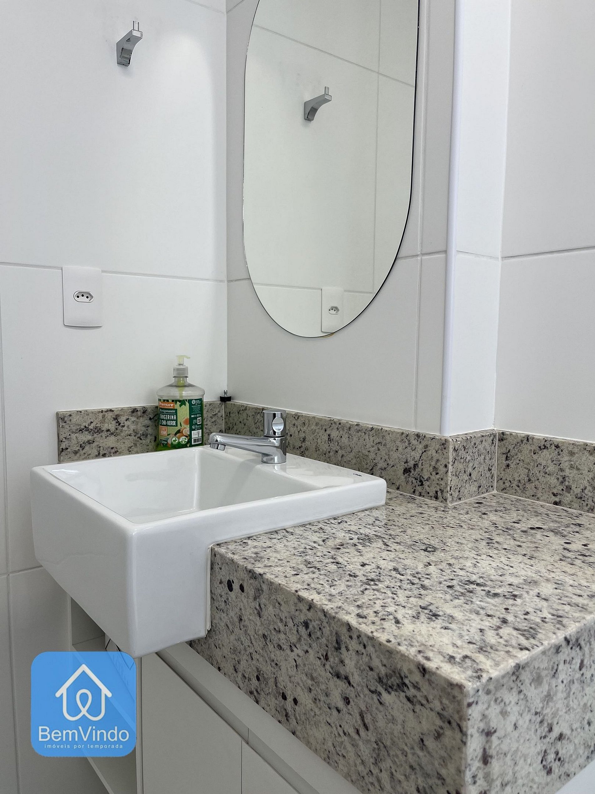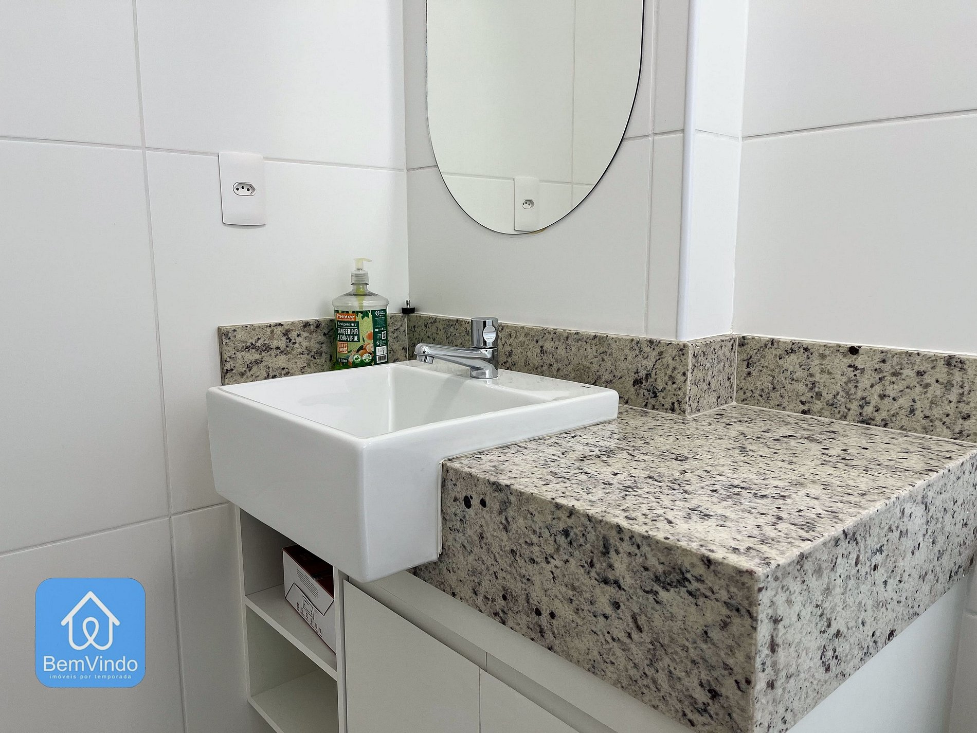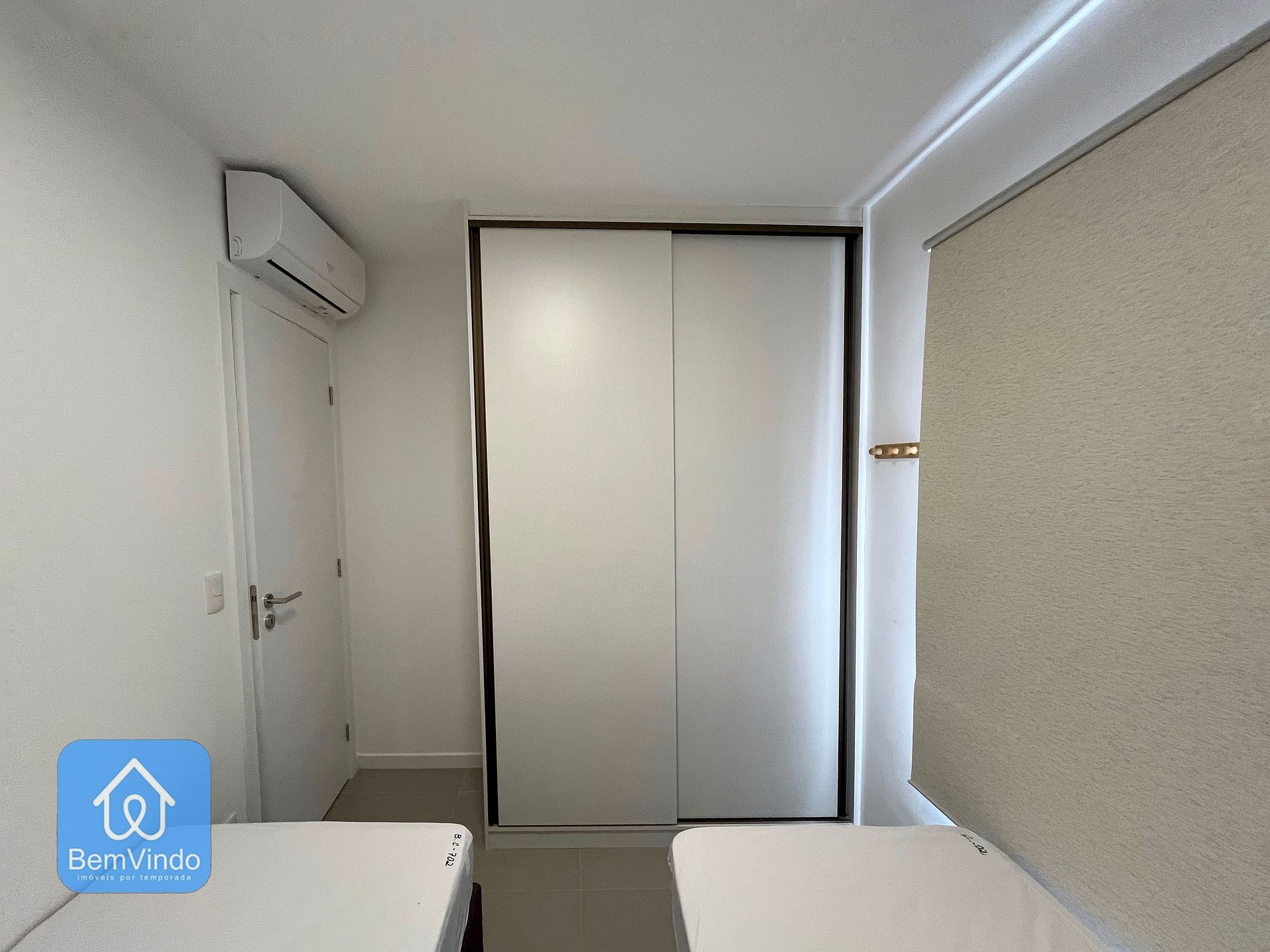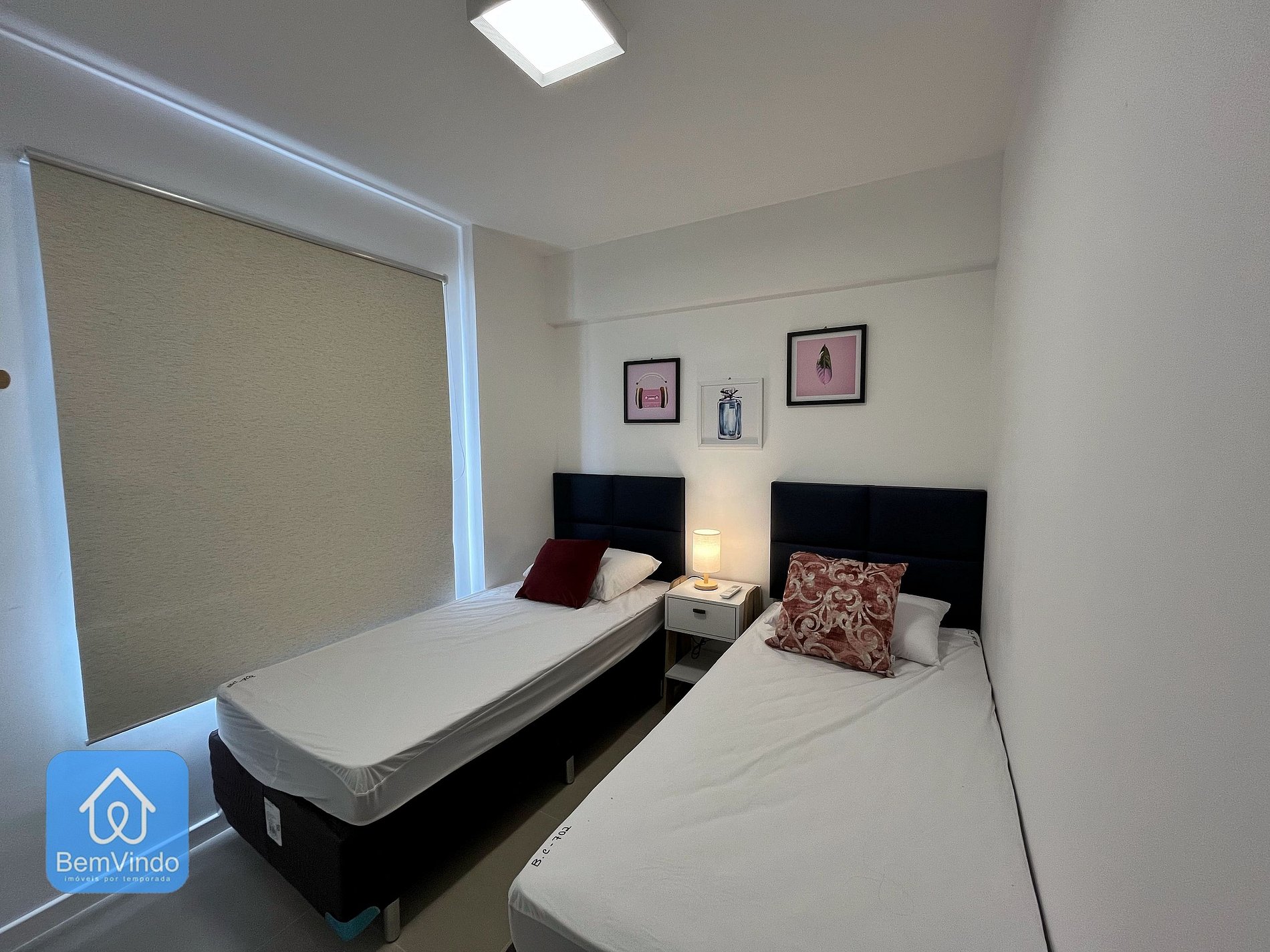 Segundo Quarto e Banheiro: O segundo quarto dispõe de duas camas de solteiro, guarda-roupas e cortina blackout, perfeito para o descanso dos hóspedes. O apartamento possui também um segundo banheiro confortável e com espelho.