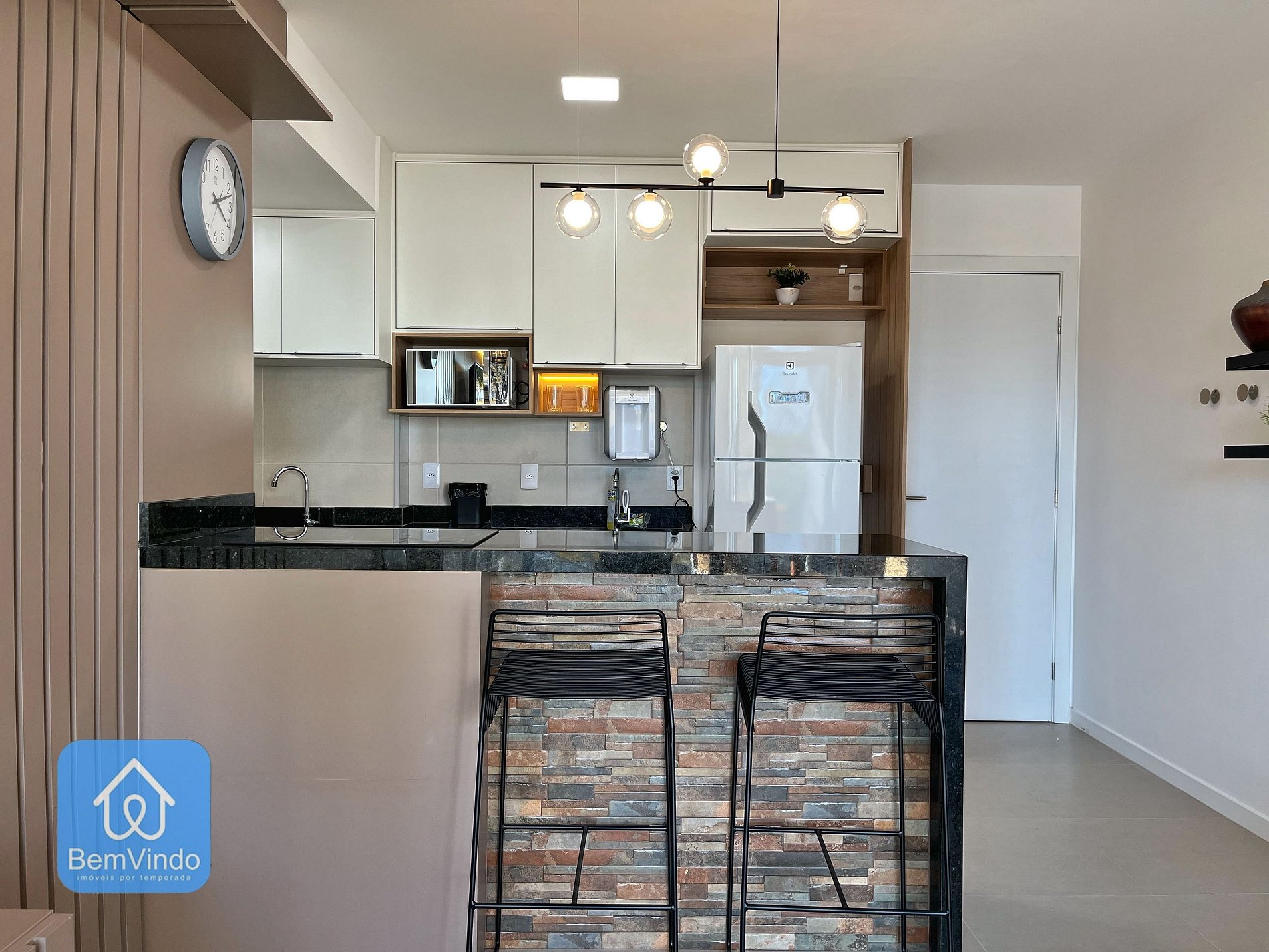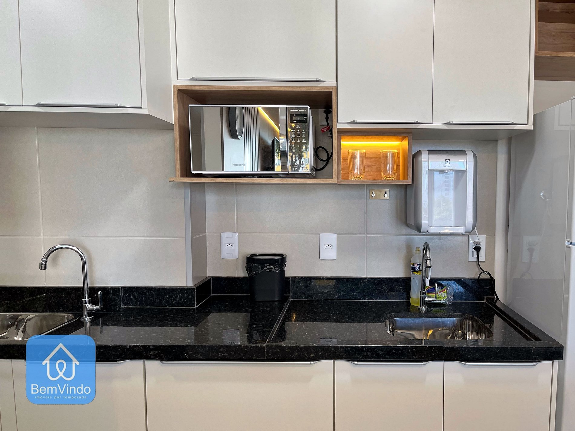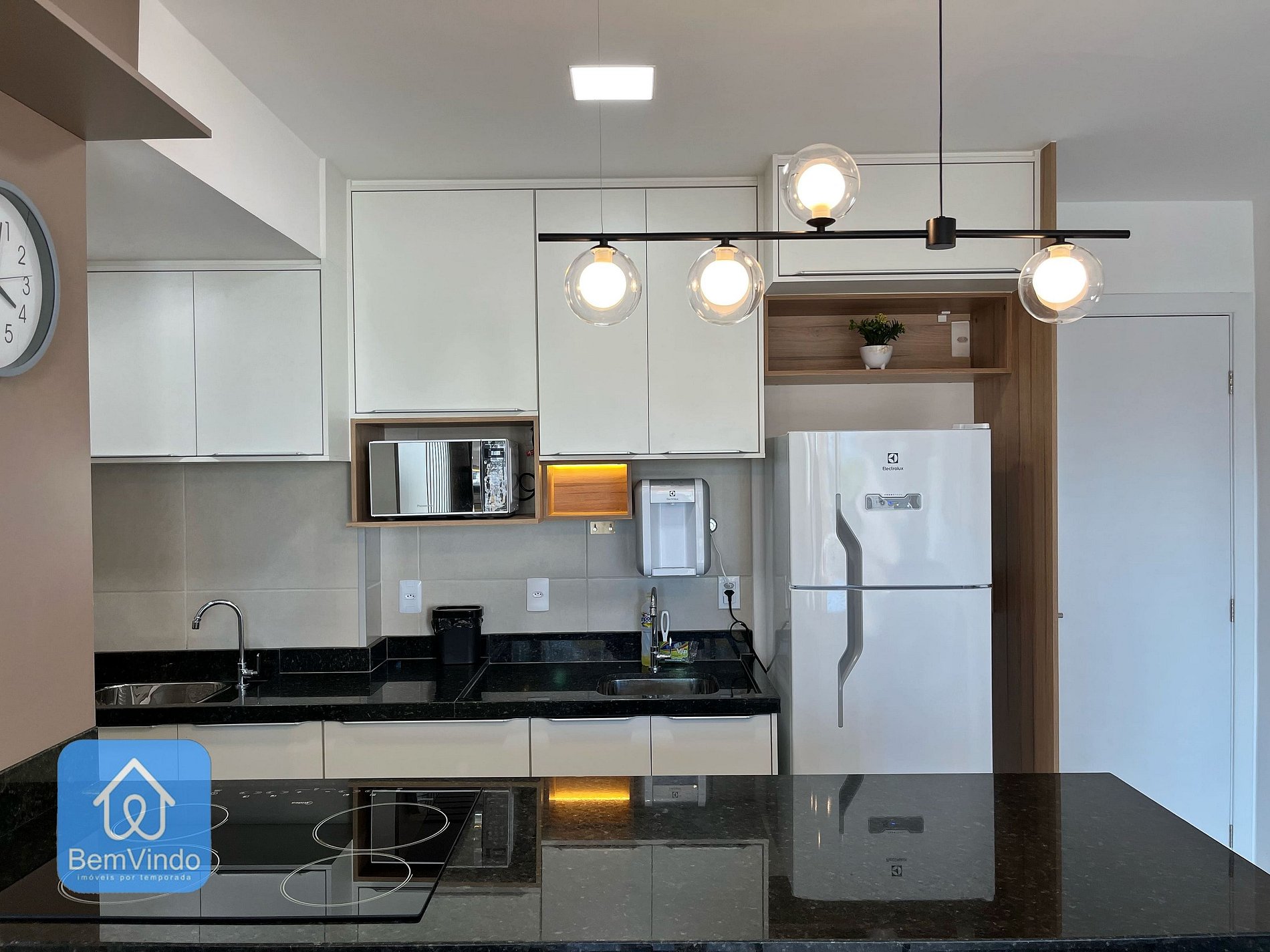 Cozinha Completa: Equipada com fogão cooktop, micro-ondas, geladeira, AirFryer, filtro de água gelada, liquidificador e todos os utensílios necessários, a cozinha permite que você prepare desde refeições rápidas até um jantar completo.