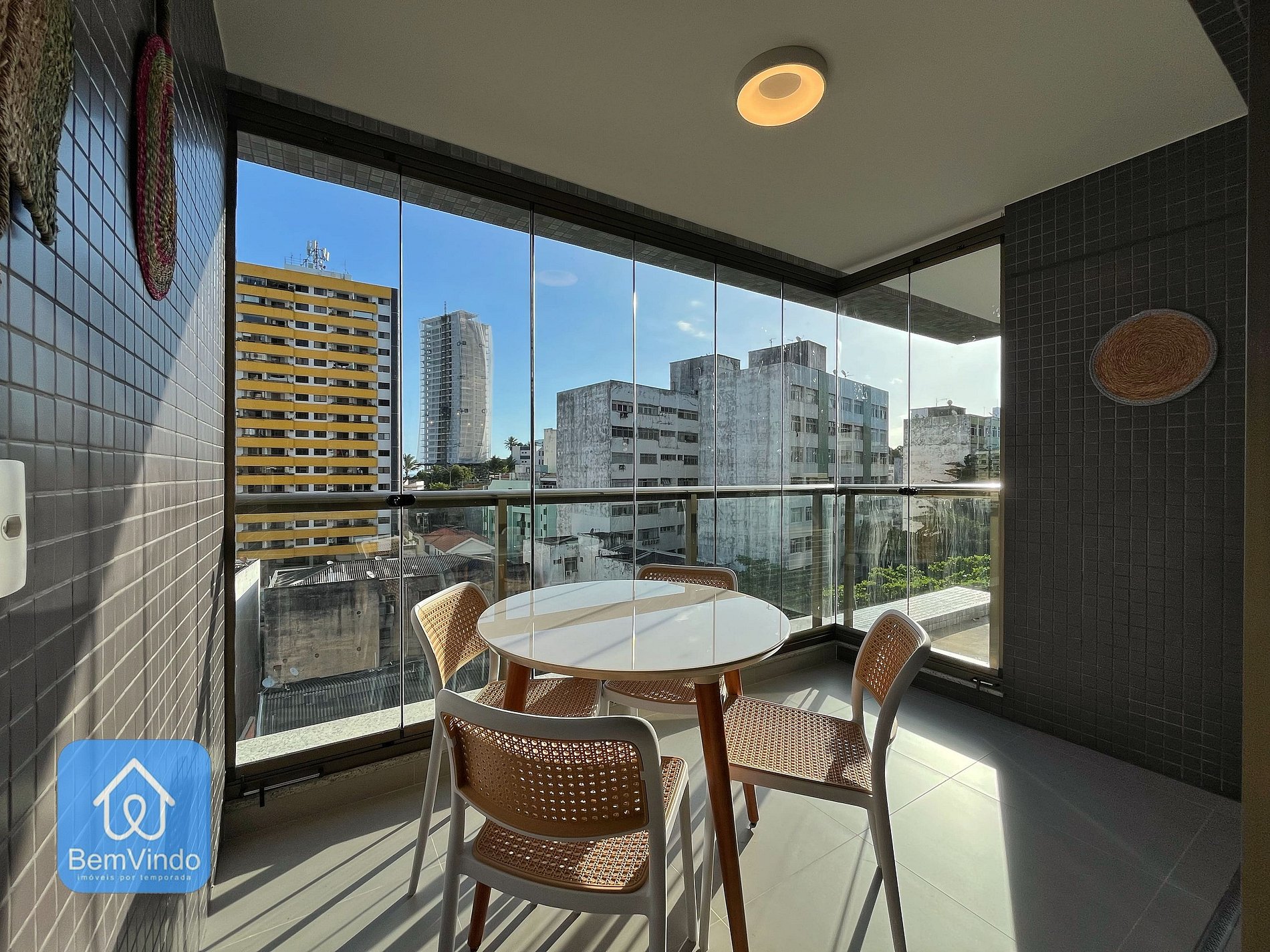 Hospede-se neste espaçoso e elegante apartamento de dois quartos no coração da Barra, Salvador. Com uma sala decorada finamente, varanda ampla e uma vista charmosa para o bairro, o ambiente é ideal para quem busca conforto, sofisticação e uma estadia prática.