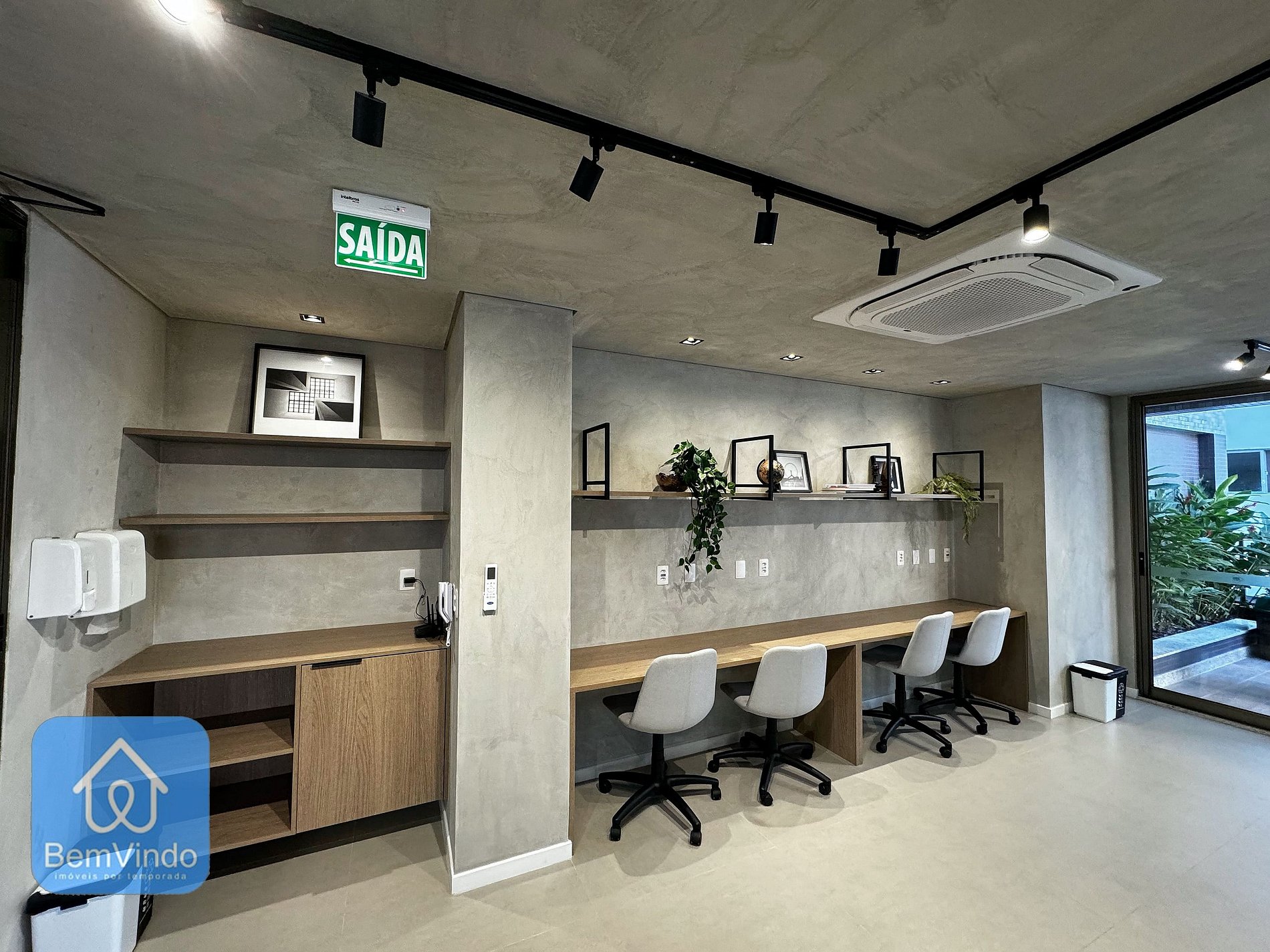Se você precisa de um local para trabalhar, o edifício oferece um espaço para coworking e uma sala de reuniões, ambos projetados para proporcionar um ambiente profissional e inspirador. Para momentos de relaxamento, você pode desfrutar do espaço ao ar livre com cadeiras e uma área verde tranquila.