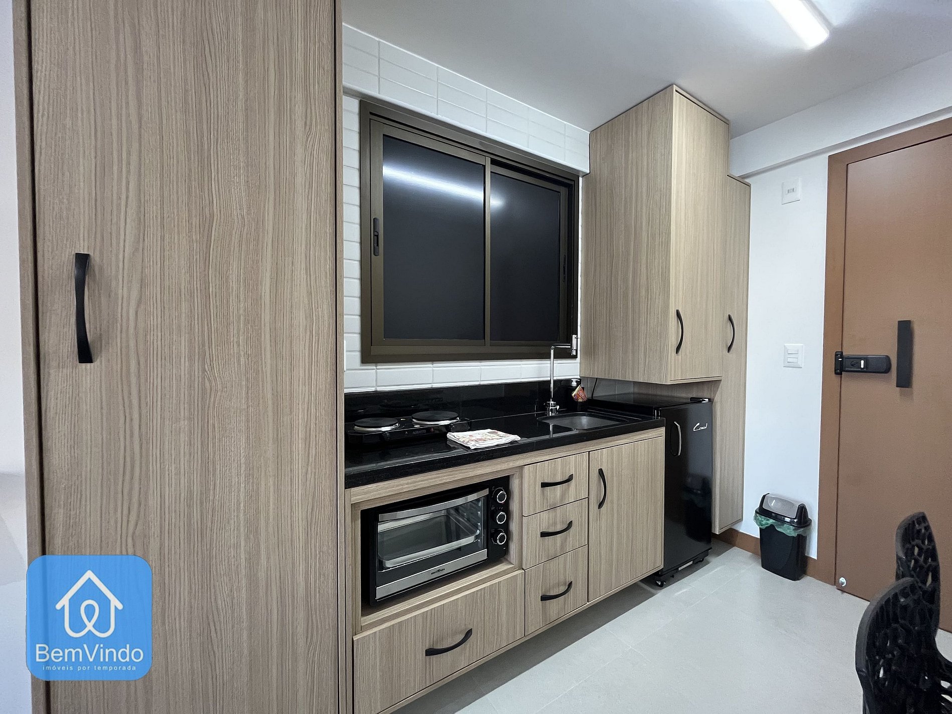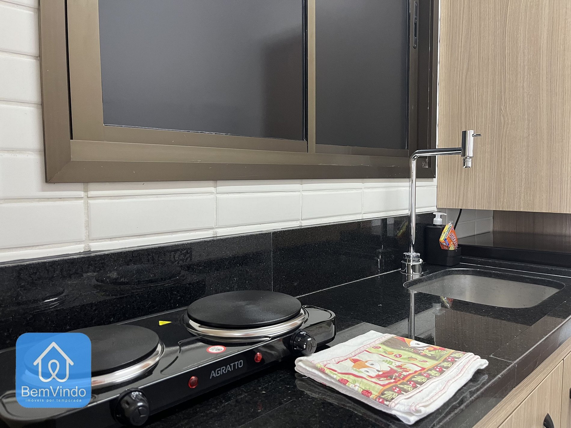 O quarto é equipado com uma cama de casal nova e confortável, guarda-roupas espaçoso, Smart TV e ar-condicionado, garantindo o clima perfeito em qualquer estação. As cortinas blackout proporcionam noites tranquilas e privacidade total, enquanto a janela oferece uma vista para uma rua calma e arborizada. O banheiro, decorado com bom gosto, é confortável, oferecendo tudo o que você precisa para relaxar após um dia de passeios. A cozinha é prática e funcional, equipada com tudo o necessário para preparar suas refeições favoritas como: geladeira, microondas e fogão cooktop. O prédio oferece diversas comodidades para enriquecer sua estadia: • Piscina com espreguiçadeiras para relaxar; • Academia bem equipada; • Salão de jogos para momentos de lazer;