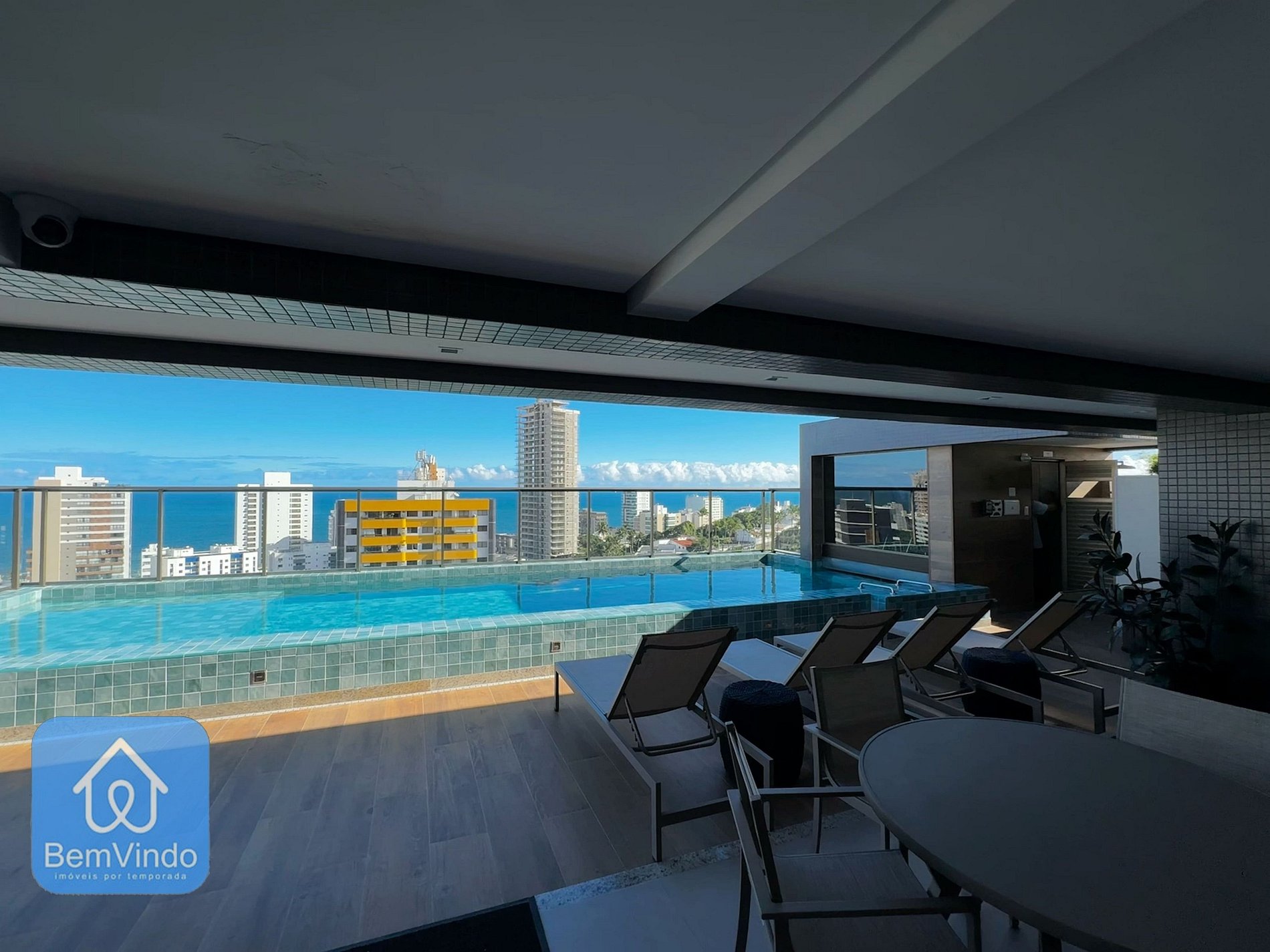 O rooftop é, sem dúvida, o ponto alto do empreendimento. Com uma piscina de borda infinita e vista panorâmica espetacular da Barra e do mar, este é o lugar perfeito para relaxar e apreciar a paisagem.