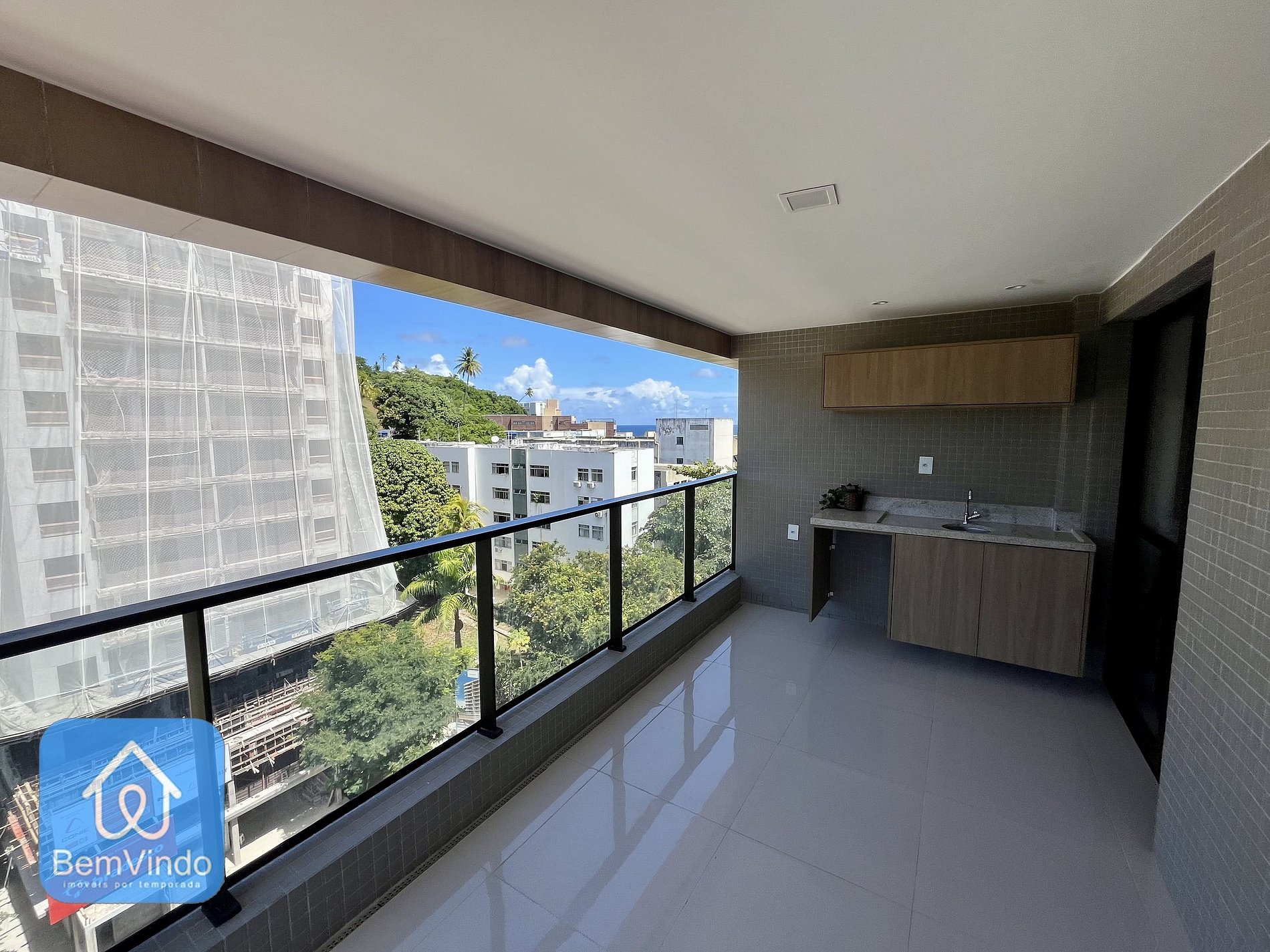 A varanda é ampla e equipada