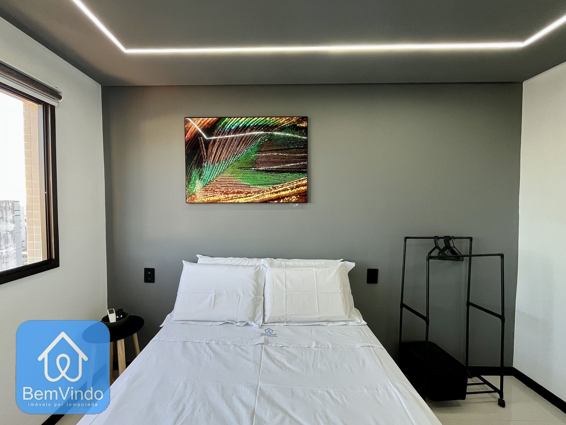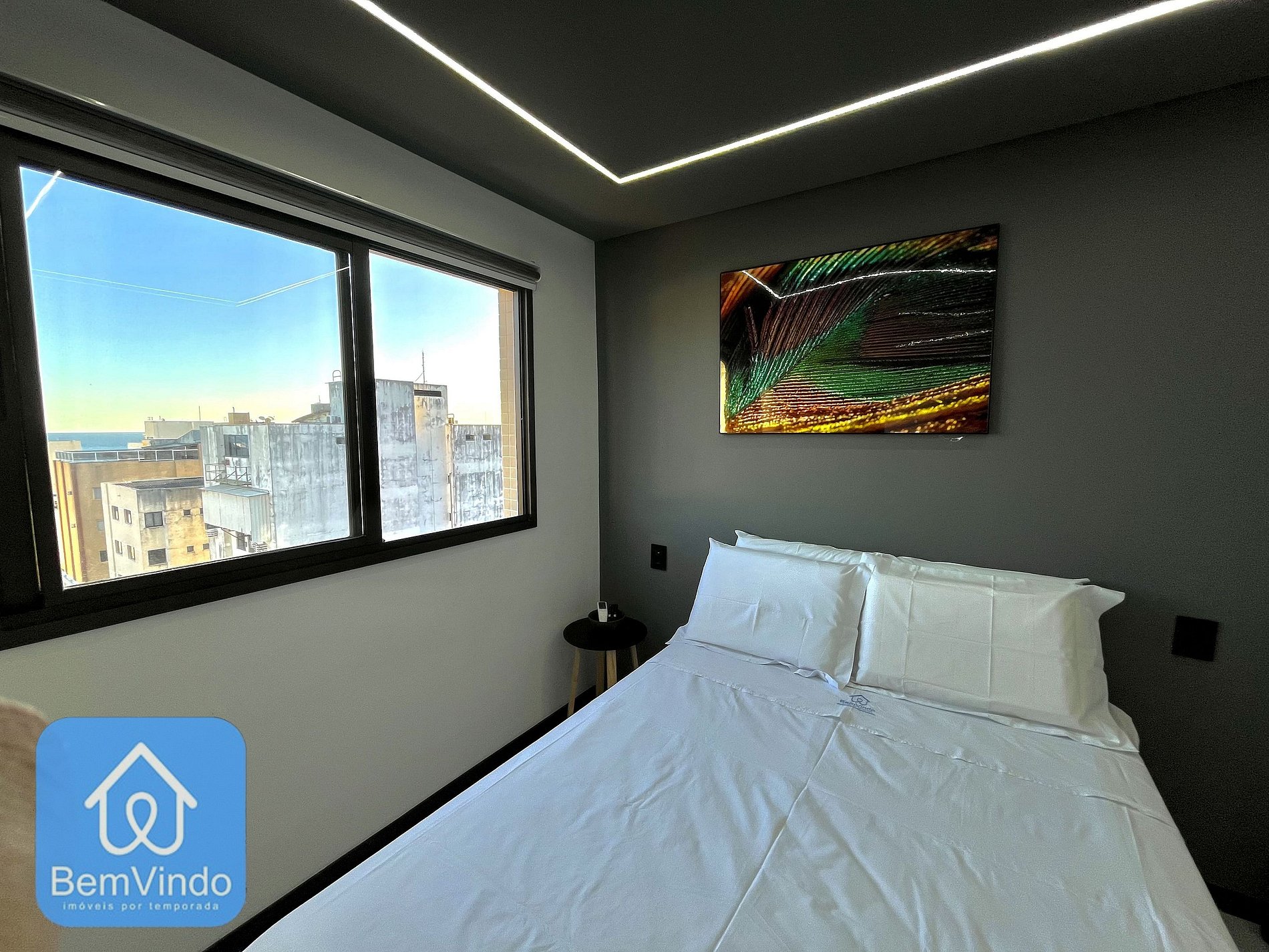 O apartamento em si é um oásis de conforto e estilo. O quarto apresenta uma cama de casal confortável, garantindo noites tranquilas após um dia cheio de aventuras.