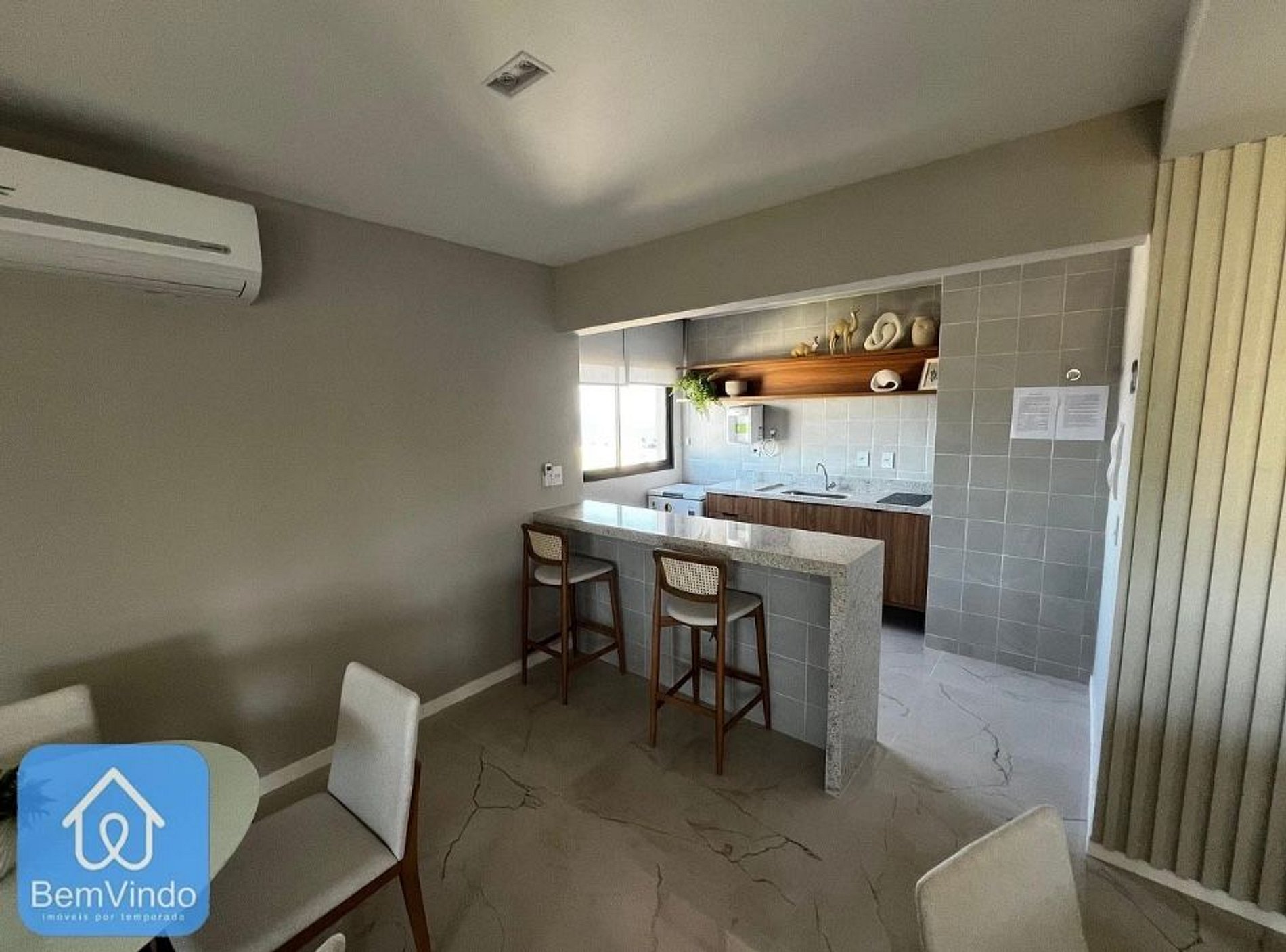 Cozinha: Geladeira, microondas, cooktop, liquidificador, máquina de café, armários bem equipados