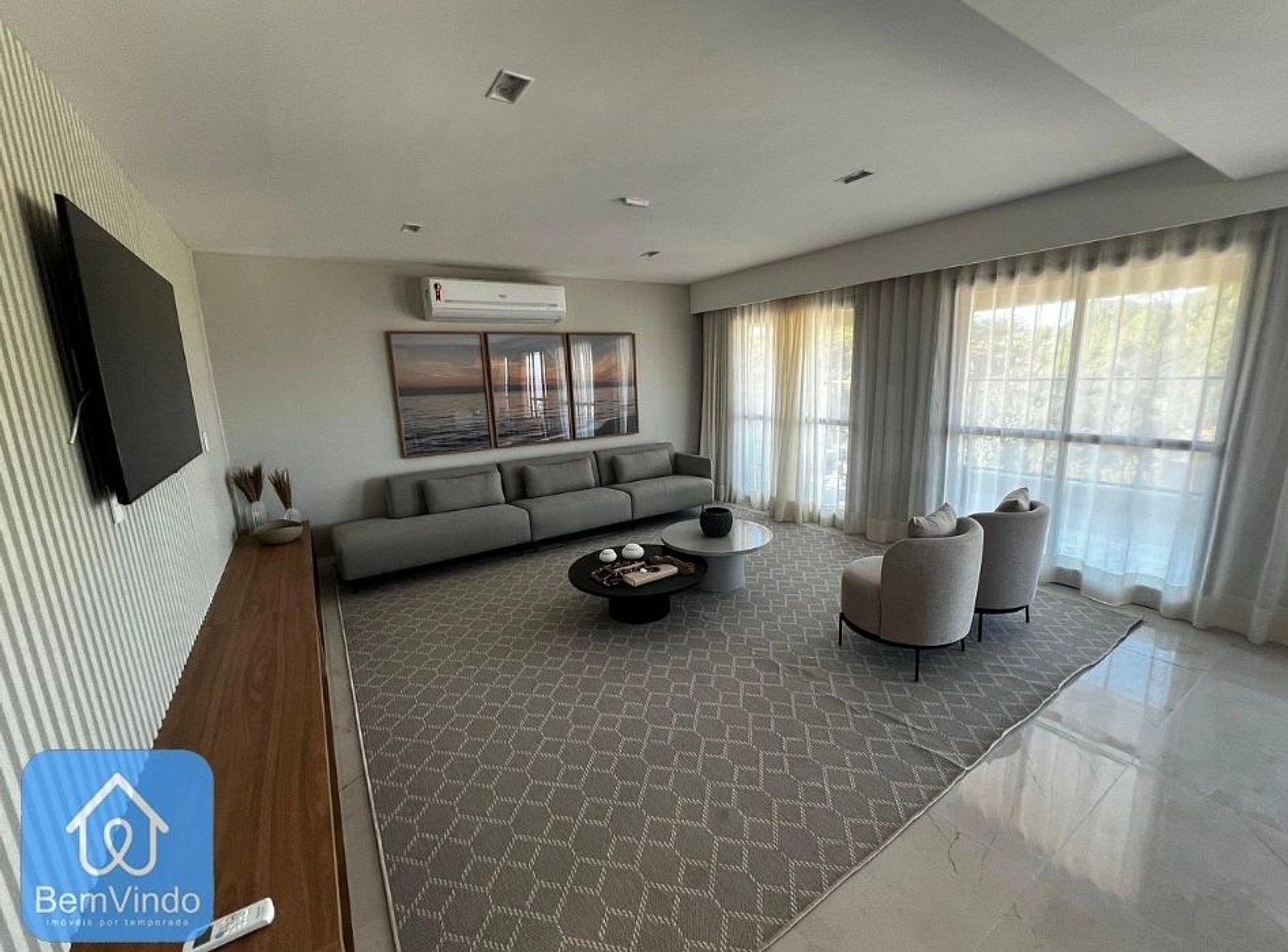 Na sala de estar, você encontrará um sofá espaçoso e confortável.