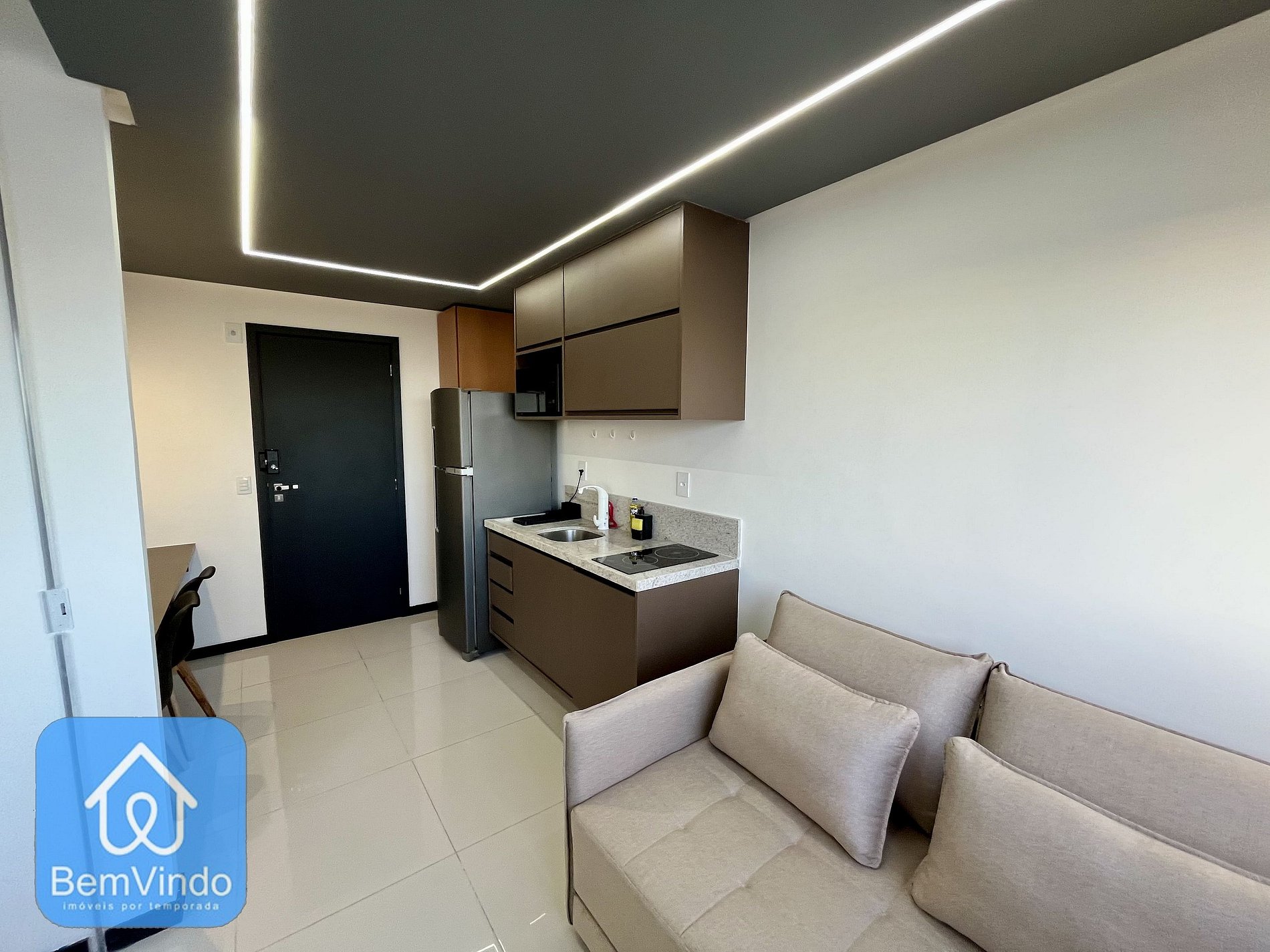 Na sala de estar, você encontrará um sofá espaçoso e confortável.