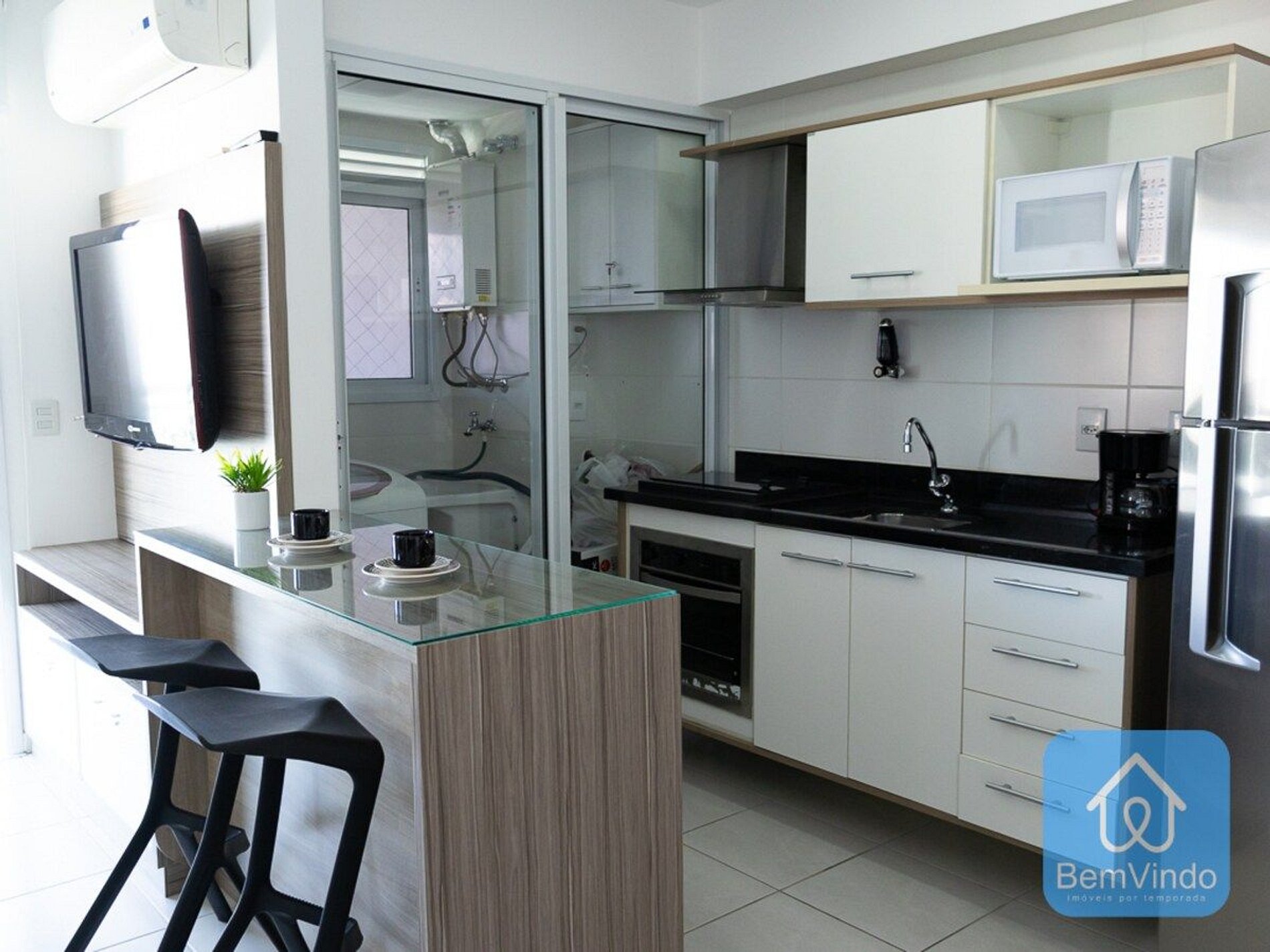 Nossa Cozinha é completa com fogão cooktop, microondas, e todos os equipamentos que você pode precisar para preparar o seu alimento. O apartamento ainda possui, uma área de lavanderia com máquina de lavar e secar, prontas para seu uso. Possuímos uma vaga de garagem;