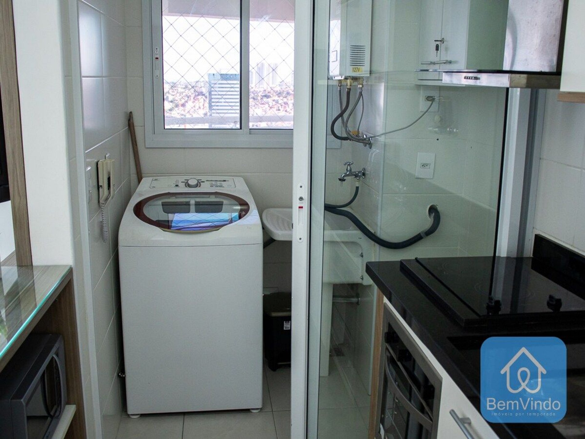 Nossa Cozinha é completa com fogão cooktop, microondas, e todos os equipamentos que você pode precisar para preparar o seu alimento. O apartamento ainda possui, uma área de lavanderia com máquina de lavar e secar, prontas para seu uso. Possuímos uma vaga de garagem;