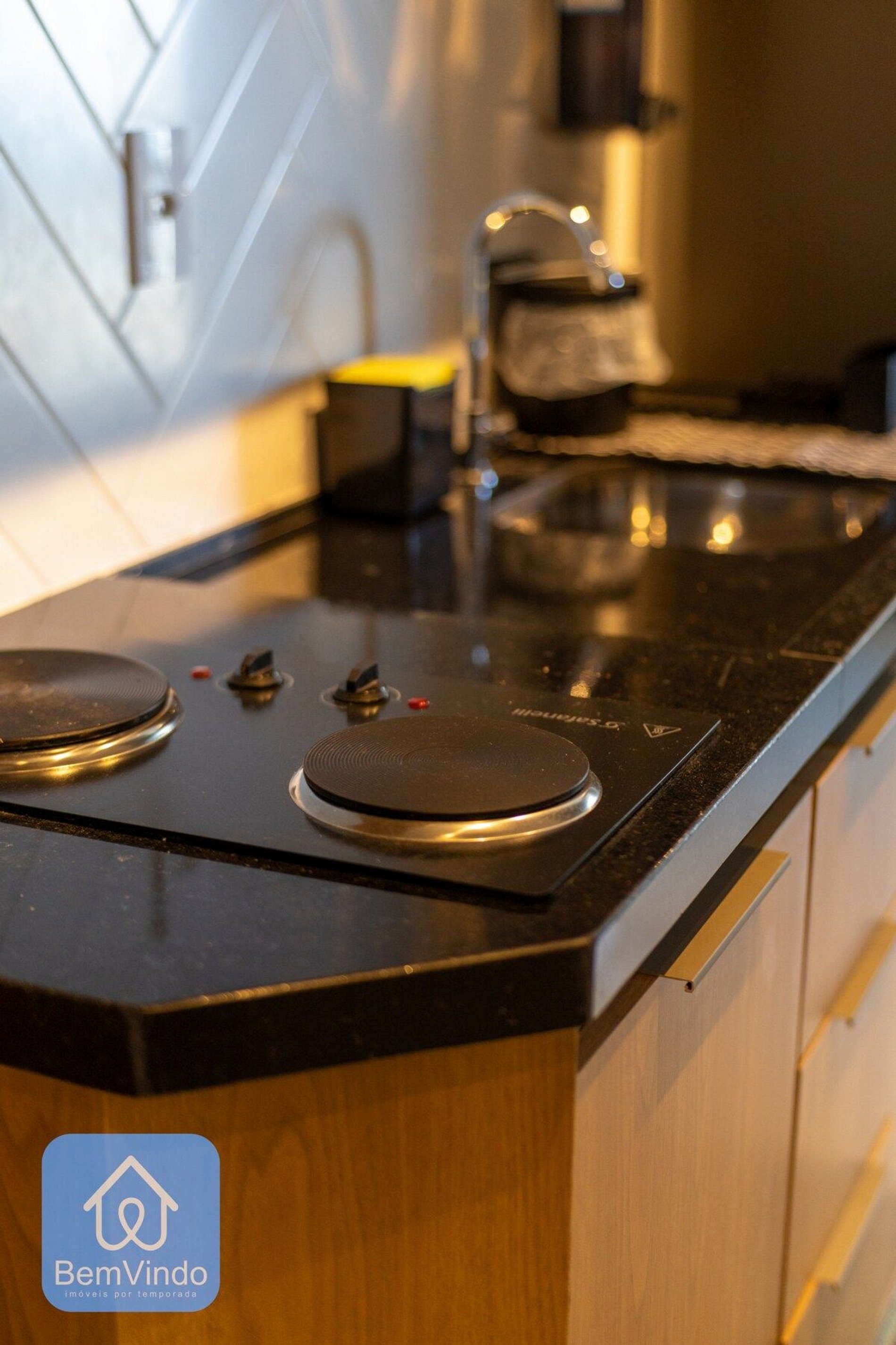 Nossa Cozinha é completa com cooktop elétrico, microondas, e todos os equipamentos que você pode precisar para preparar seu alimento. O edíficio ainda possui uma área de lavanderia com máquina de lavar e secar, prontas para seu uso e uma vaga de garagem rotativa por ordem de chegada (Essa informação é importante, pois em caso de lotação não podemos nos responsabilizar);
