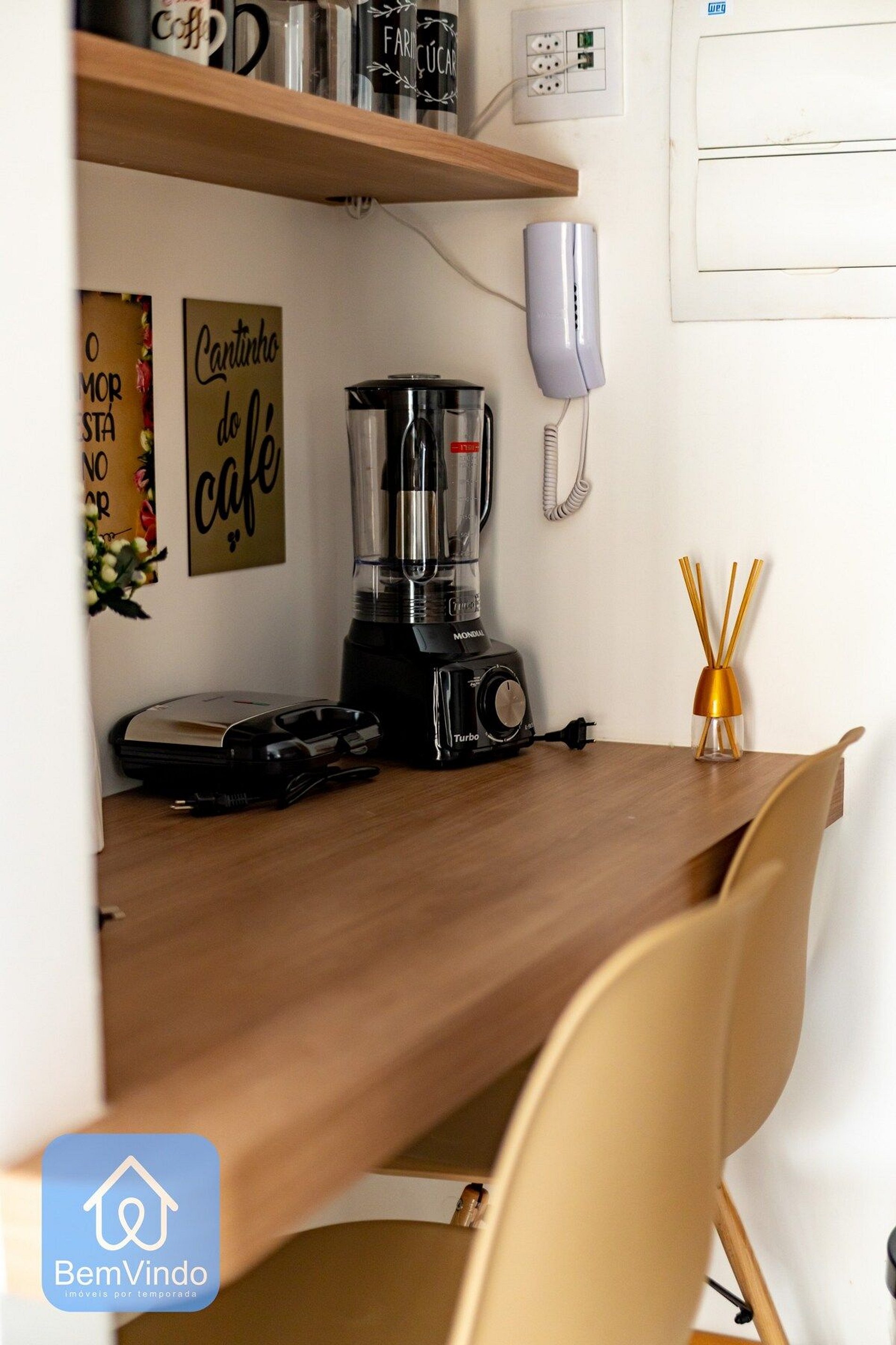 Nossa Cozinha é completa com cooktop elétrico, microondas, e todos os equipamentos que você pode precisar para preparar seu alimento. O edíficio ainda possui uma área de lavanderia com máquina de lavar e secar, prontas para seu uso e uma vaga de garagem rotativa por ordem de chegada (Essa informação é importante, pois em caso de lotação não podemos nos responsabilizar);