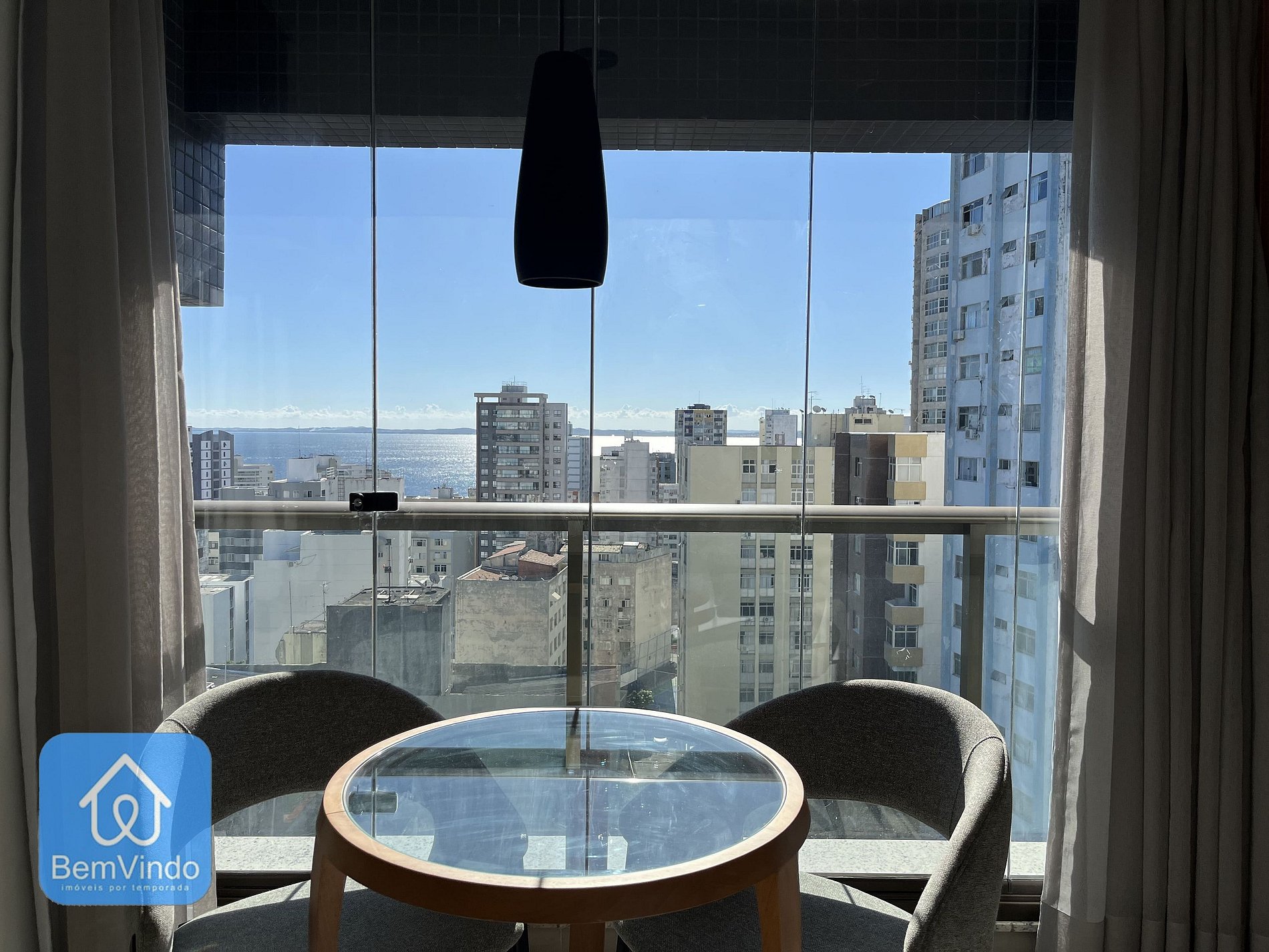 Nosso apartamento no Barra Conceito, com uma deslumbrante vista para o mar, foi cuidadosamente decorado e totalmente equipado para oferecer um ambiente acolhedor e funcional. A suíte climatizada, com ar-condicionado, dispõe de uma cama de casal nova e extremamente confortável, garantindo uma excelente noite de descanso após um dia explorando a cidade, Smart TV, criando um ambiente acolhedor para relaxar. O banheiro da suíte é outro destaque, com chuveiro e espelho amplo, unindo praticidade e sofisticação.