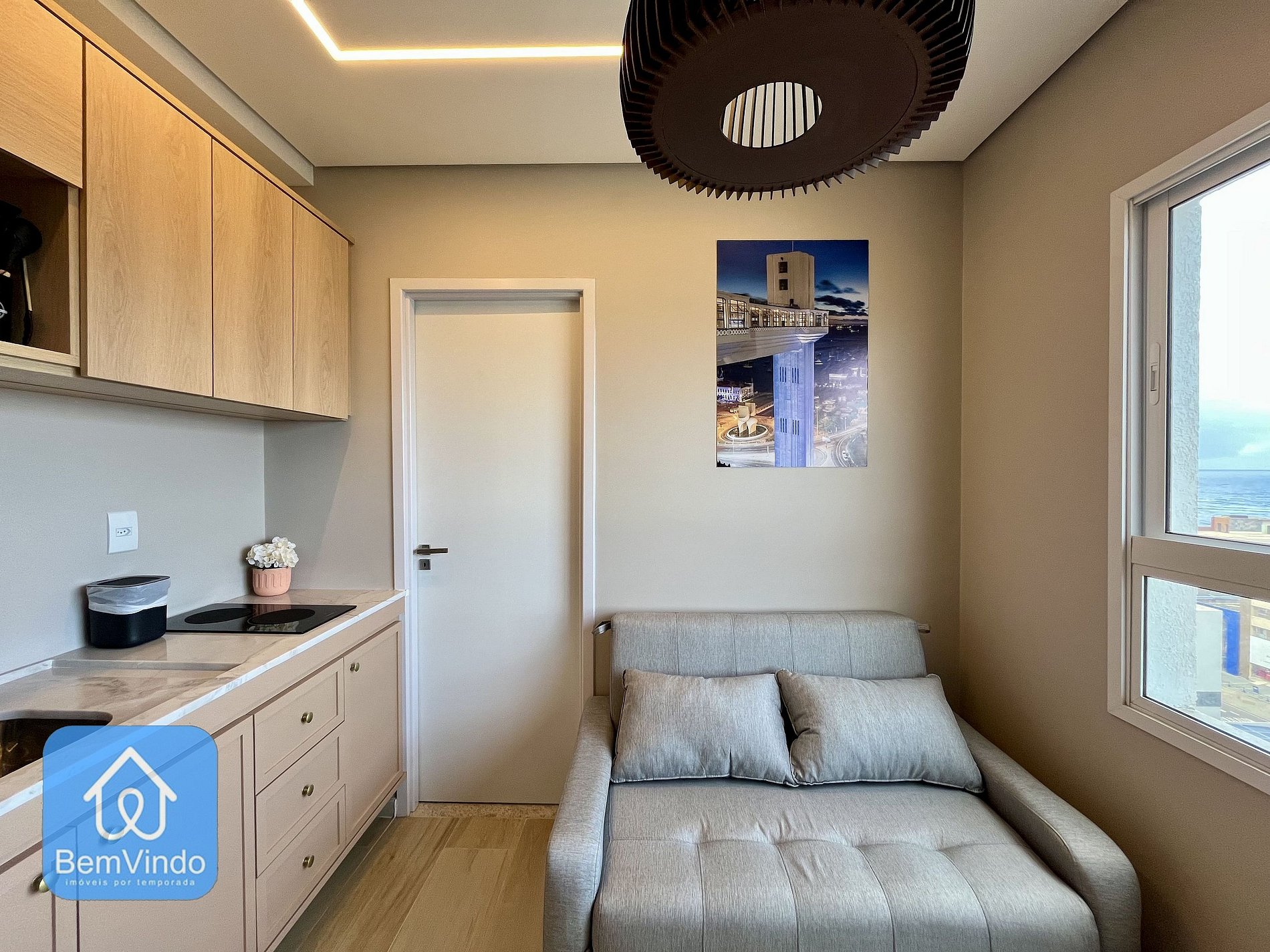 Sala e Varanda: A sala possui um sofá-cama confortável, Smart TV para entretenimento, além de ser integrada à cozinha e à varanda espaçosa, onde você encontra uma vista agradável para a praia.