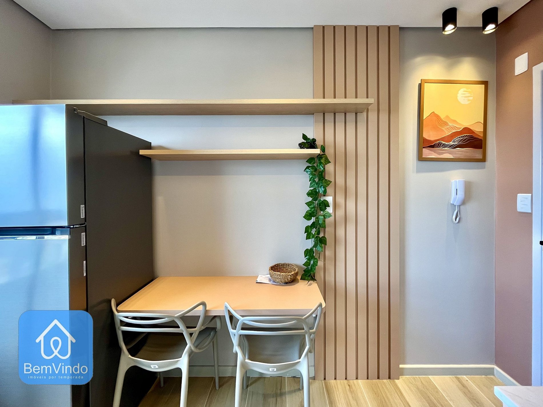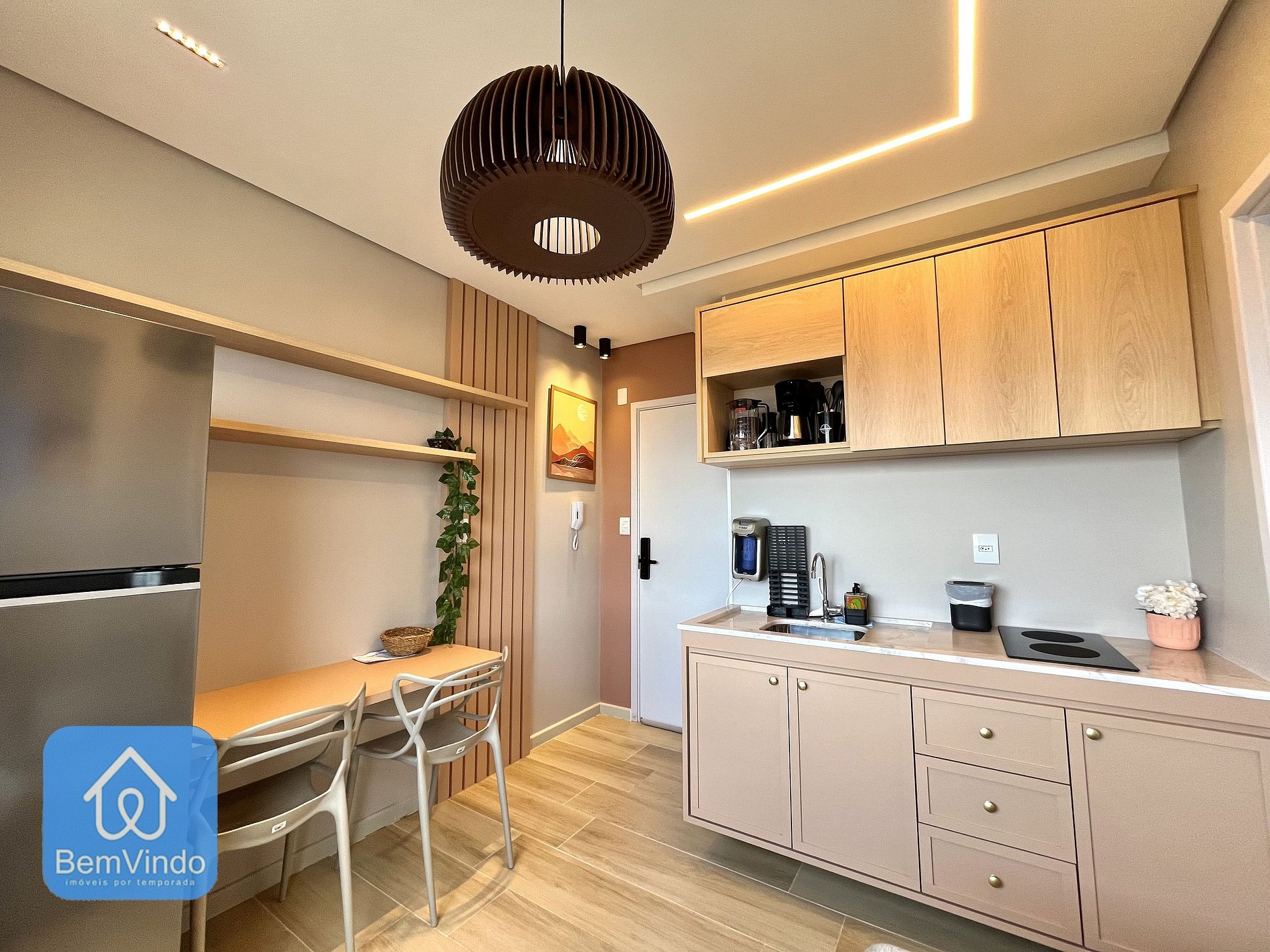Cozinha Completa: Equipada com fogão cooktop, micro-ondas, geladeira, liquidificador, máquina de café e todos os utensílios necessários, a cozinha permite que você prepare desde refeições rápidas até um jantar completo.