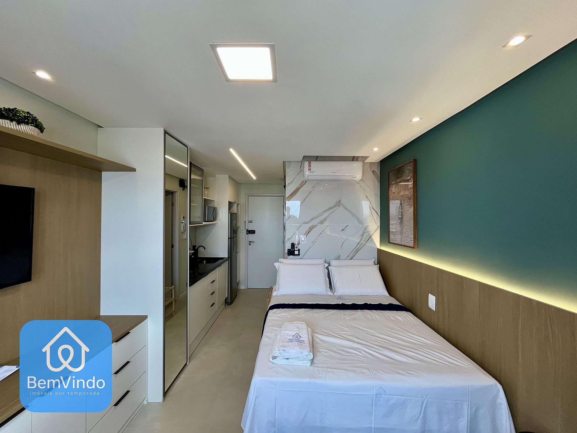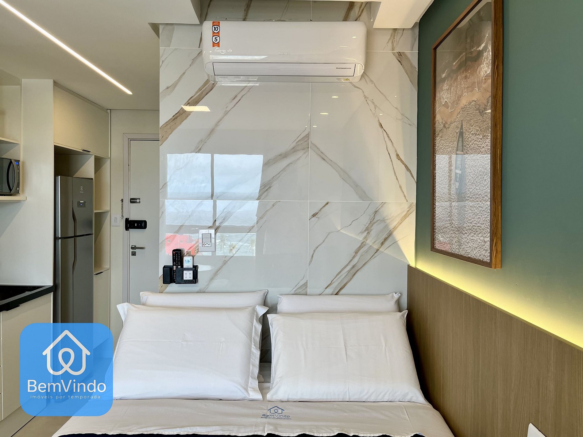 O apartamento oferece: - Quarto decorado com cama de casal nova e confortável, guarda-roupas e Smart TV para sua comodidade, Ar-condicionado para maior conforto
