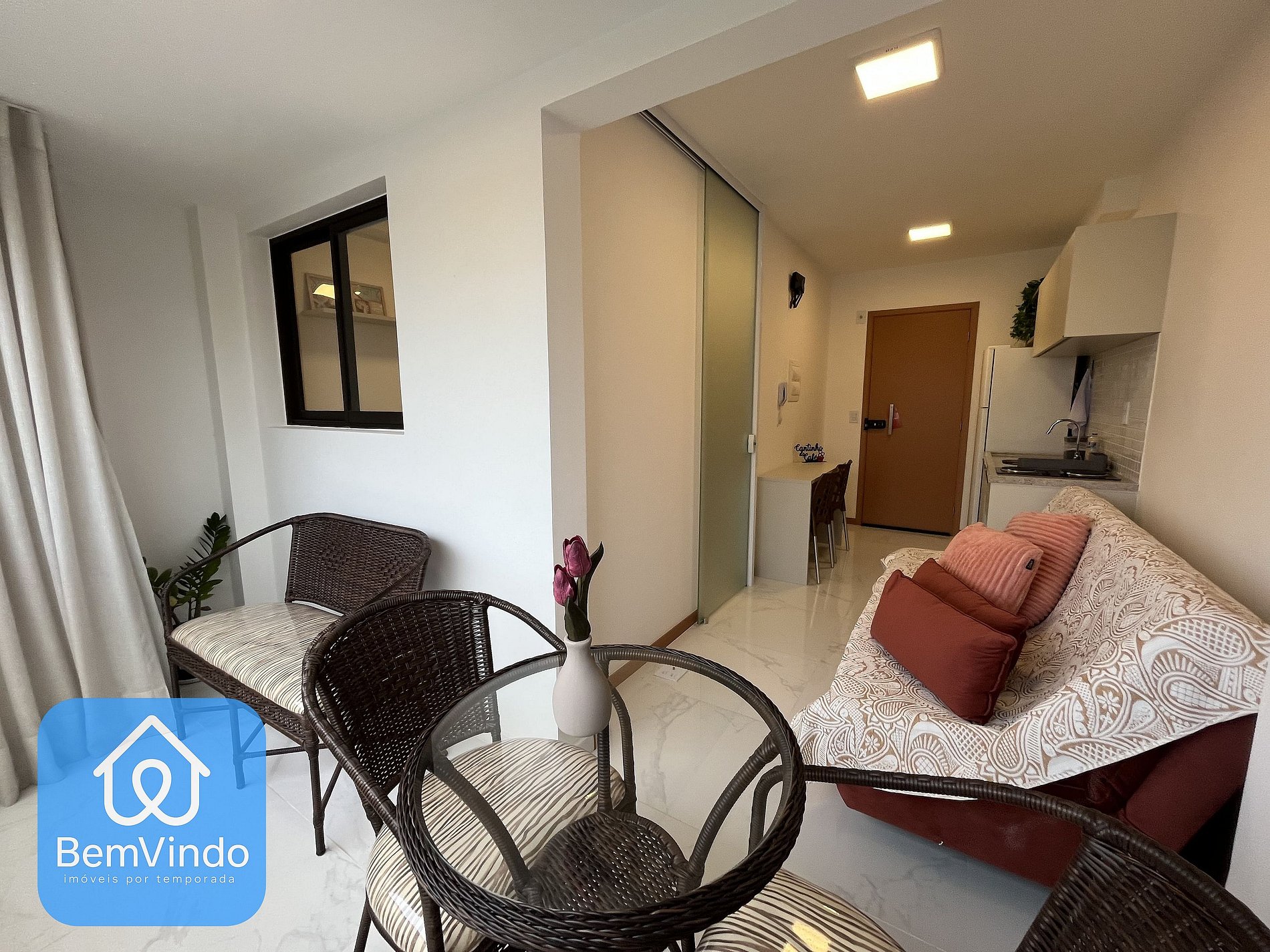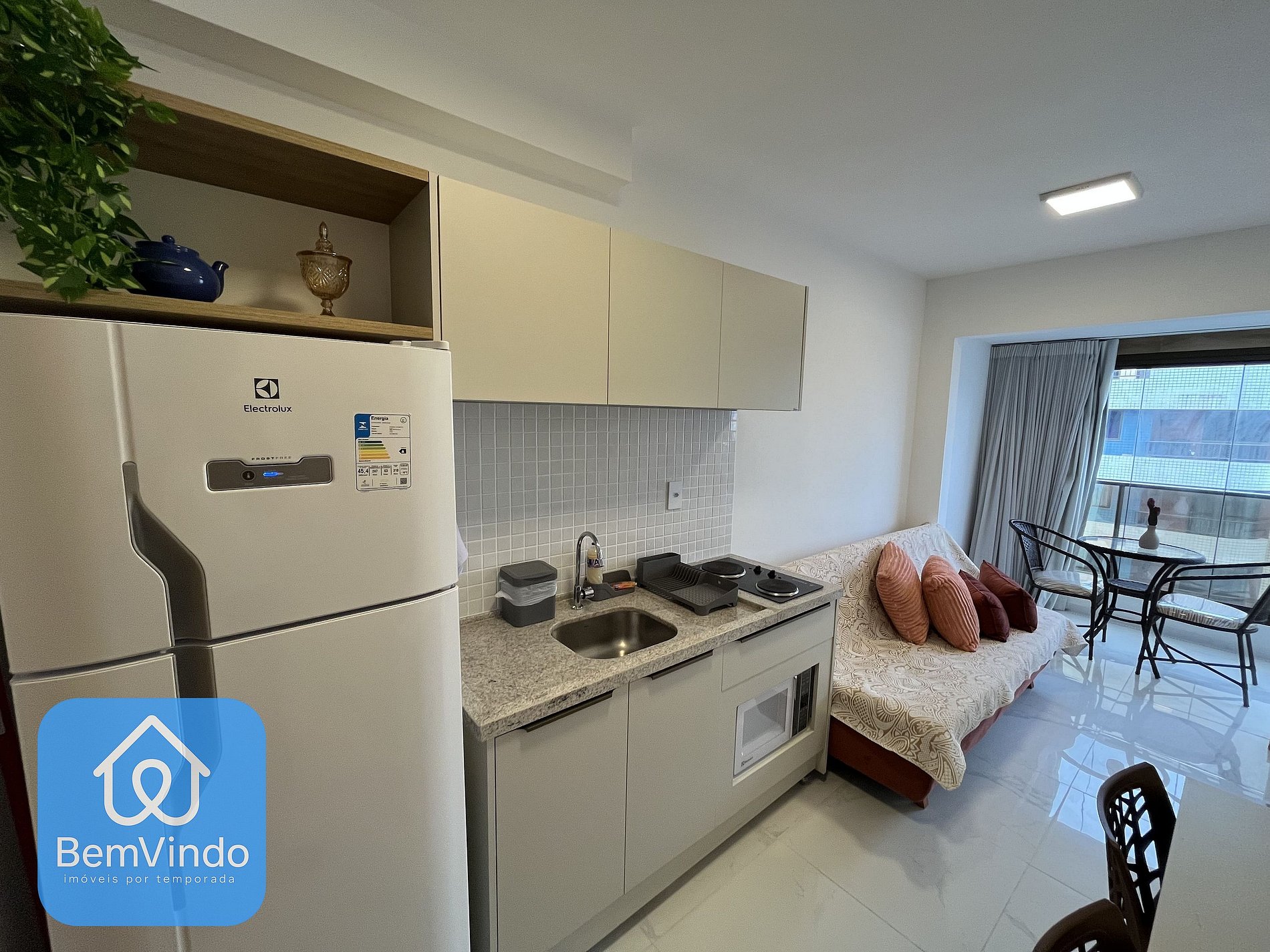 Nosso apartamento no Smart Convenções, foi cuidadosamente decorado e totalmente equipado para oferecer um ambiente acolhedor e funcional. A suíte climatizada, com ar-condicionado e ventilador, dispõe de uma cama de casal nova e extremamente confortável, garantindo uma excelente noite de descanso após um dia explorando a cidade. O banheiro da suíte é outro destaque, com chuveiro e espelho amplo, unindo praticidade e sofisticação. A sala de estar é espaçosa e aconchegante, com um sofá-cama confortável e Smart TV, criando um ambiente acolhedor para relaxar. Possui também uma varanda equipada. A cozinha, prática e completa, está equipada com cooktop elétrico, micro-ondas, geladeira e todos os utensílios necessários para preparar suas refeições com conforto e praticidade.