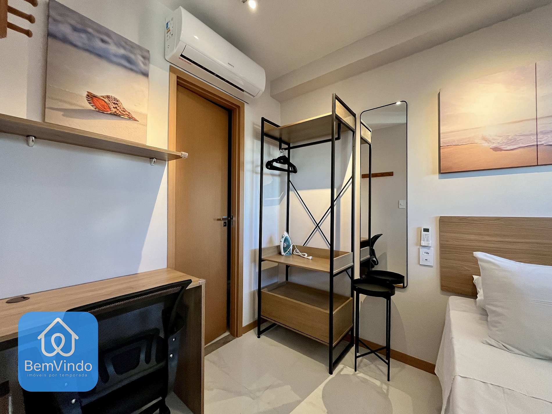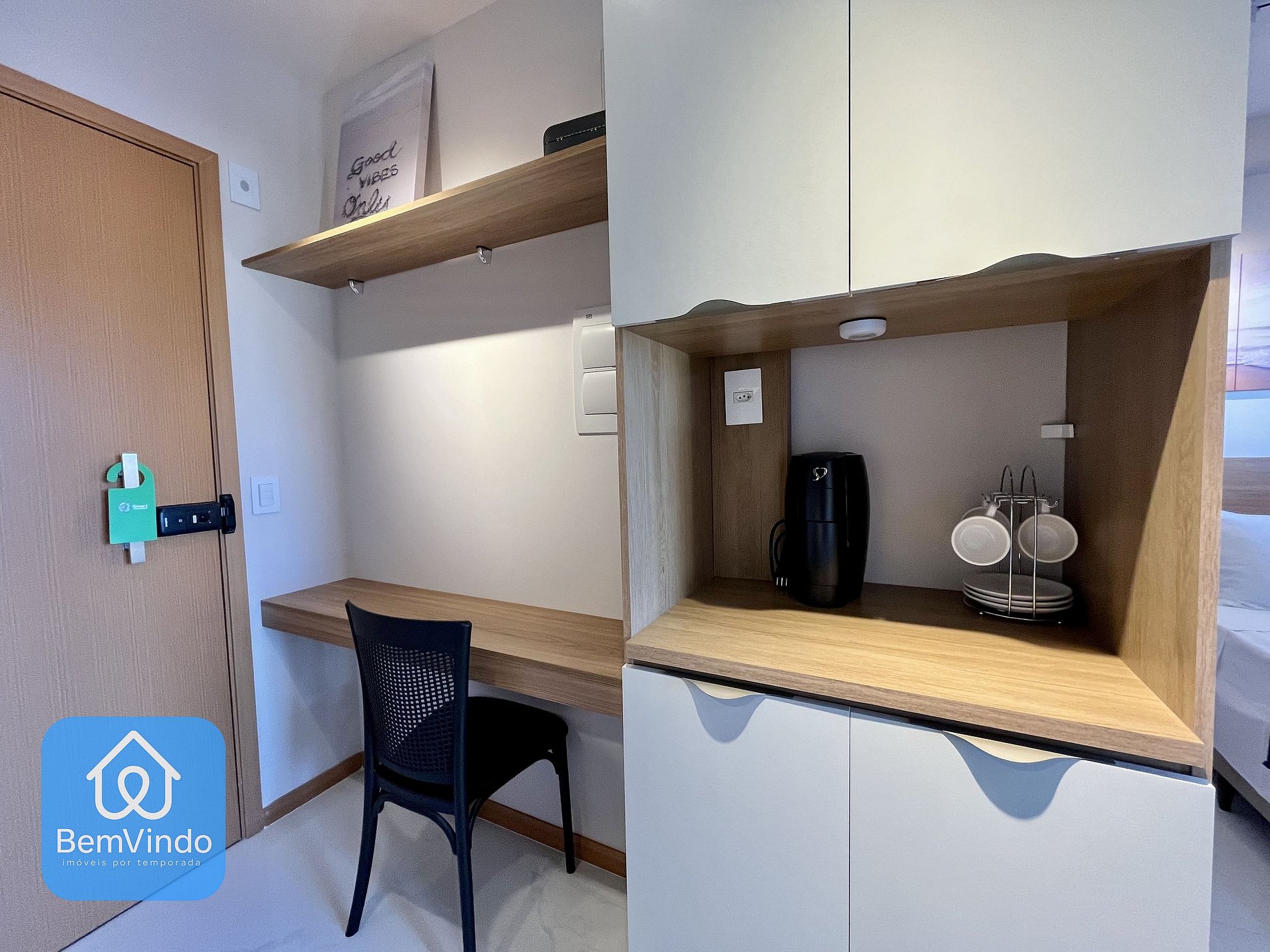 Nosso apartamento no Smart Convenções, foi cuidadosamente decorado e totalmente equipado para oferecer um ambiente acolhedor e funcional. A suíte climatizada, com ar-condicionado, dispõe de uma cama de casal nova e extremamente confortável, garantindo uma excelente noite de descanso após um dia explorando a cidade.