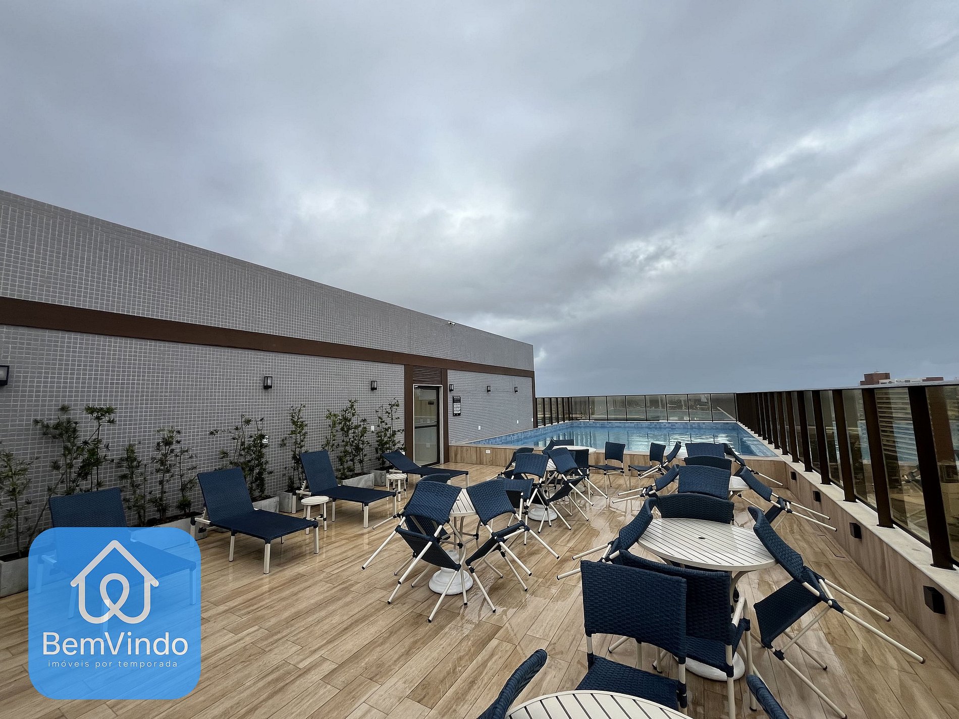 O prédio conta com lavanderia, ideal para estadias curtas ou longas; piscina com deck, perfeita para relaxar após um dia de passeio; academia moderna e bem equipada para manter sua rotina de exercícios em dia; além de uma sala de estar aconchegante e climatizada, ideal para momentos de descanso, leitura ou até uma reunião informal.
