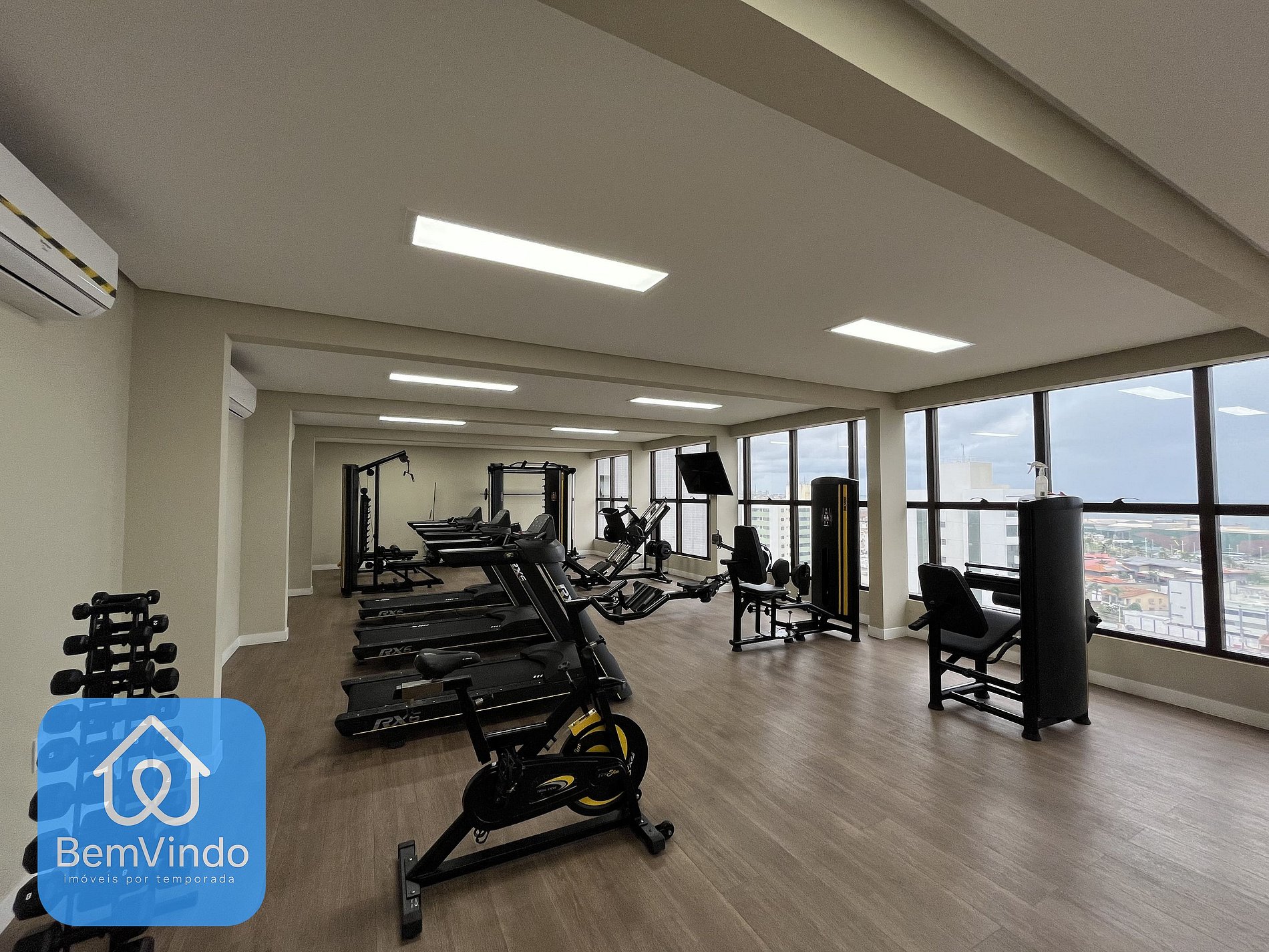 O prédio conta com lavanderia, ideal para estadias curtas ou longas; piscina com deck, perfeita para relaxar após um dia de passeio; academia moderna e bem equipada para manter sua rotina de exercícios em dia; além de uma sala de estar aconchegante e climatizada, ideal para momentos de descanso, leitura ou até uma reunião informal.