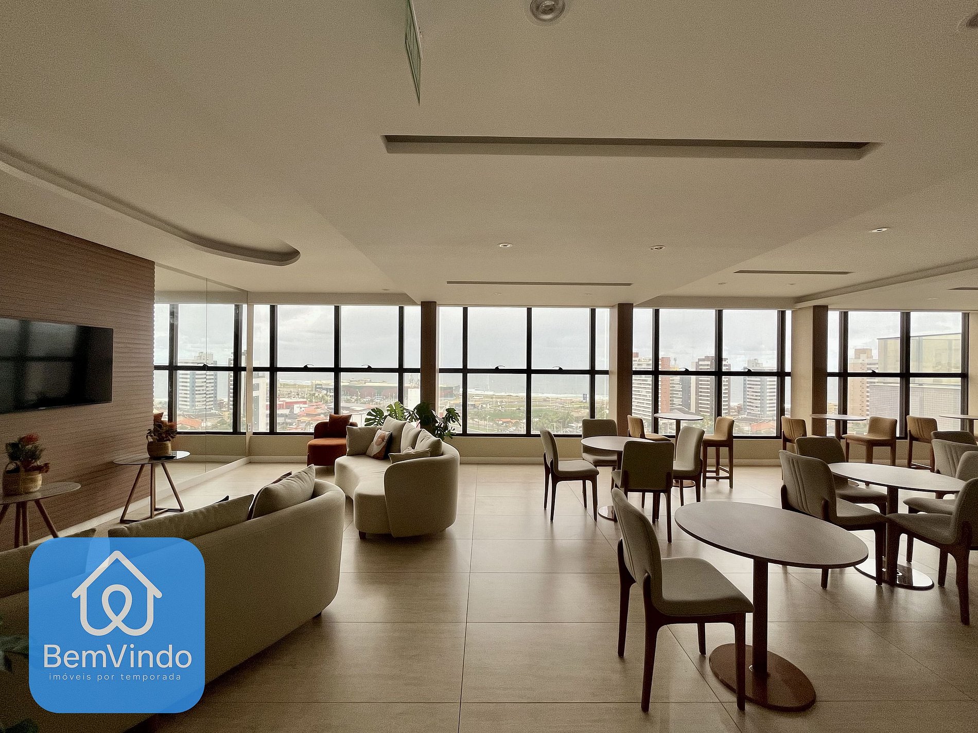 O prédio conta com lavanderia, ideal para estadias curtas ou longas; piscina com deck, perfeita para relaxar após um dia de passeio; academia moderna e bem equipada para manter sua rotina de exercícios em dia; além de uma sala de estar aconchegante e climatizada, ideal para momentos de descanso, leitura ou até uma reunião informal.