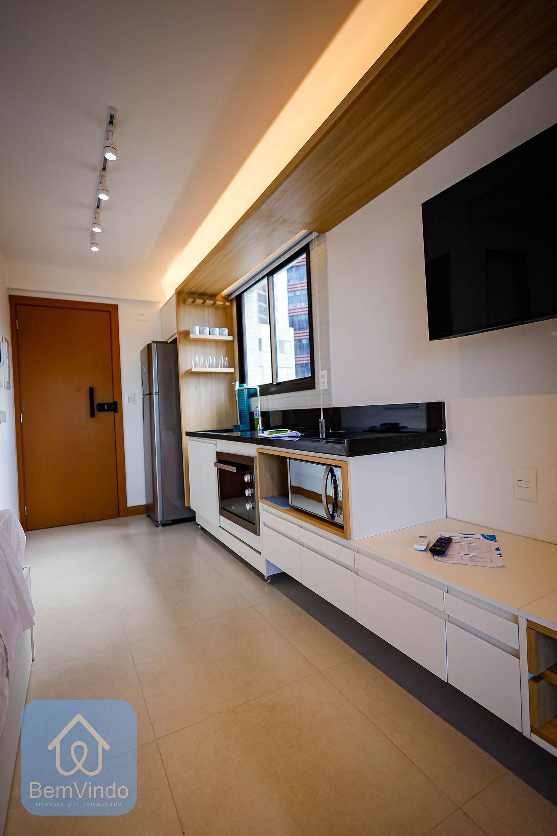 Cozinha Equipada: A cozinha foi planejada para atender todas as suas necessidades. Equipada com cafeteira, liquidificador, sanduicheira, cooktop, micro-ondas e todos os utensílios necessários, você terá a liberdade de preparar desde um café da manhã simples até refeições mais elaboradas.
