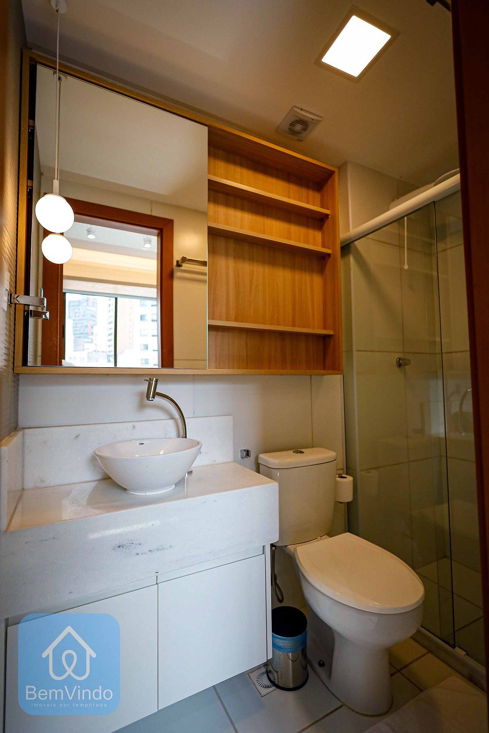 Banheiro Moderno: O banheiro é um espaço moderno e aconchegante e possui secador de cabelo, projetado para oferecer máximo conforto e praticidade.